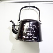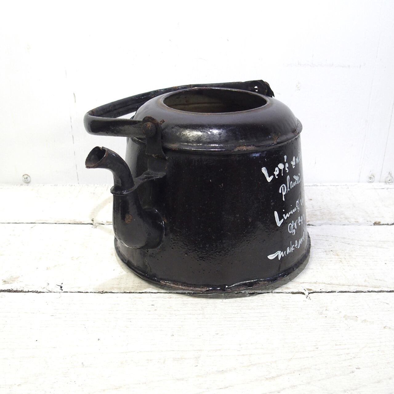 レトロなホーローのケトルに文字を入れたアレンジ品です♪
