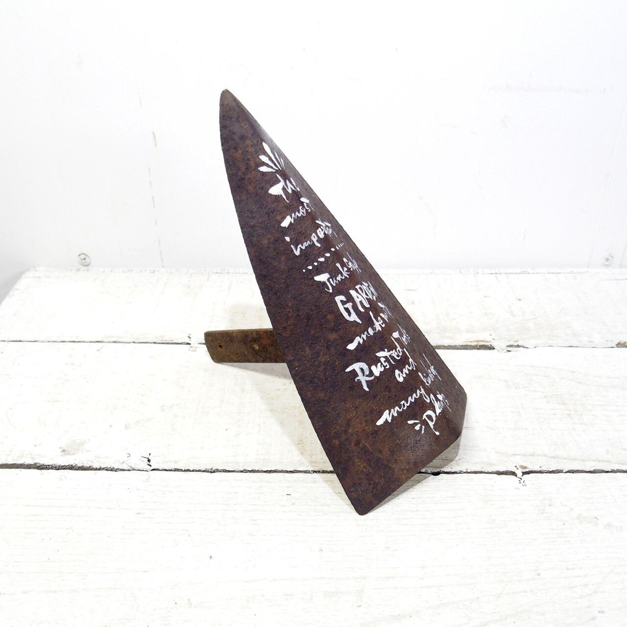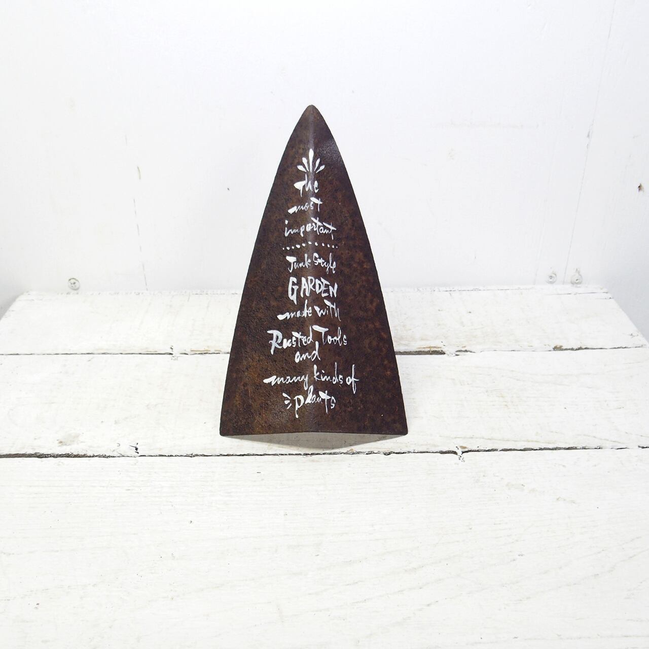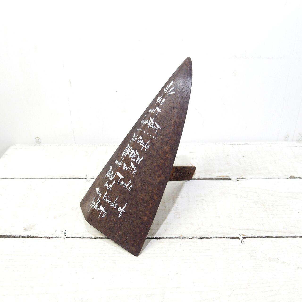 クワの一種である三角ホーに文字を入れたガーデンサインです♪