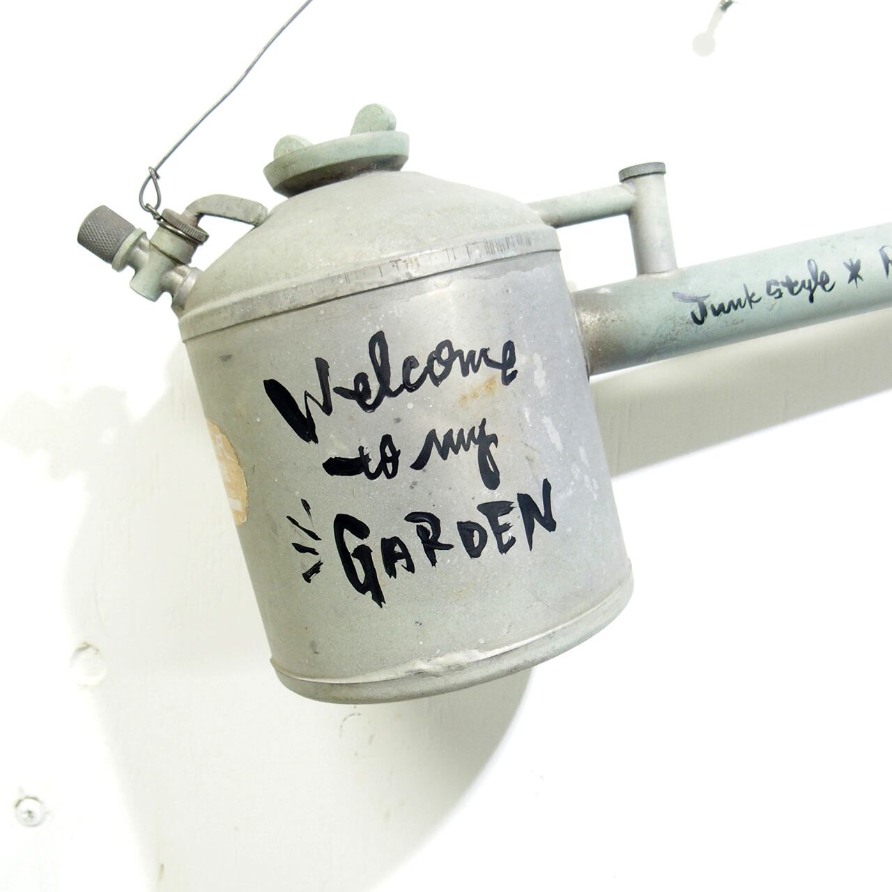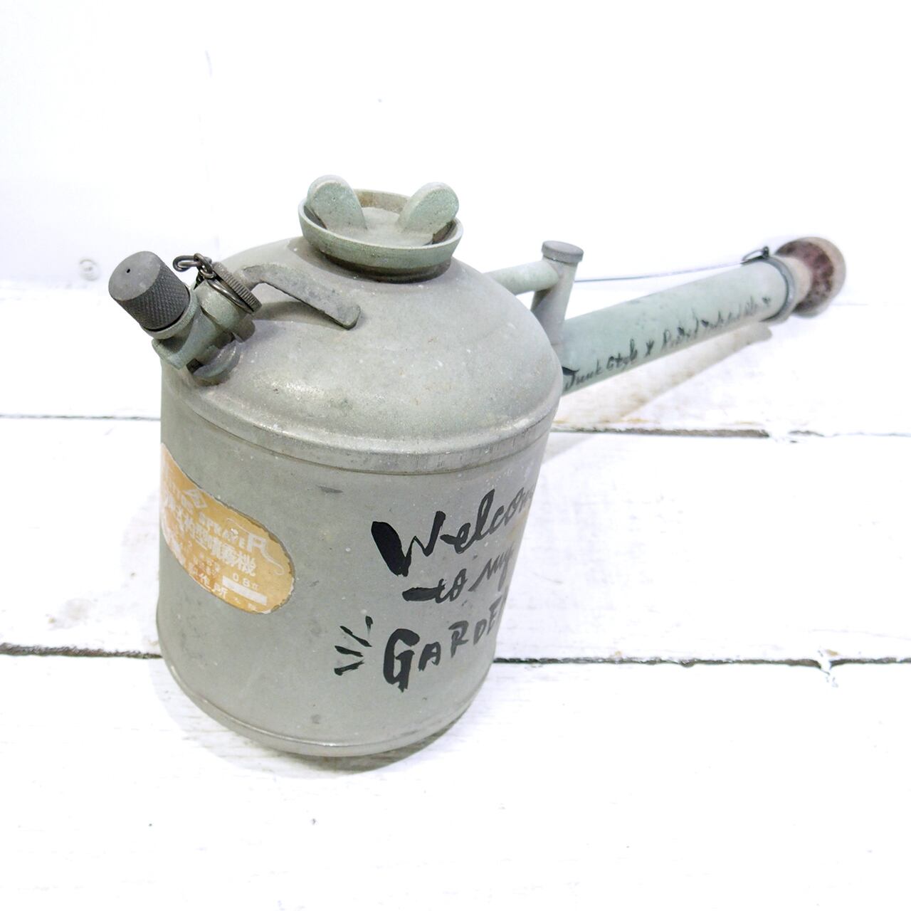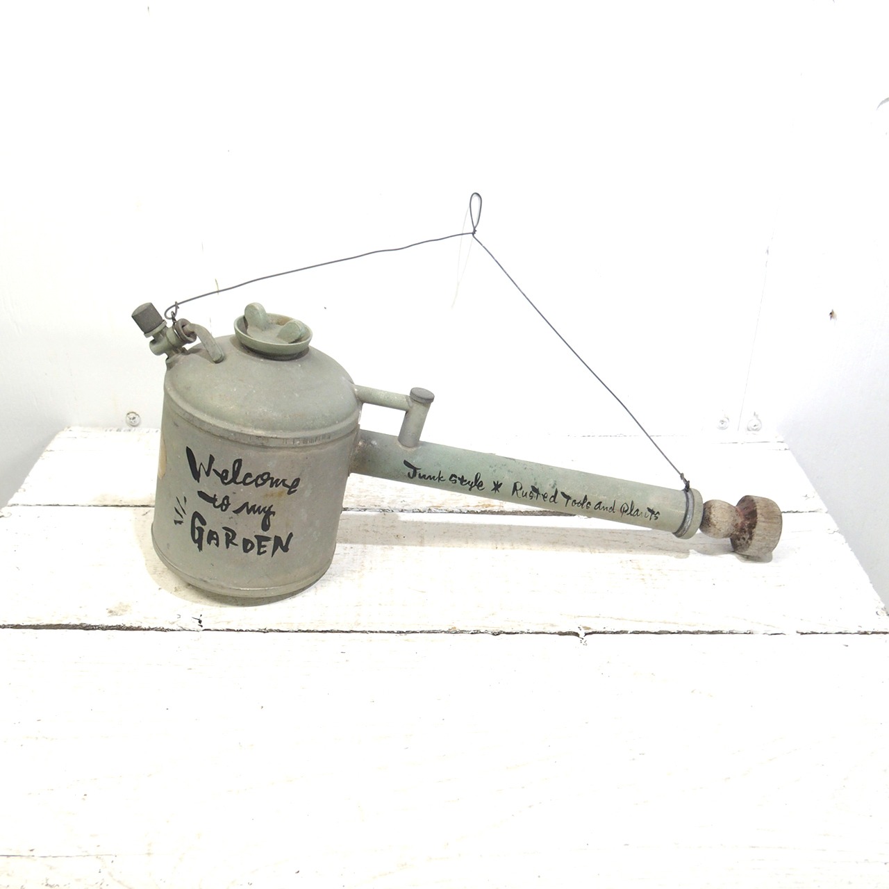 レトロな噴霧器に文字を入れたガーデンサインです♪