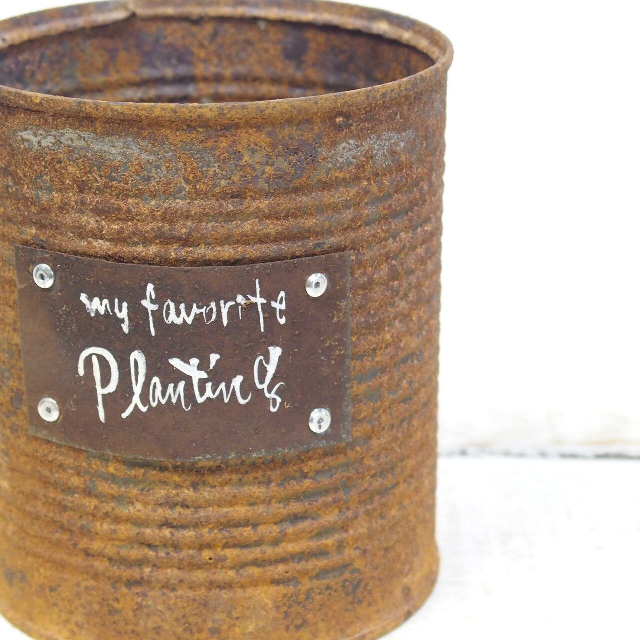 中サイズのサビサビリメ缶プランターに別のサビサビプレートをつけて♪