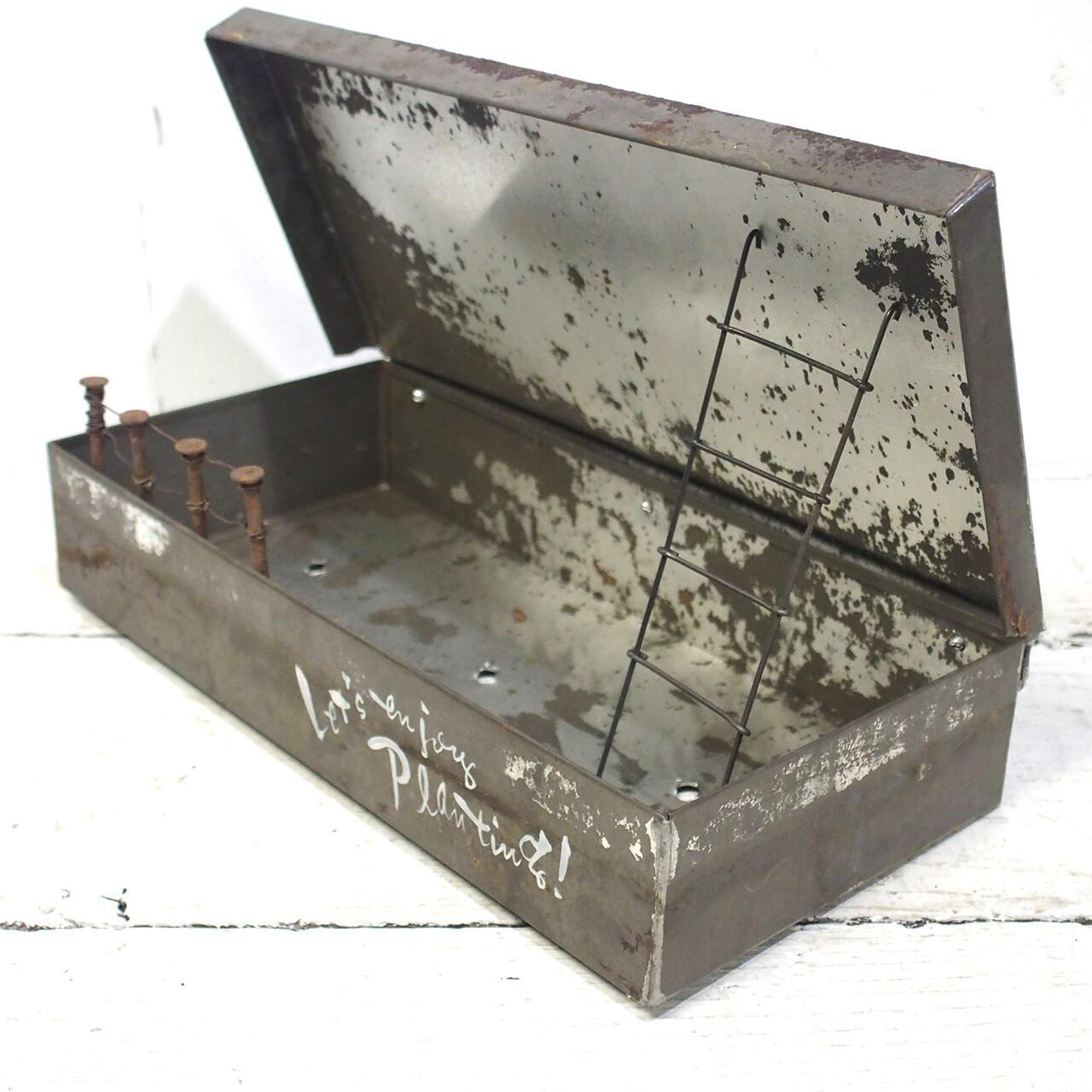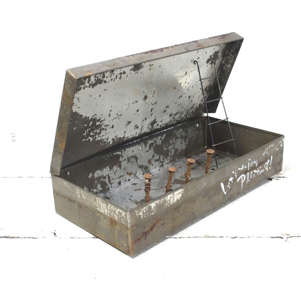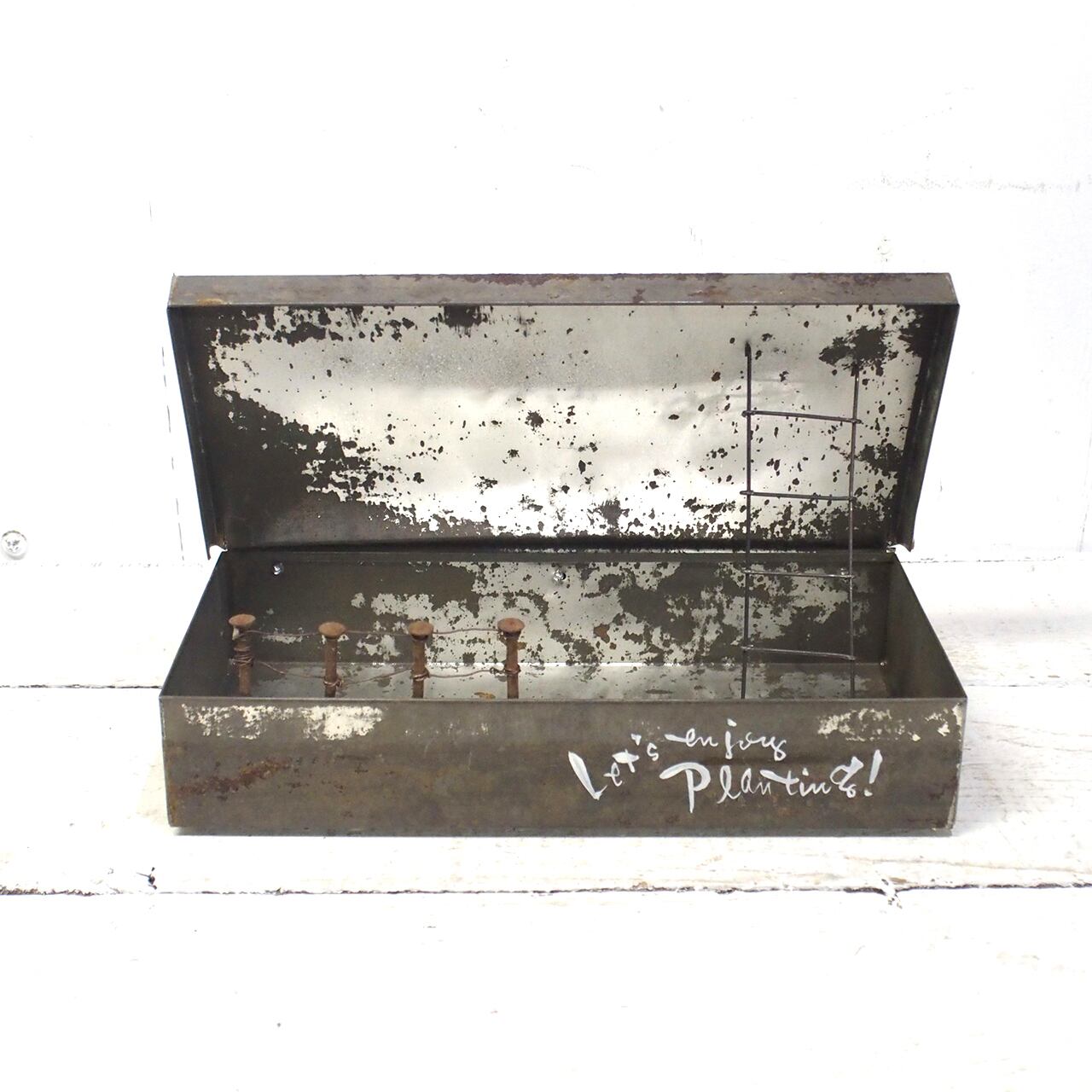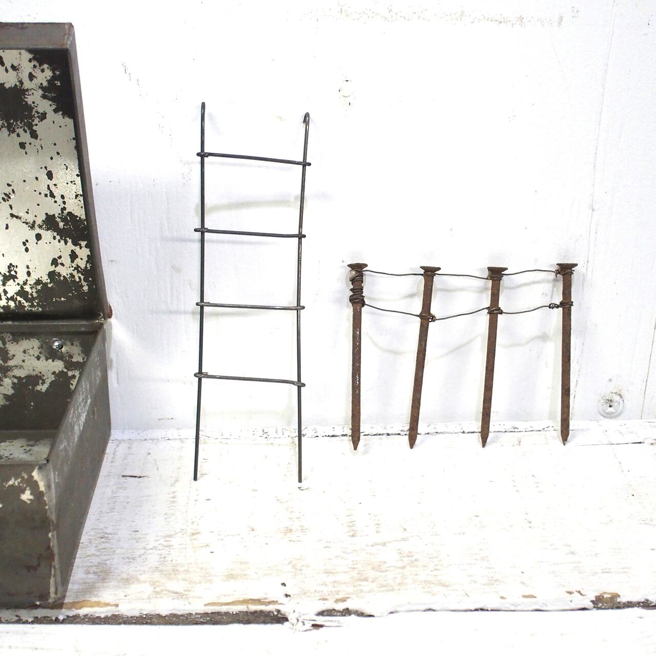 【リメイク古道具】サビ缶のプランター クギフェンスとワイヤーラダー付き