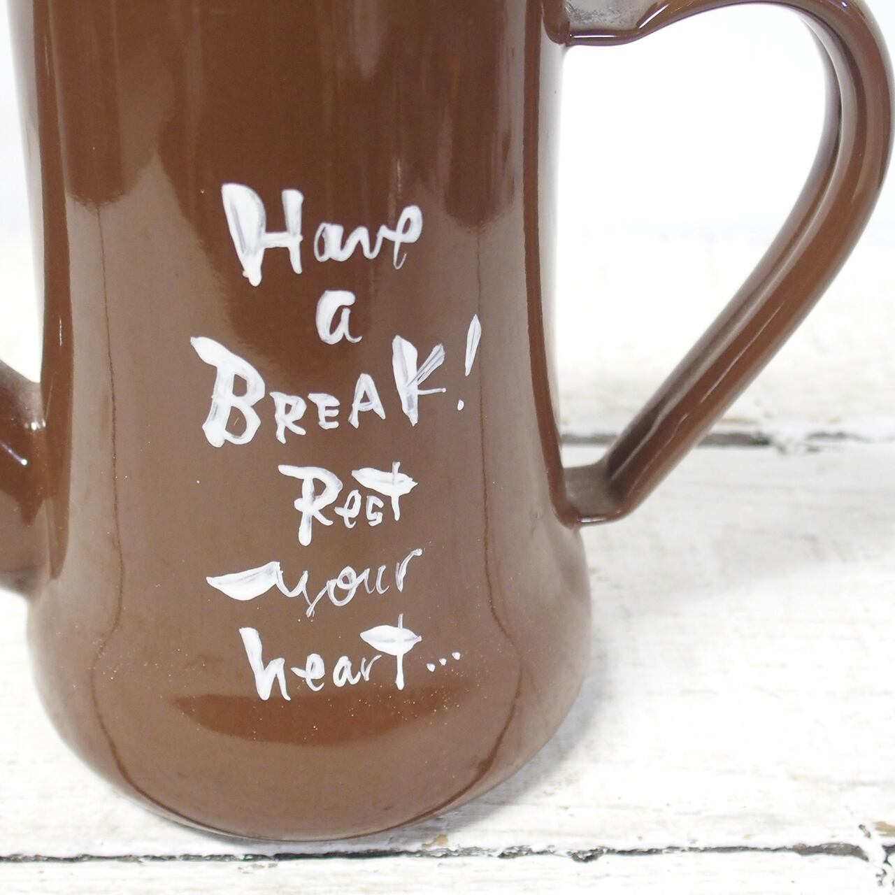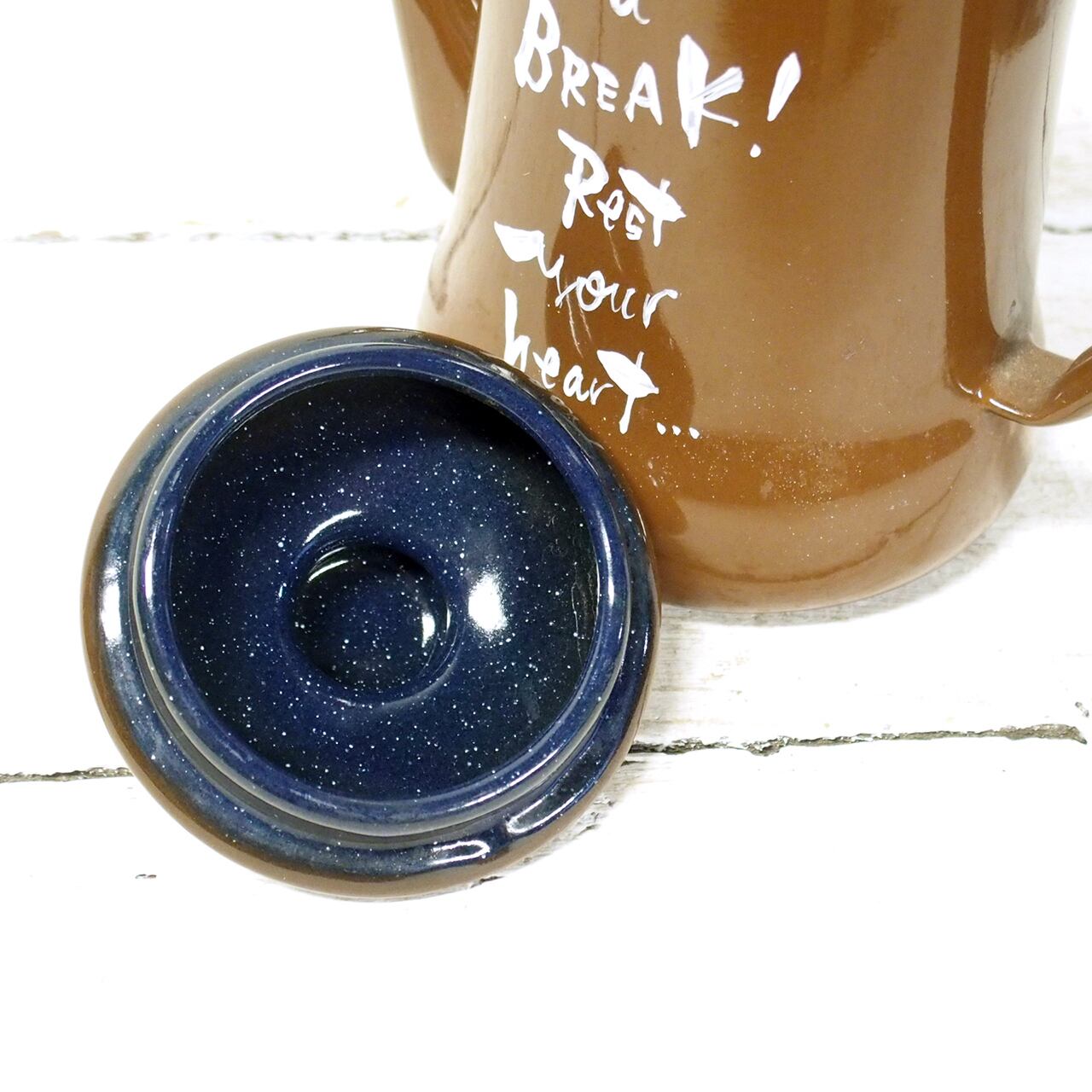 レトロなホーローのケトルに文字を入れたアレンジ品です♪