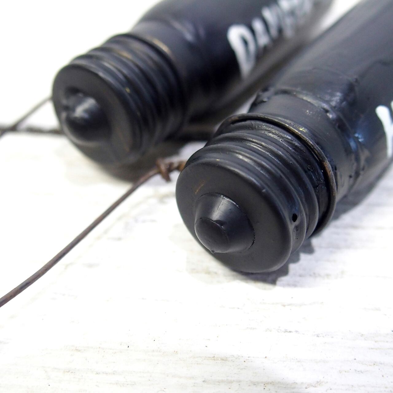古電球を黒くペイントして文字を入れたオーナメントです♪