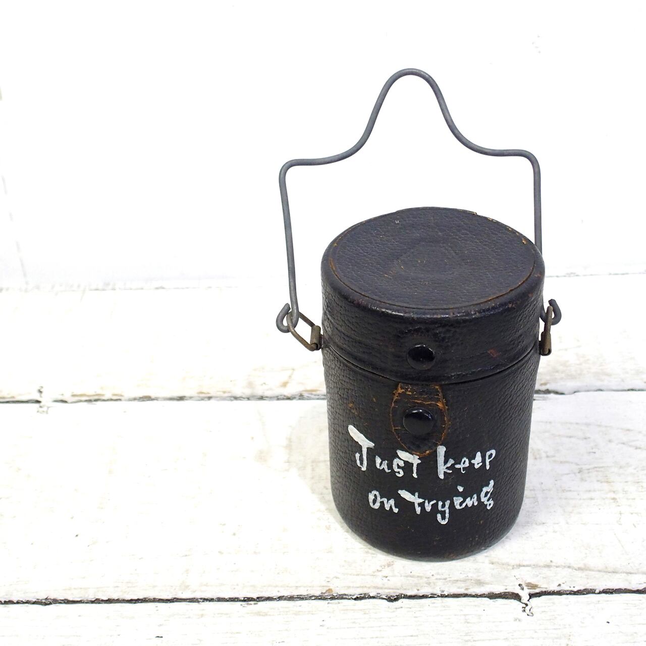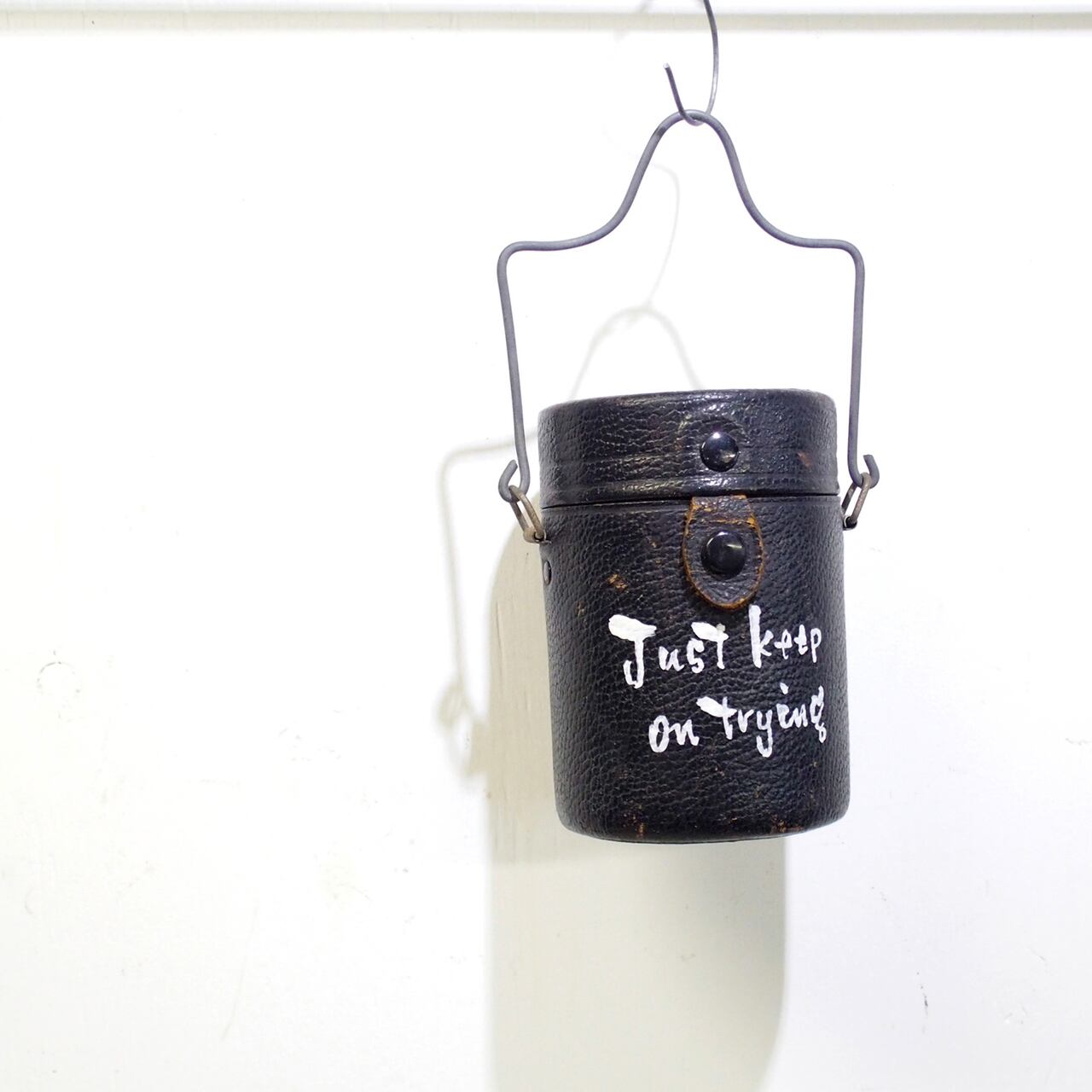 【アレンジ古道具】カメラレンズケースの文字アレンジ