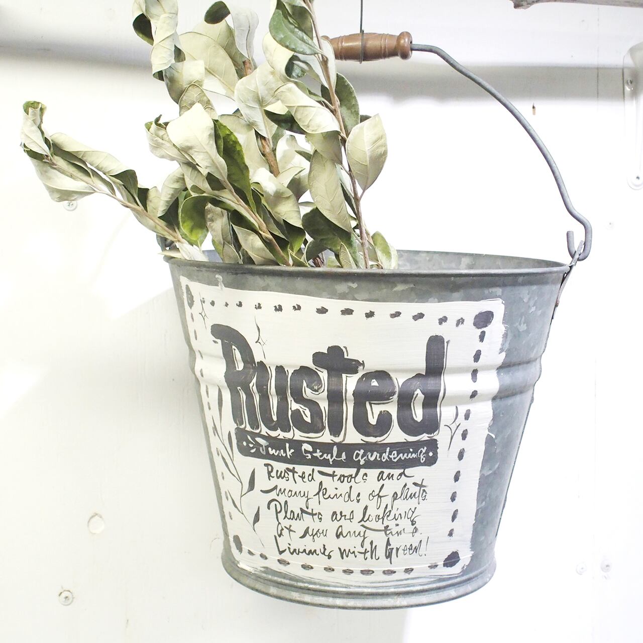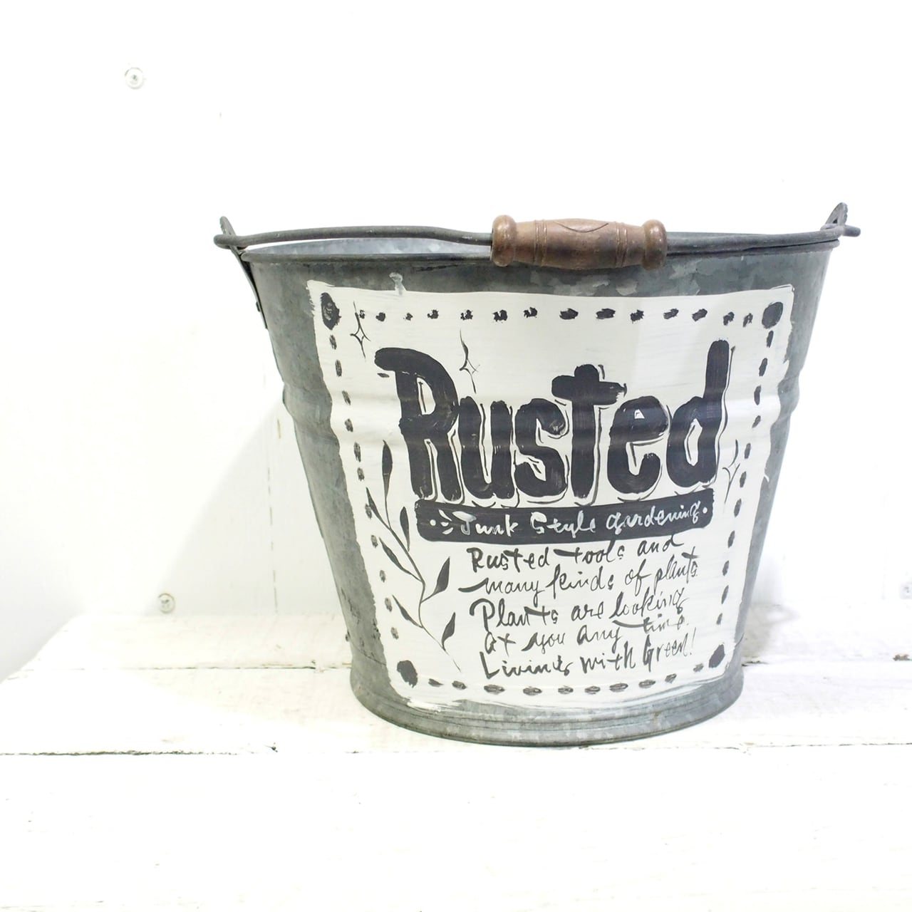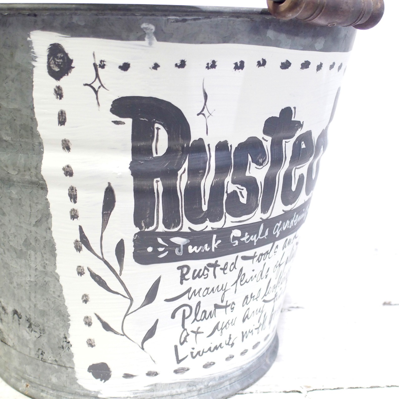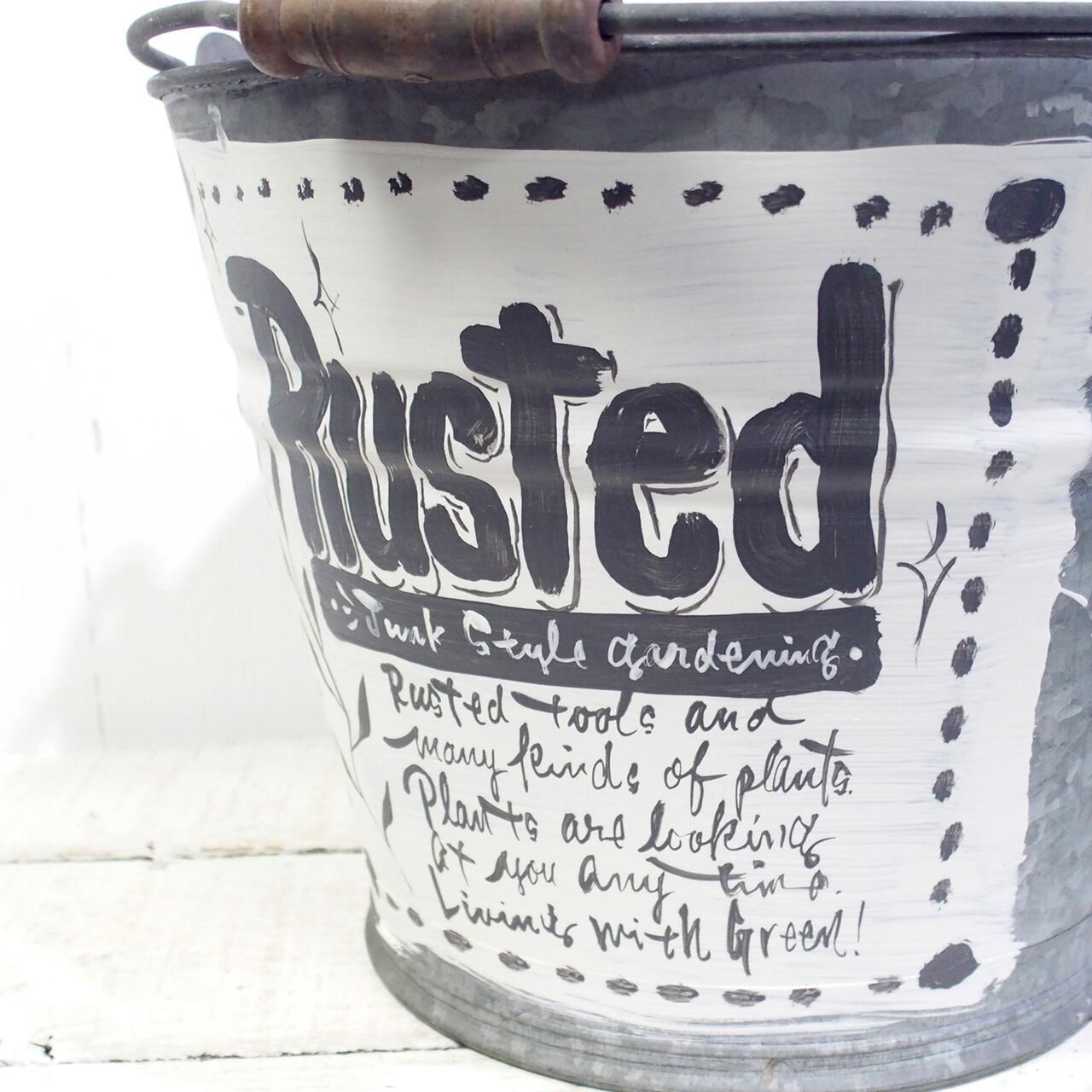 ジャンクな古いブリキのバケツをペイントリメイクしました♪