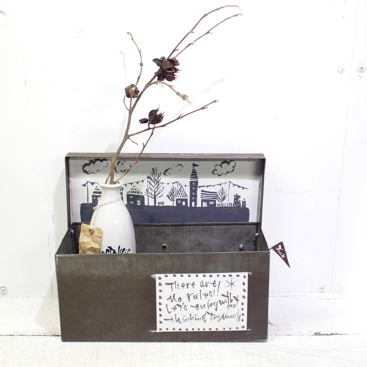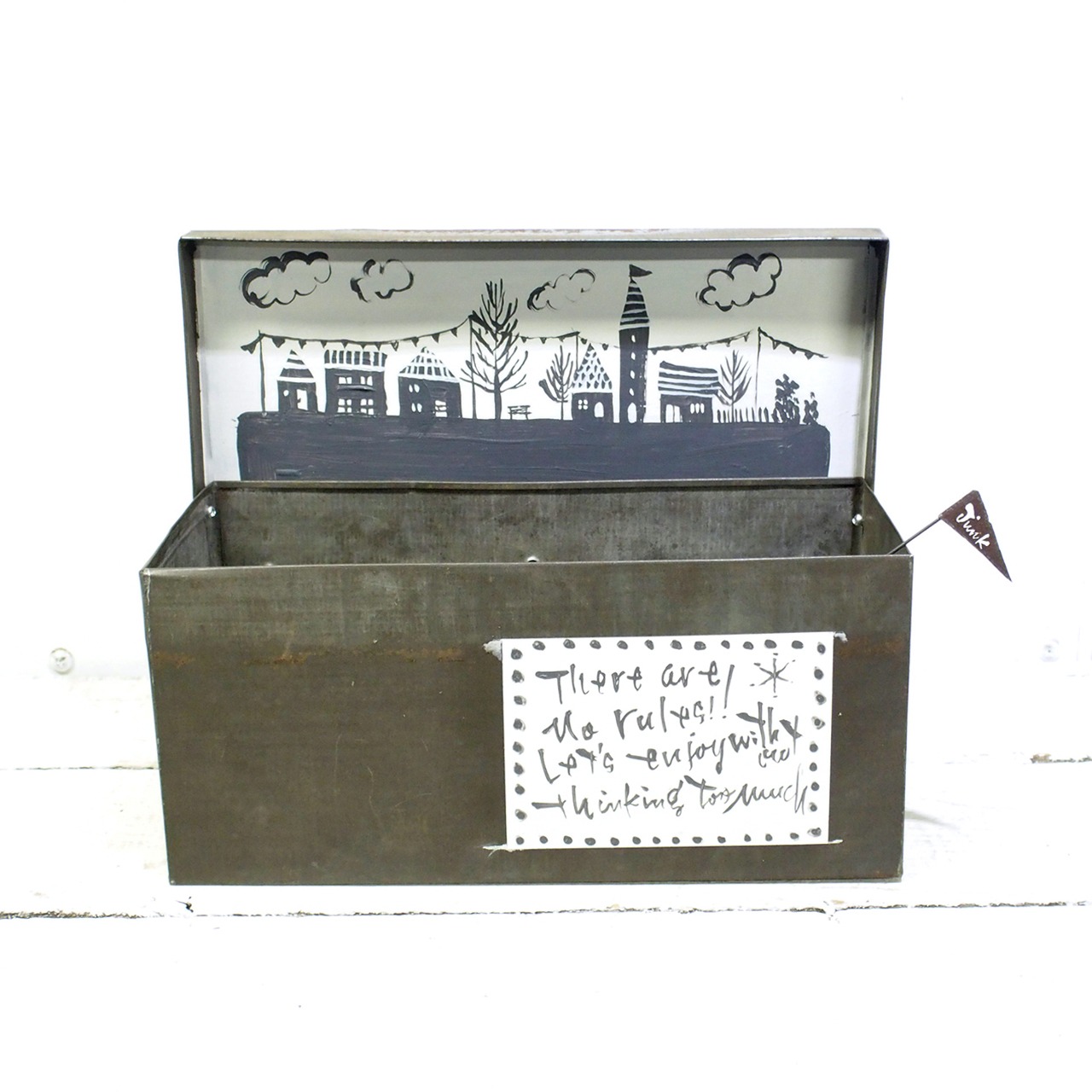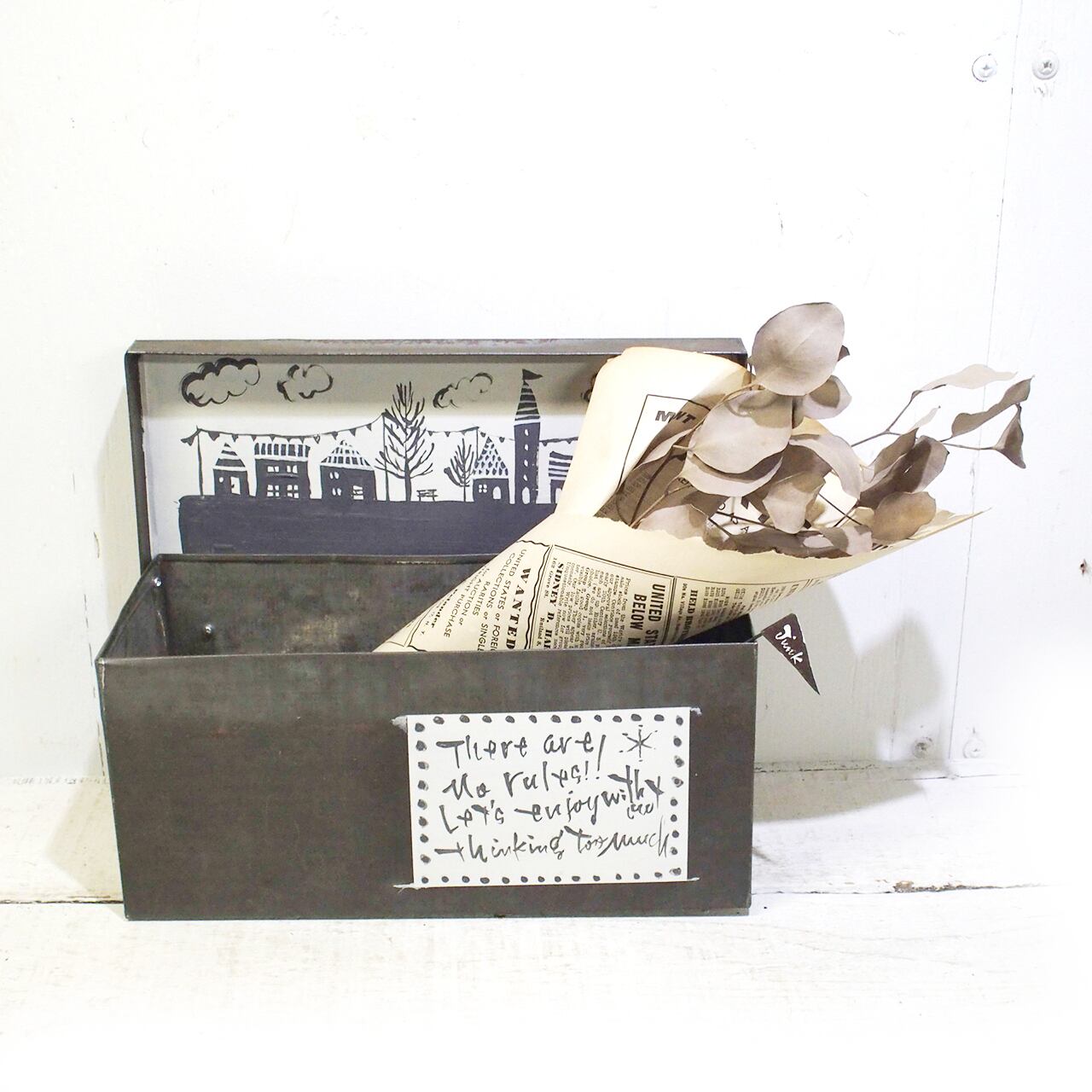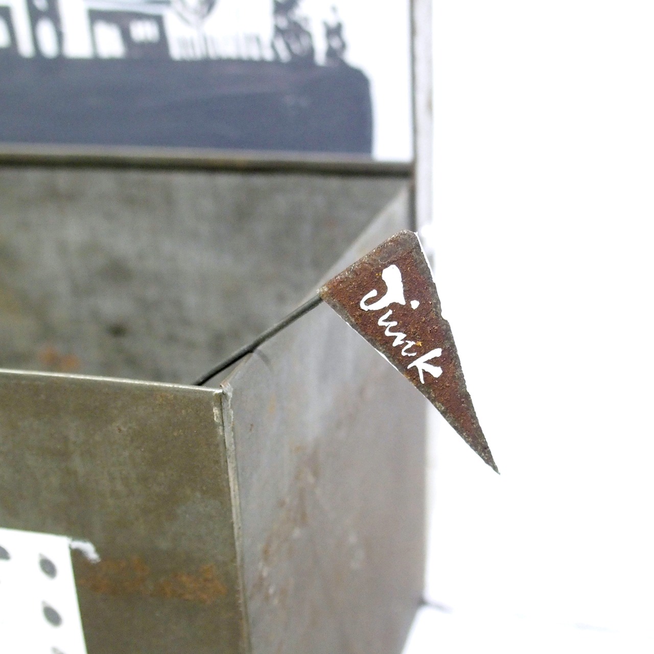【リメイク古道具】サビ缶のプランター フラッグピック付き