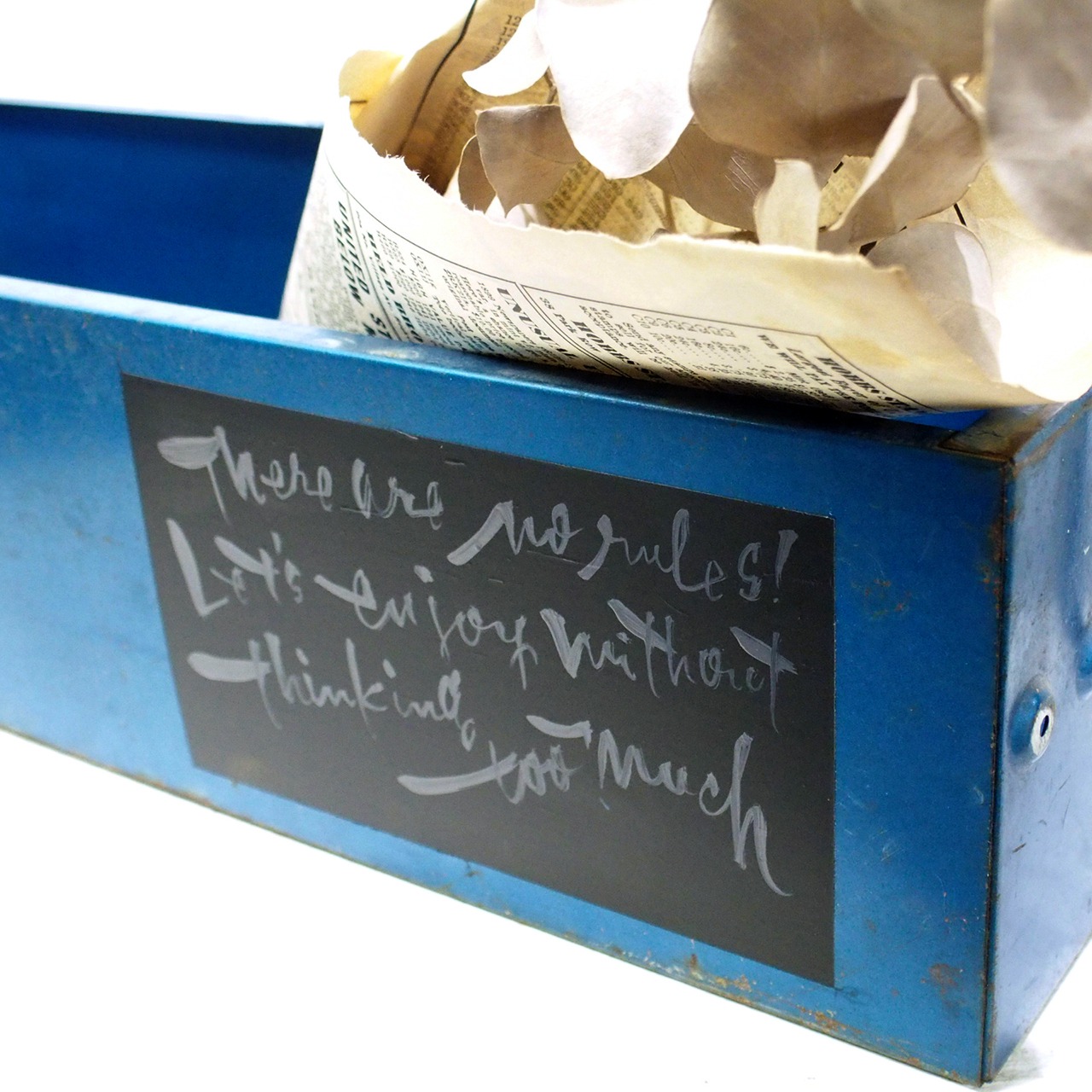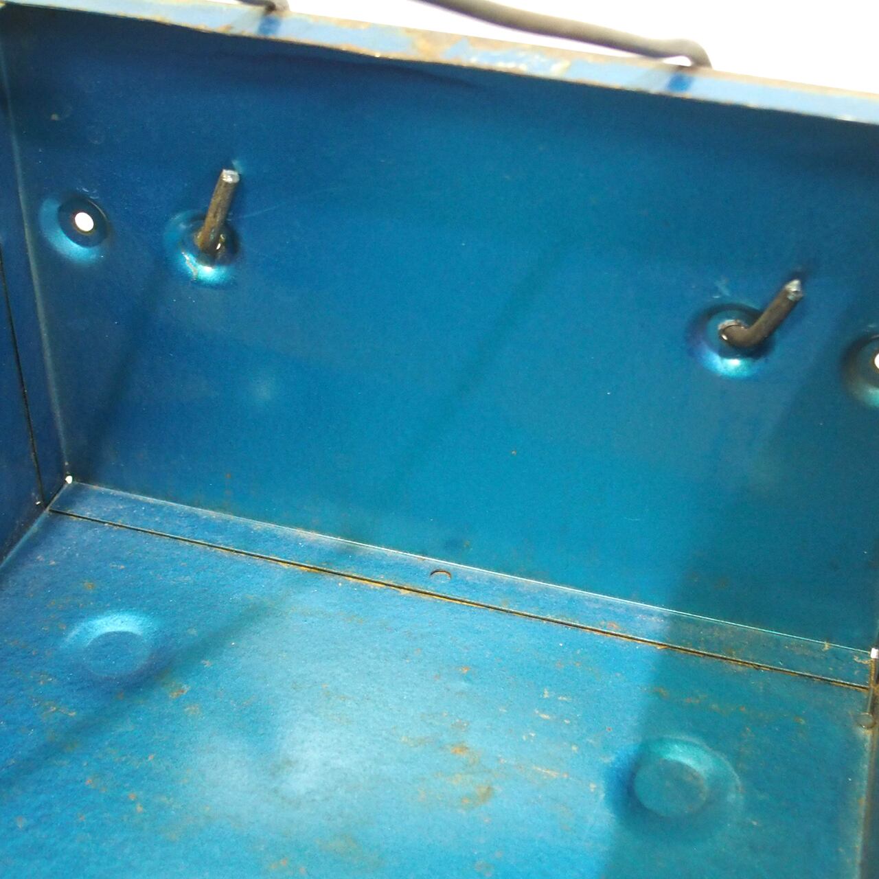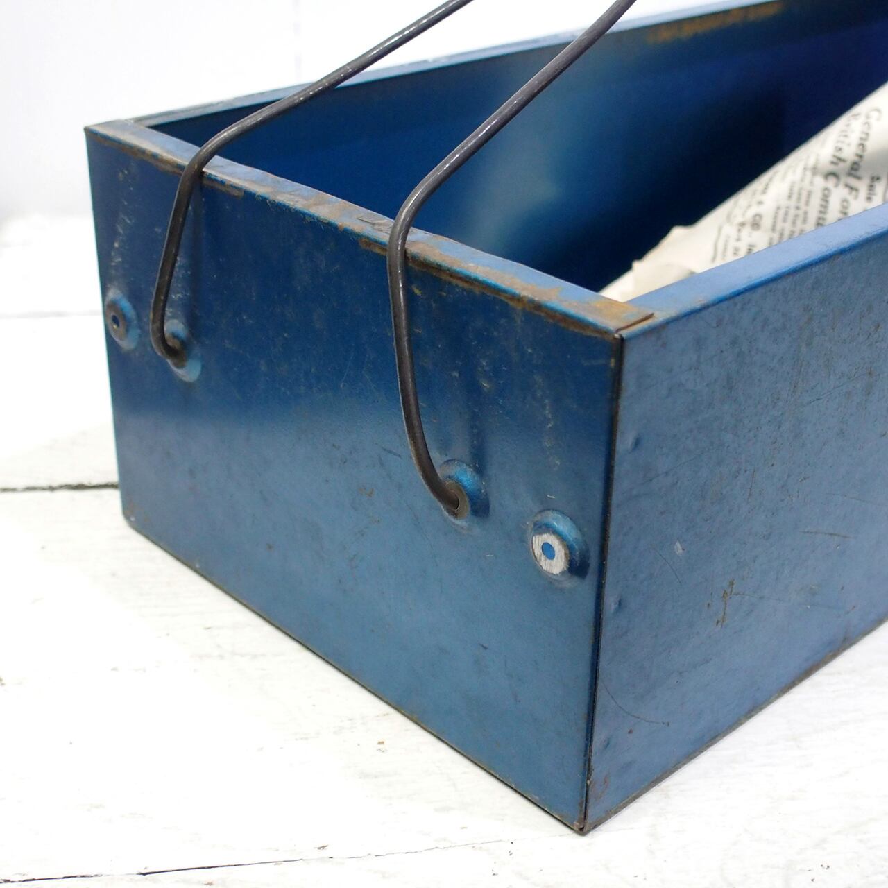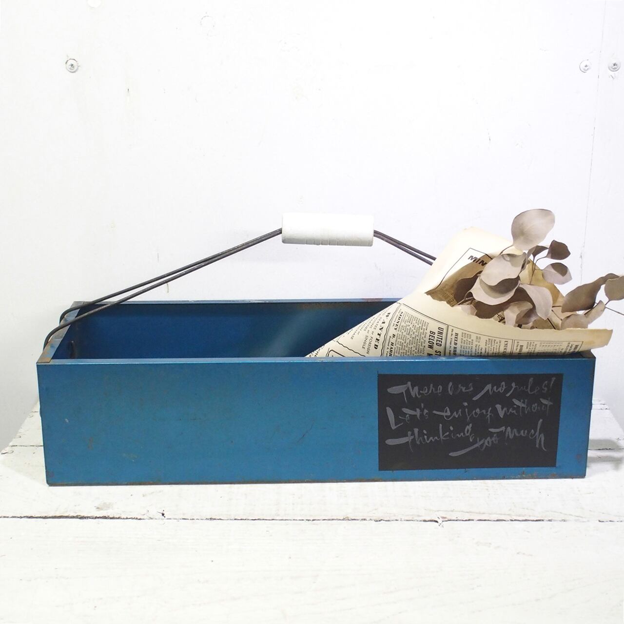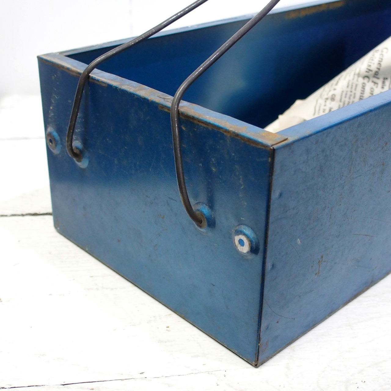 蓋を取った工具箱に取っ手を付けたトレーです♪