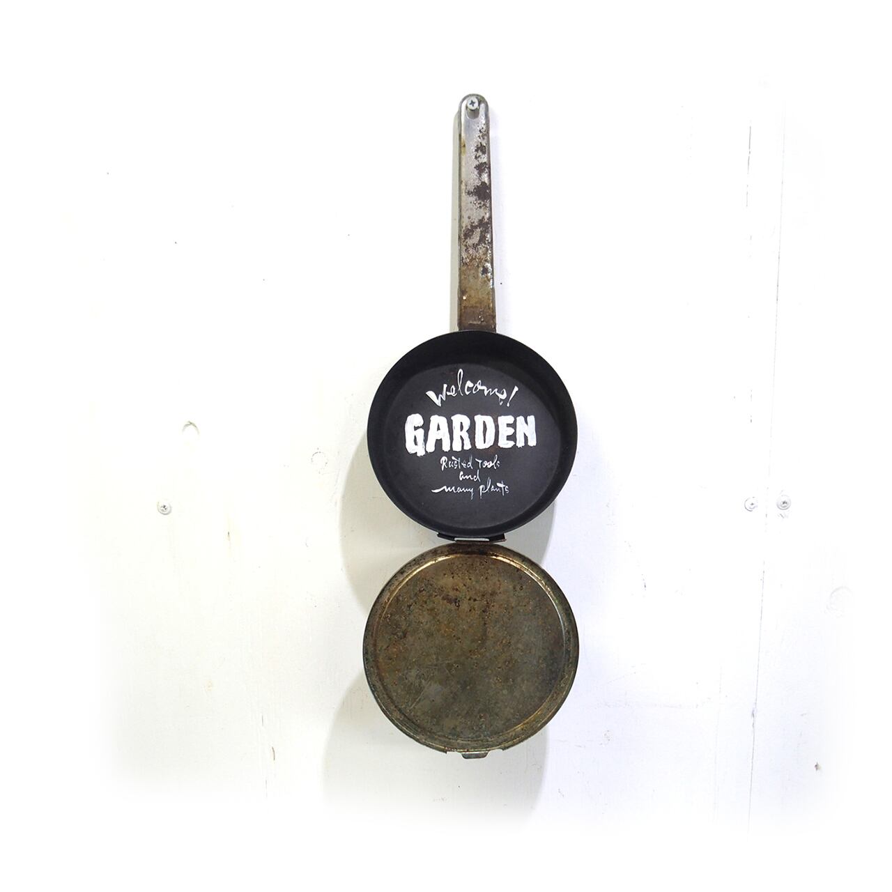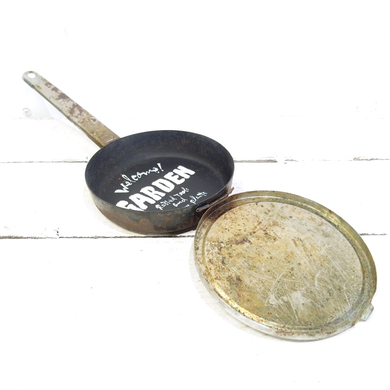 ちょっと珍しい蓋付きのフライパンをガーデンサインに♪
