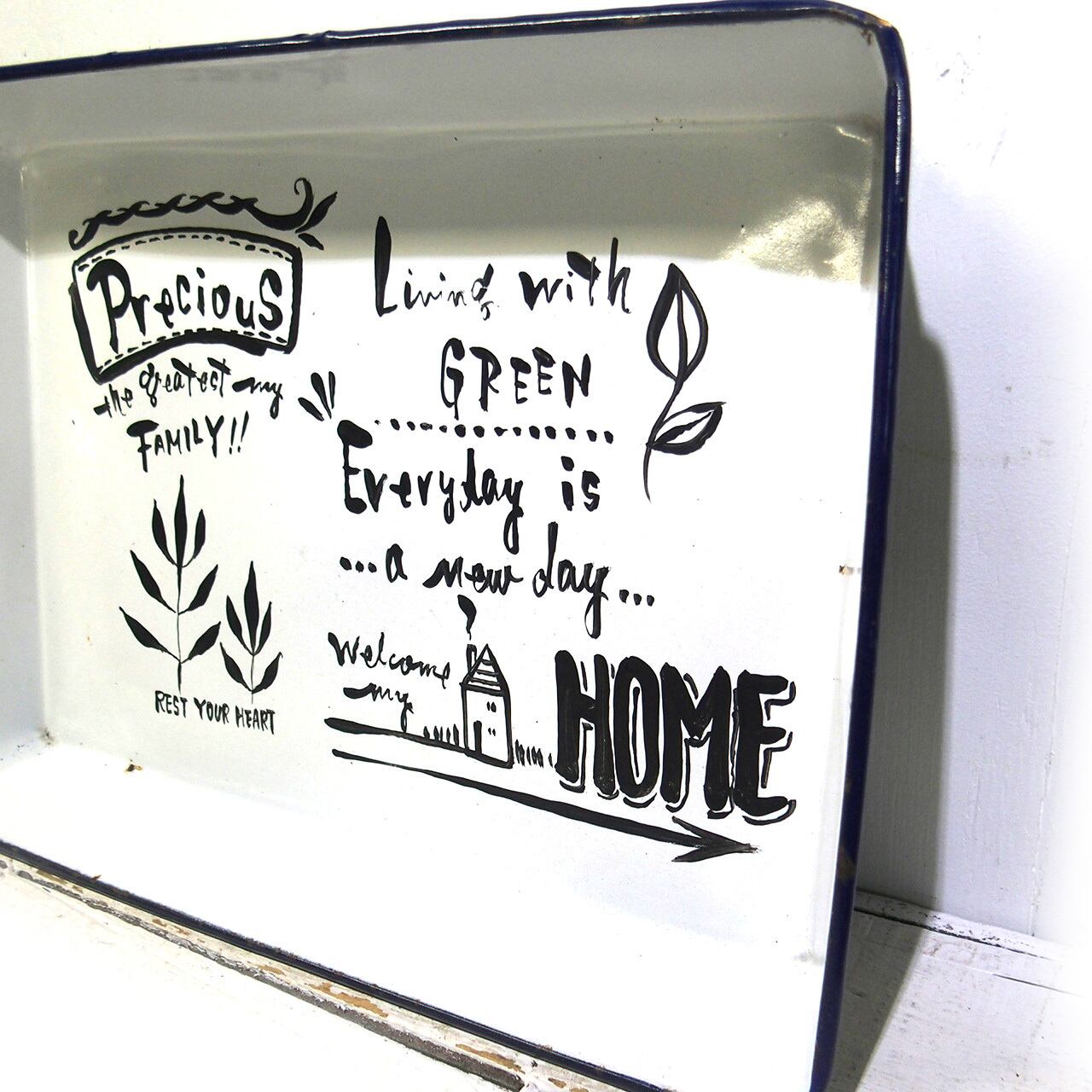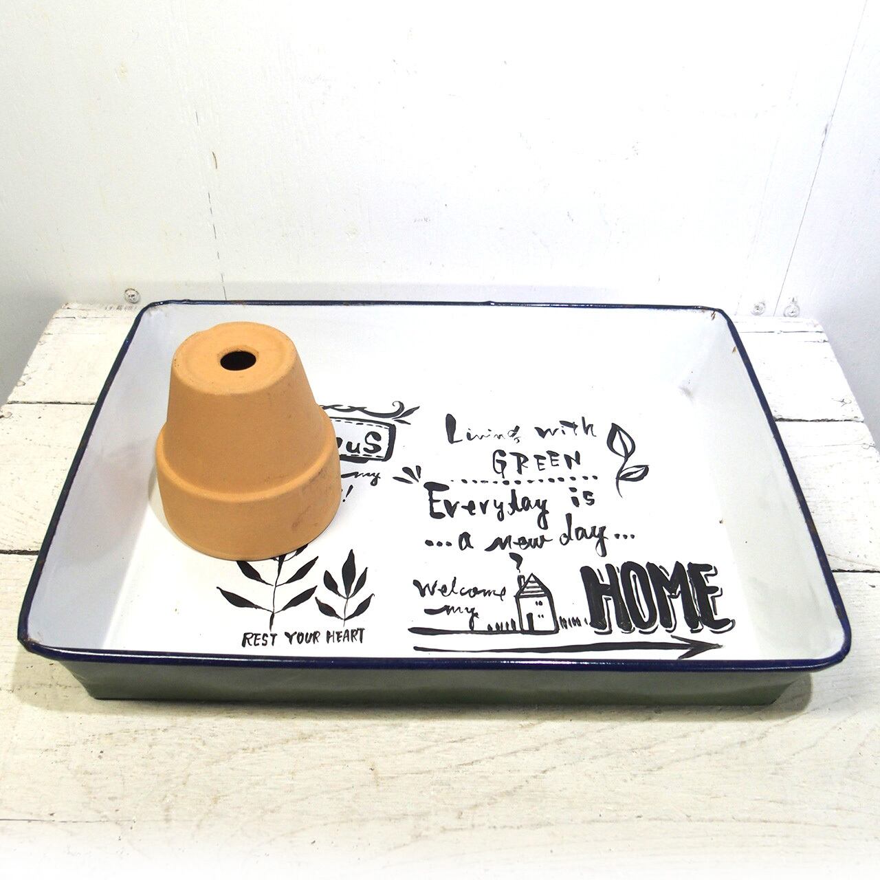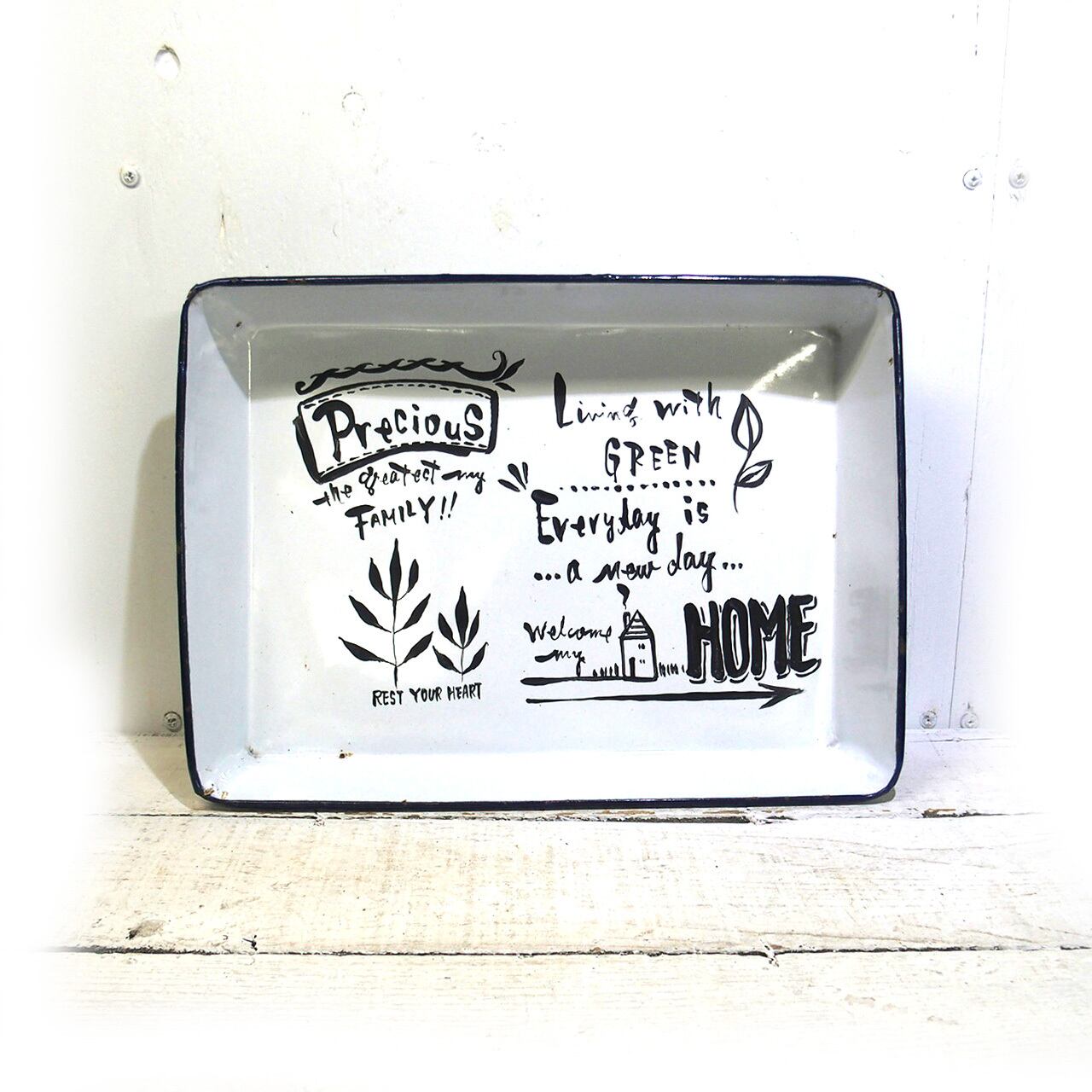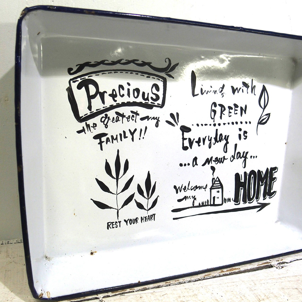 ホーローのバットに文字とイラストを入れたアレンジ作品です♪