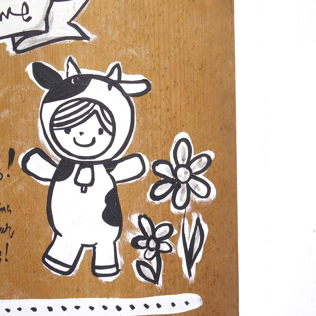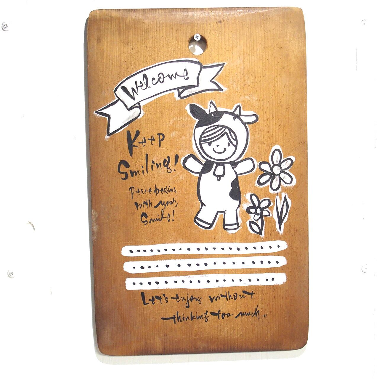 反物などの巻き取りに使われた板にペイントしたイラストパネルです♪