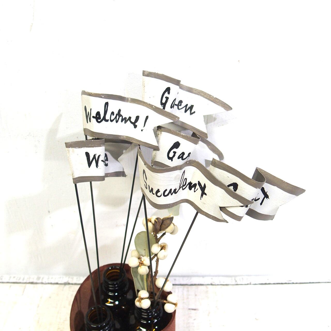 ブリキで作ったフラッグにペイントしたプランター用のピックです♪