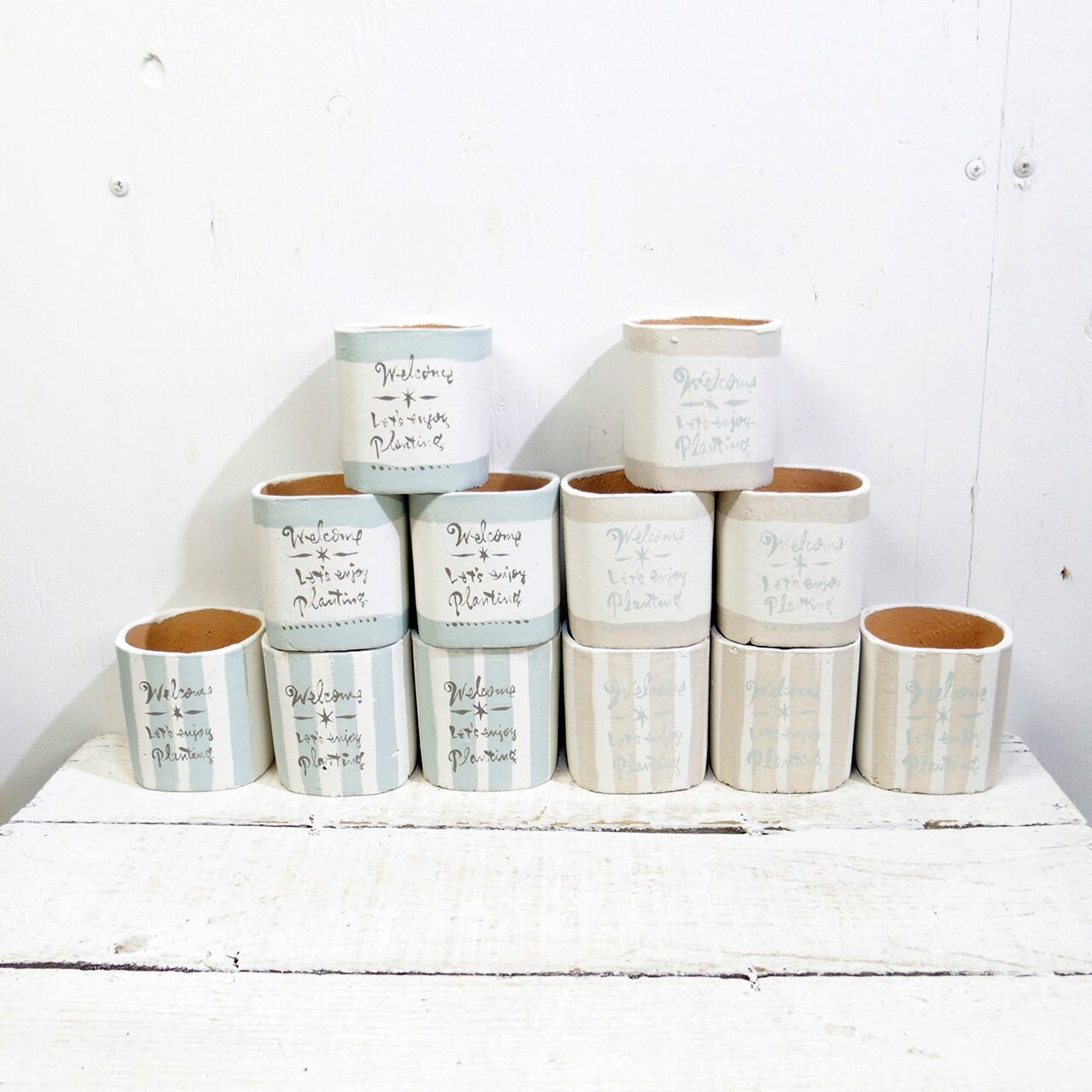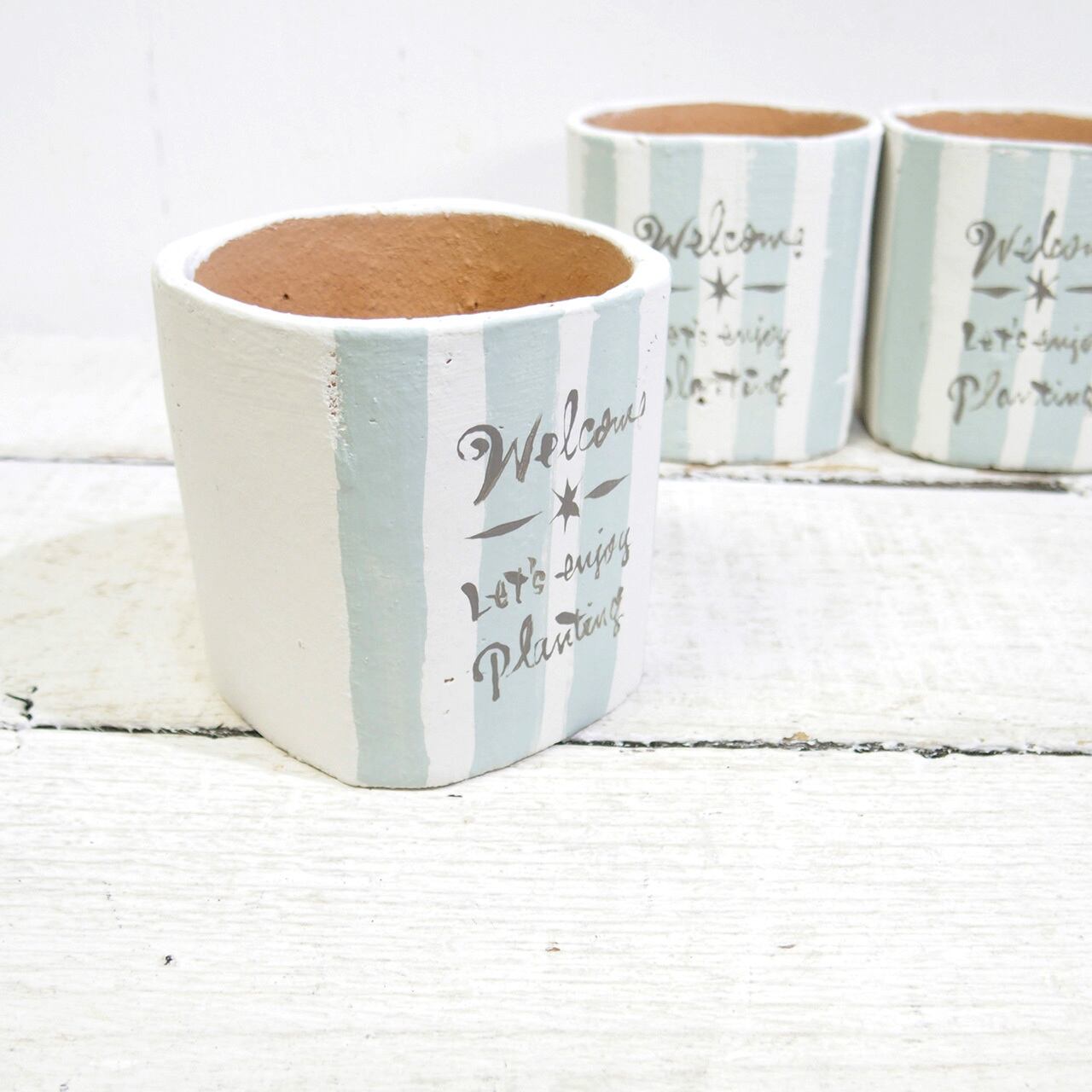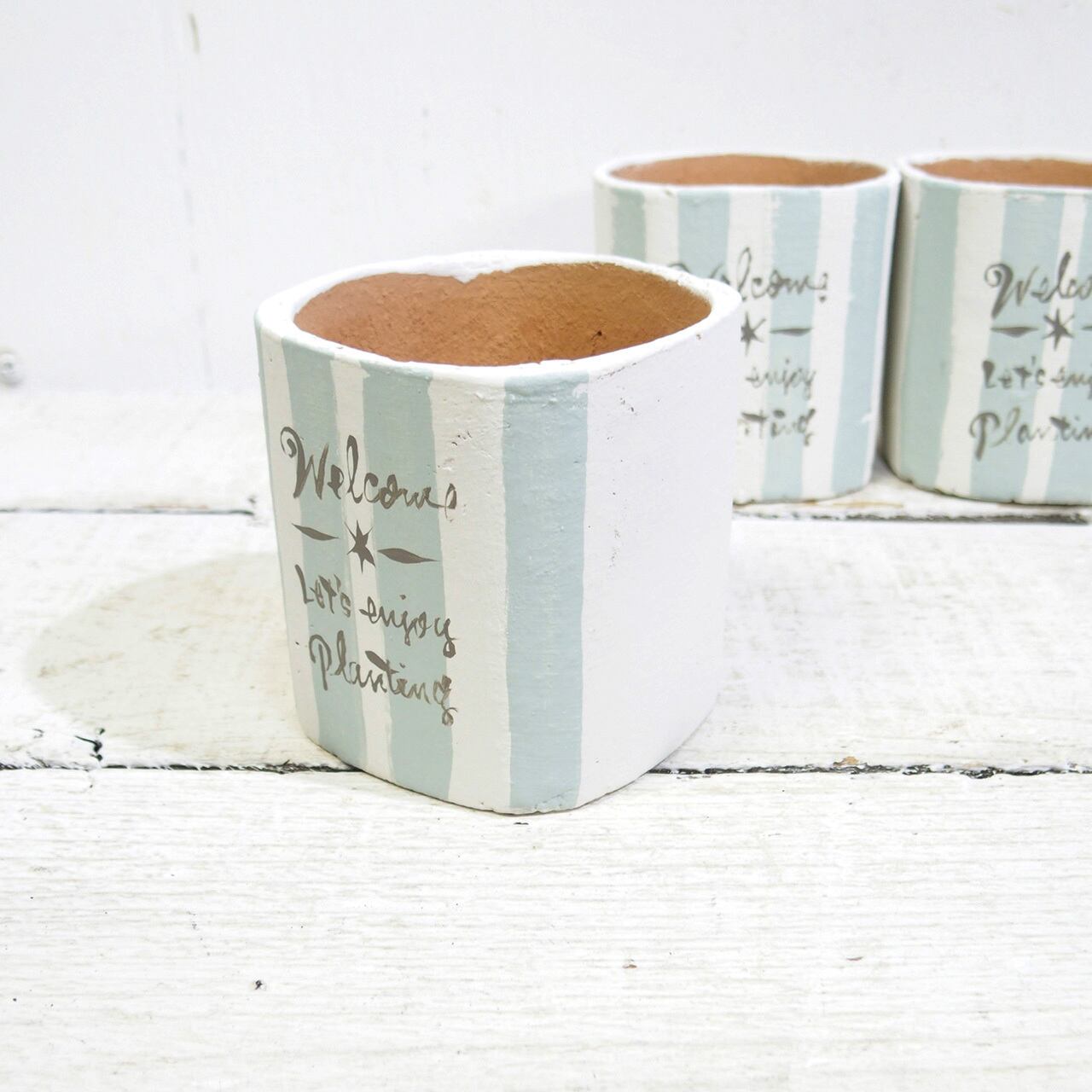 【リメイク鉢】四角2.5号アレンジ鉢 spring BL-ストライプ