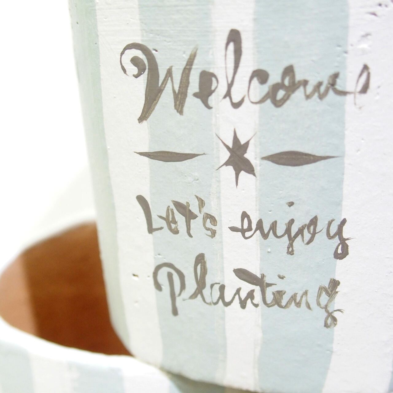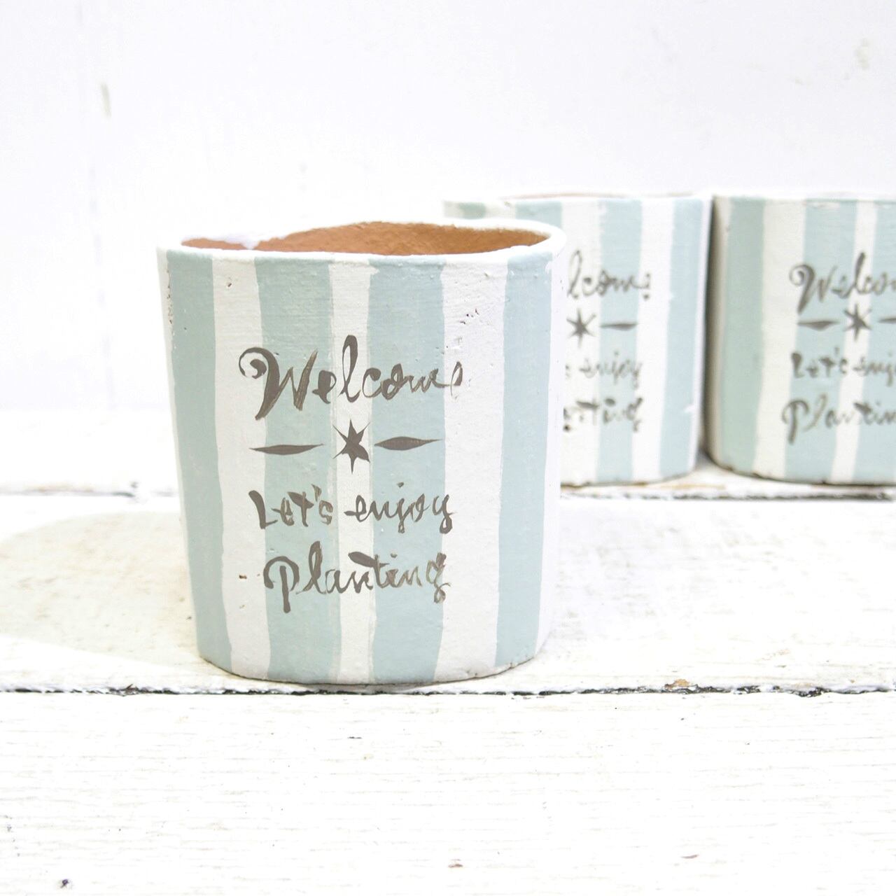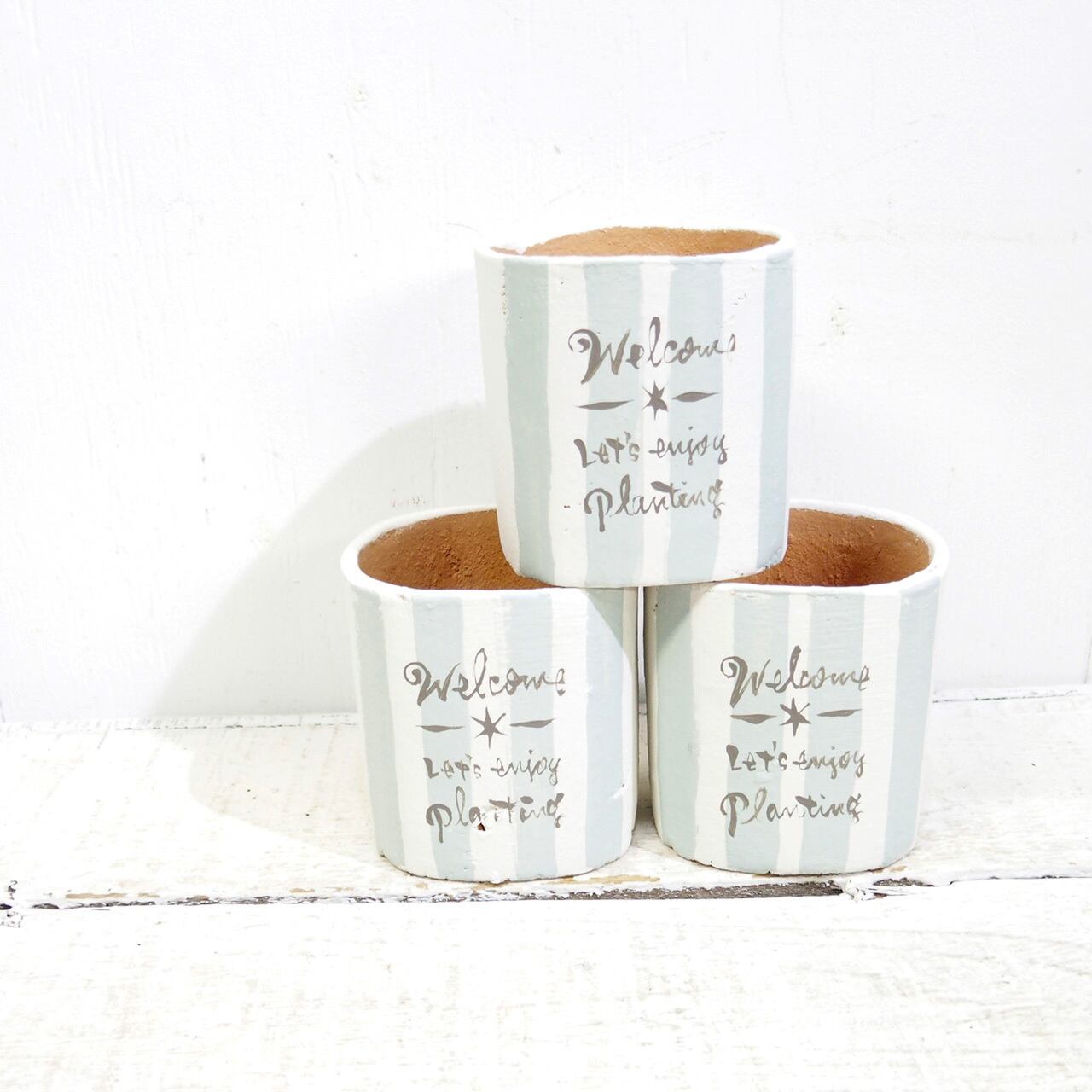 【リメイク鉢】四角2.5号アレンジ鉢 spring BL-ストライプ