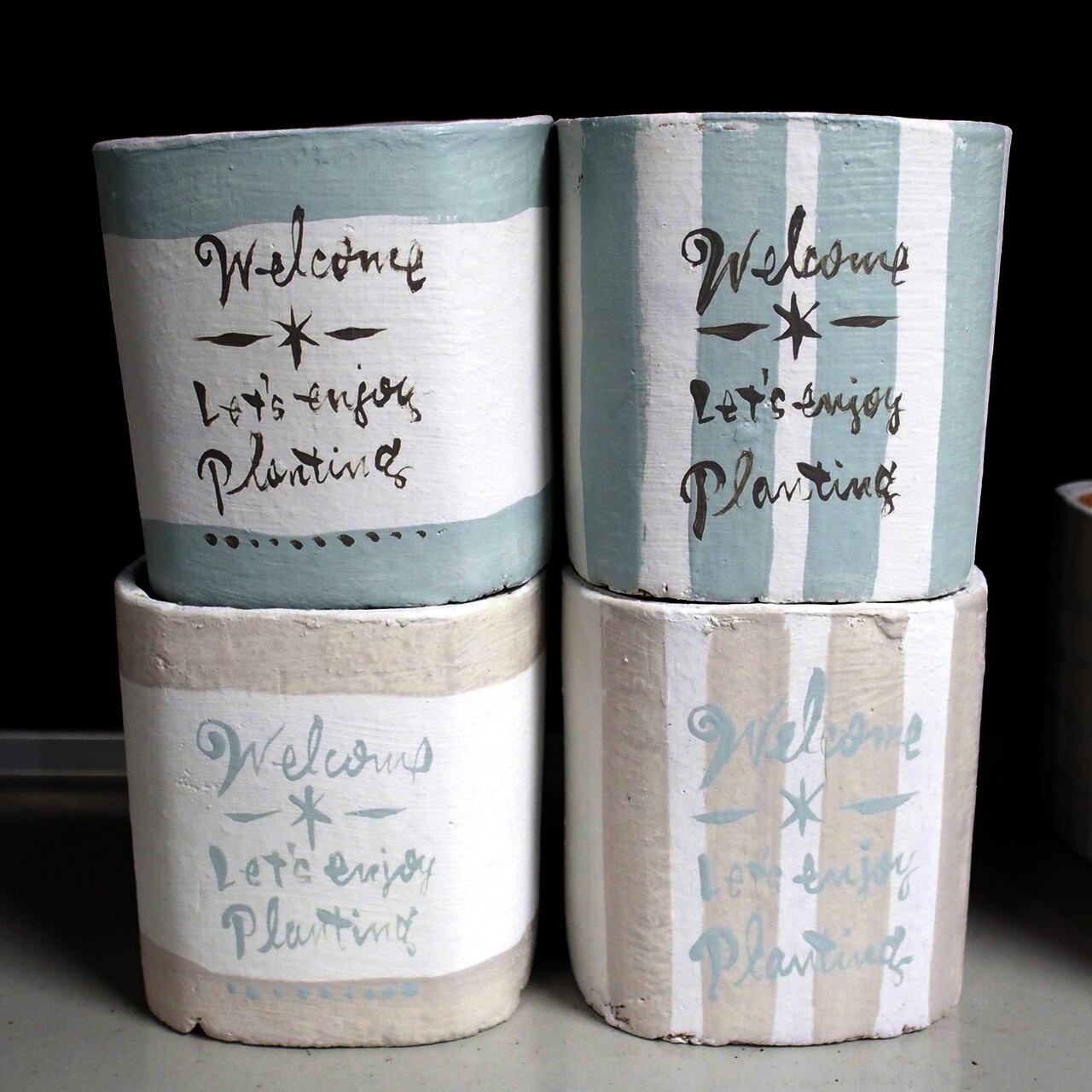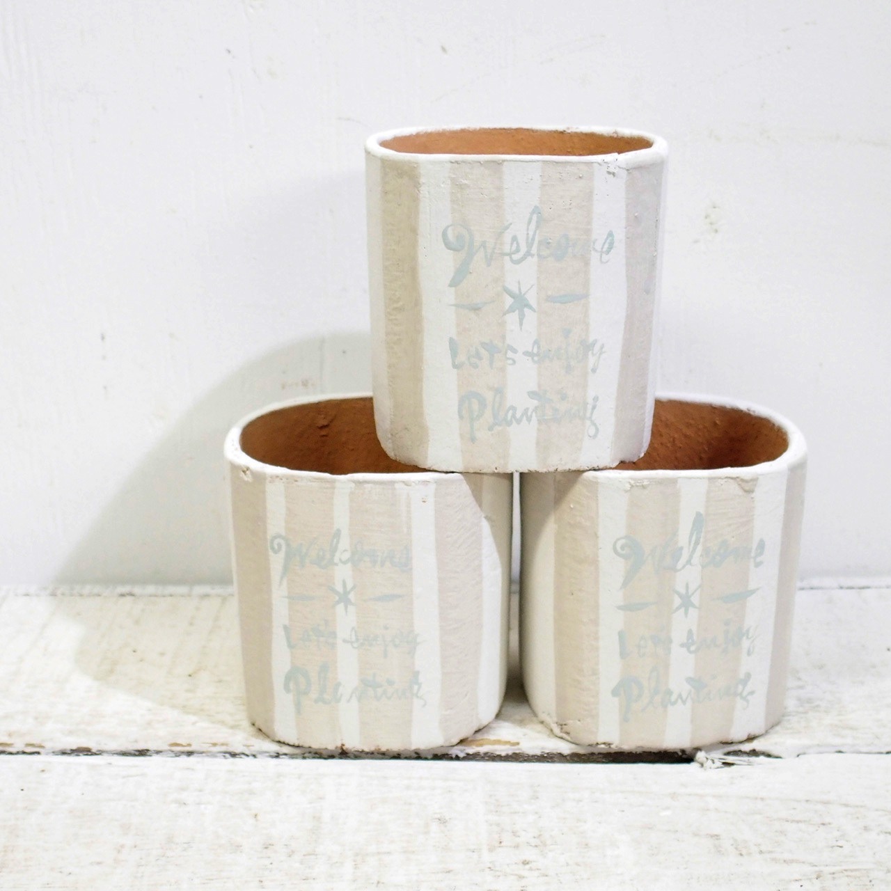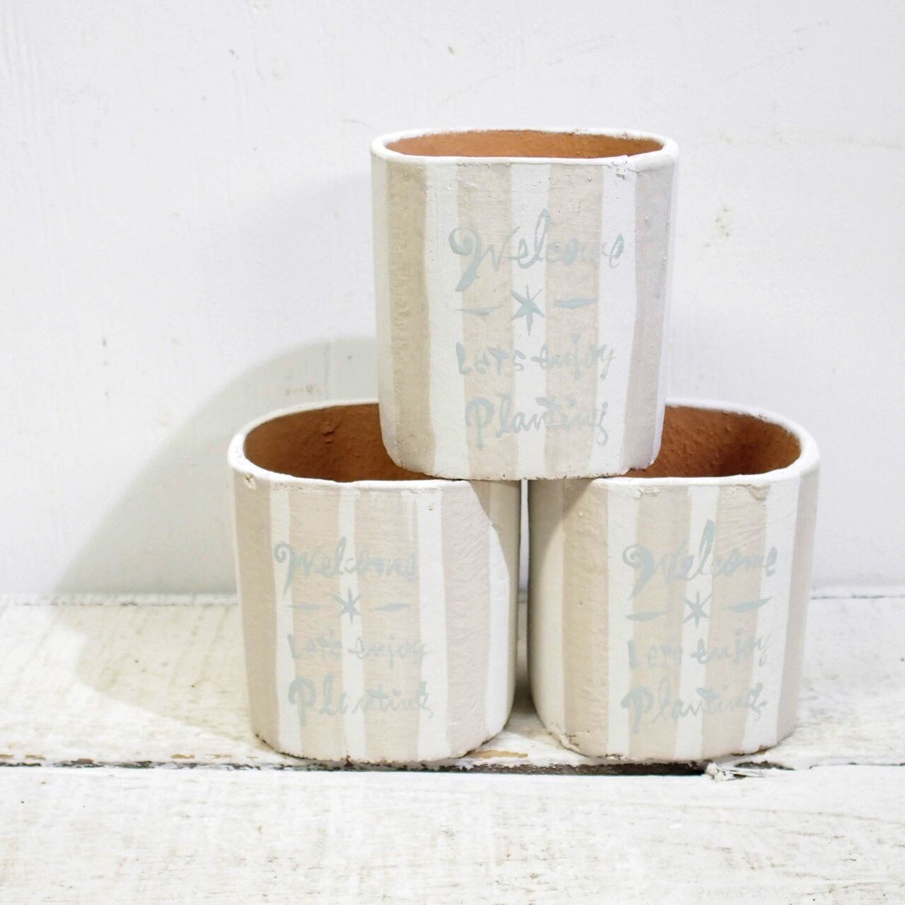 【リメイク鉢】四角2.5号アレンジ鉢 spring BE-ストライプ