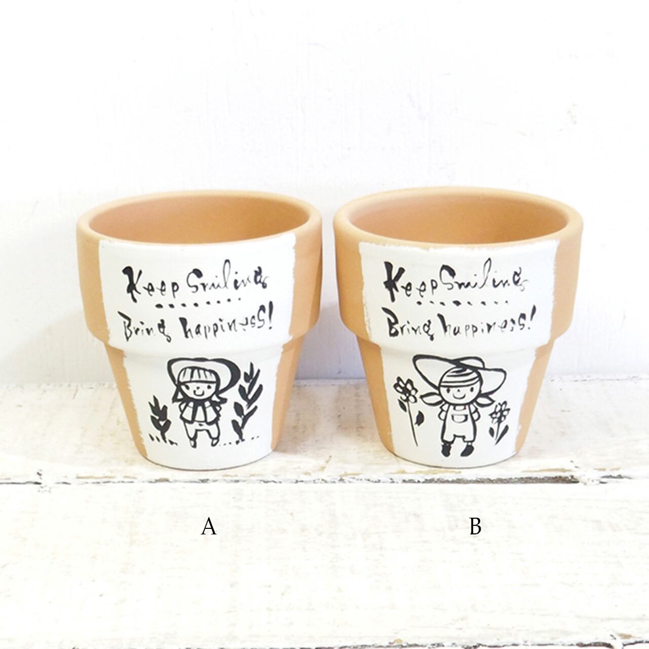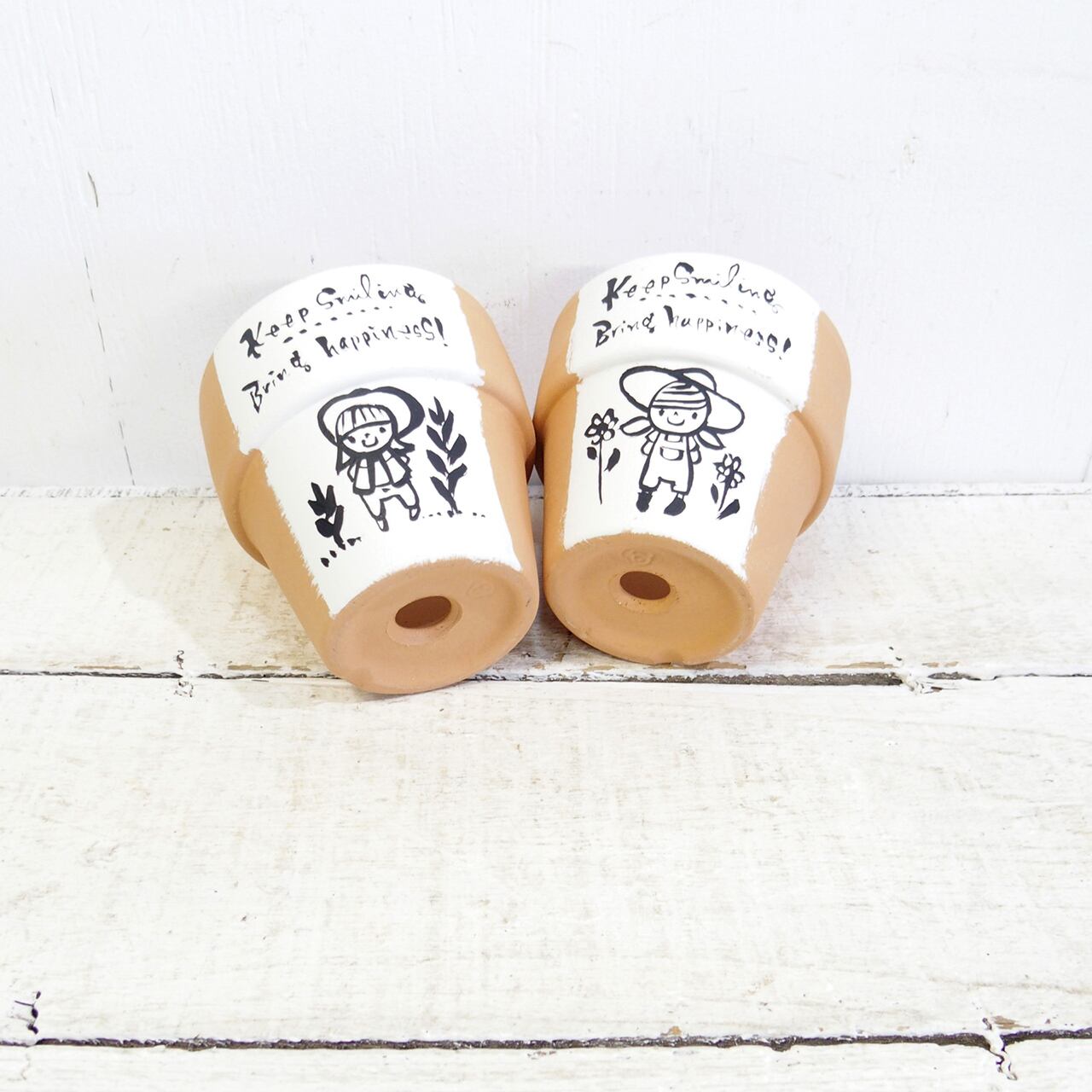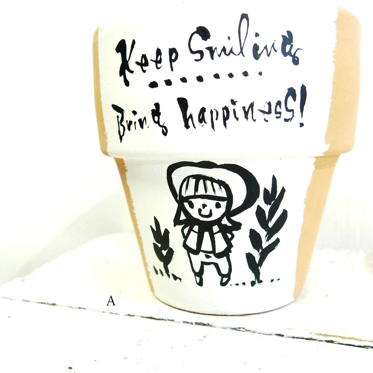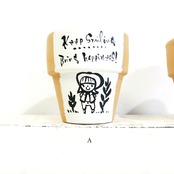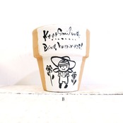 リムの太い可愛い鉢にイラストと文字を入れたアレンジ鉢です♪