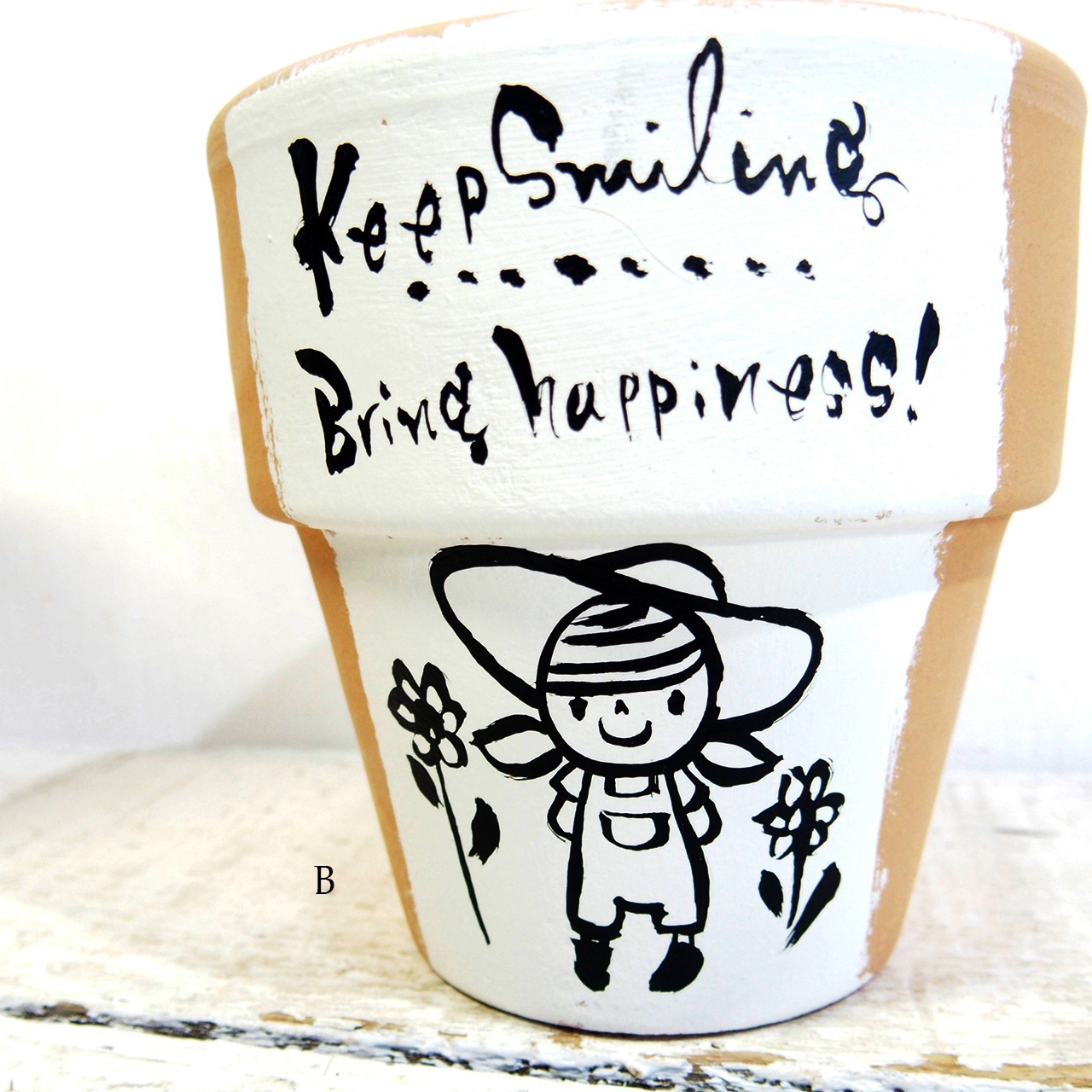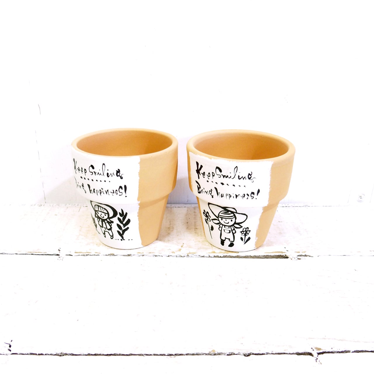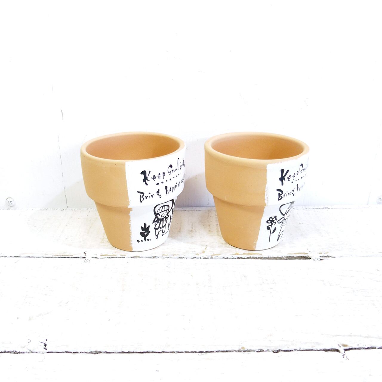 リムの太い可愛い鉢にイラストと文字を入れたアレンジ鉢です♪