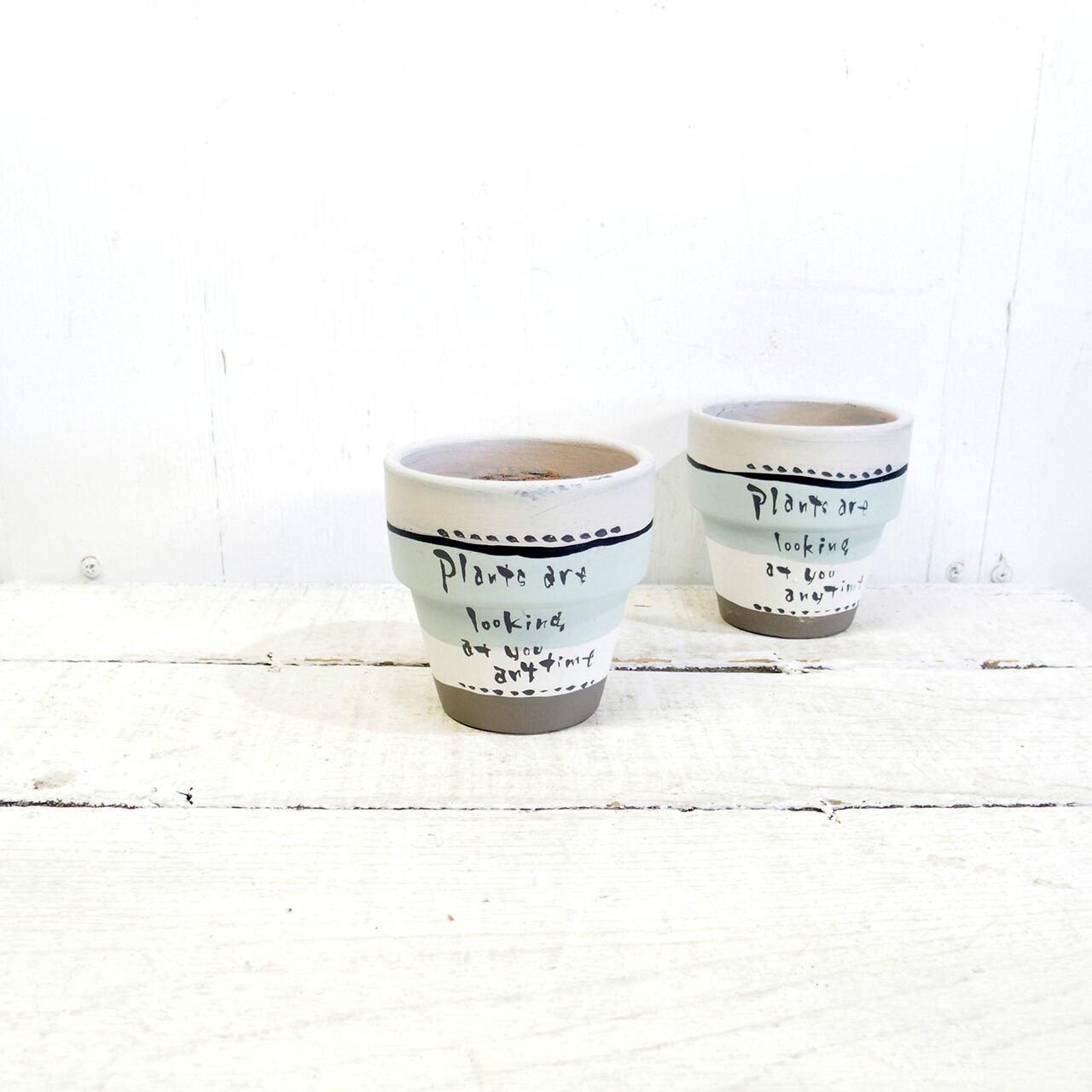 リムの太い可愛い鉢をペイントしたアレンジ鉢です♪