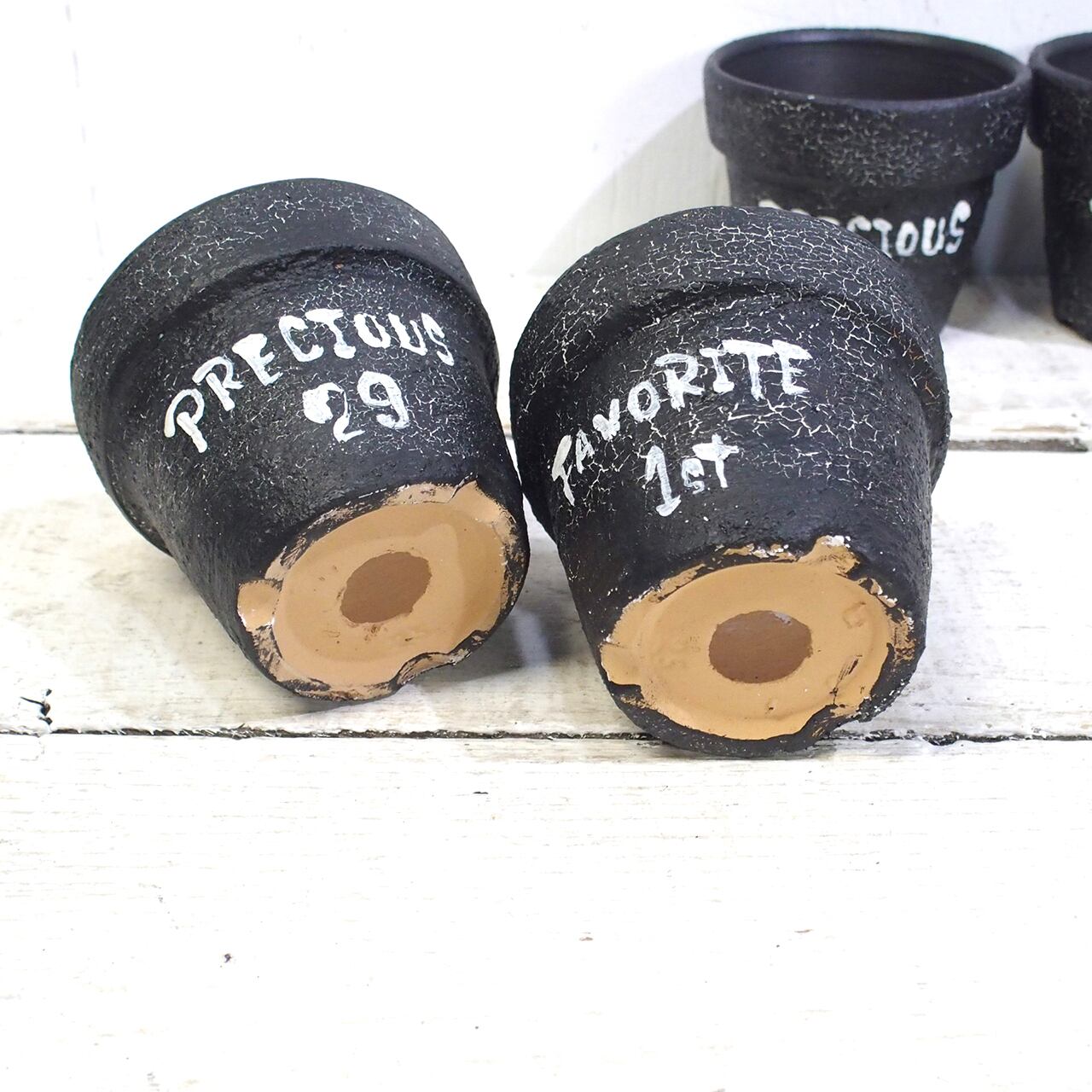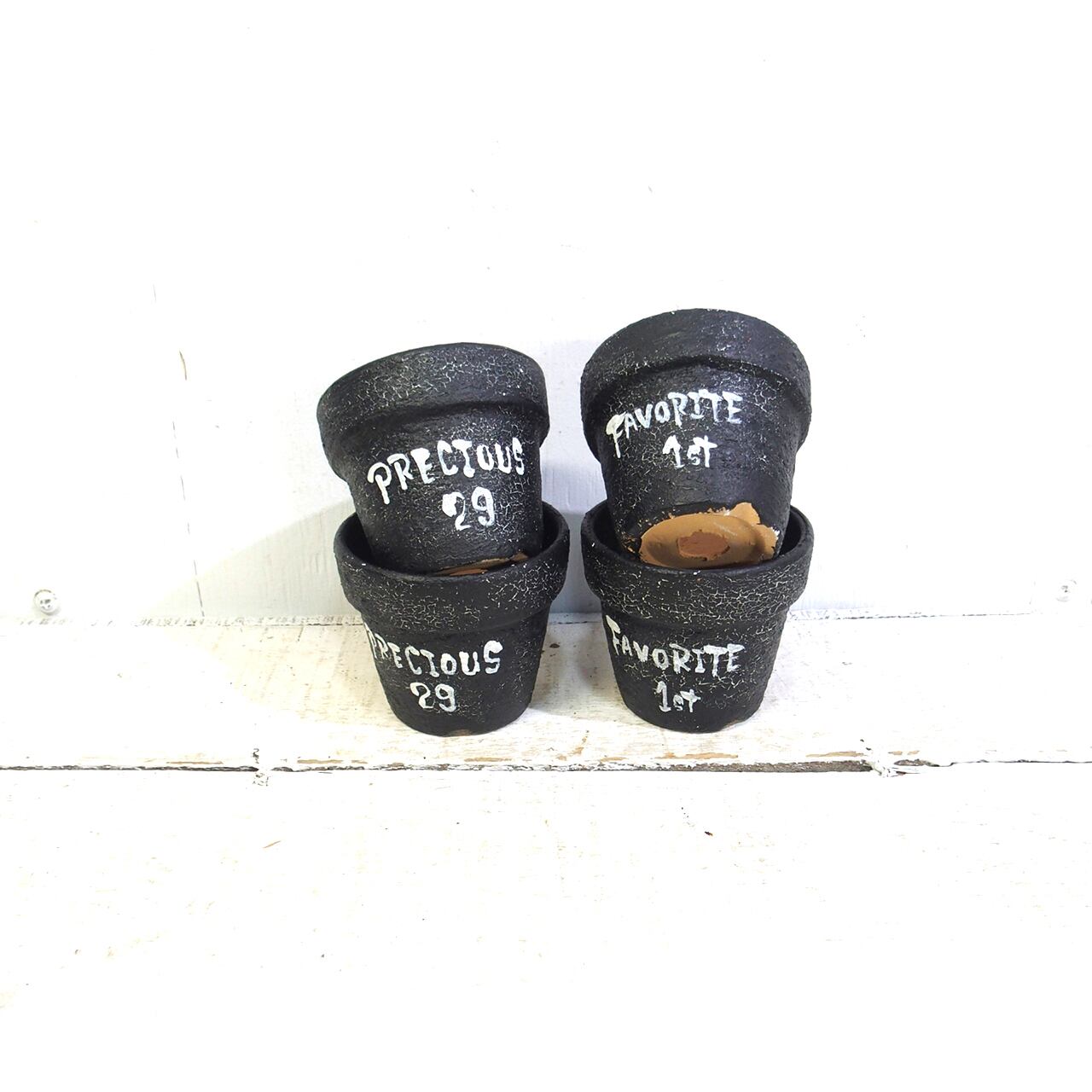 可愛い小さな鉢を渋い大人っぽいクラック塗装しました♪