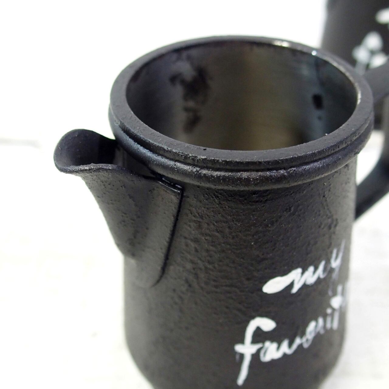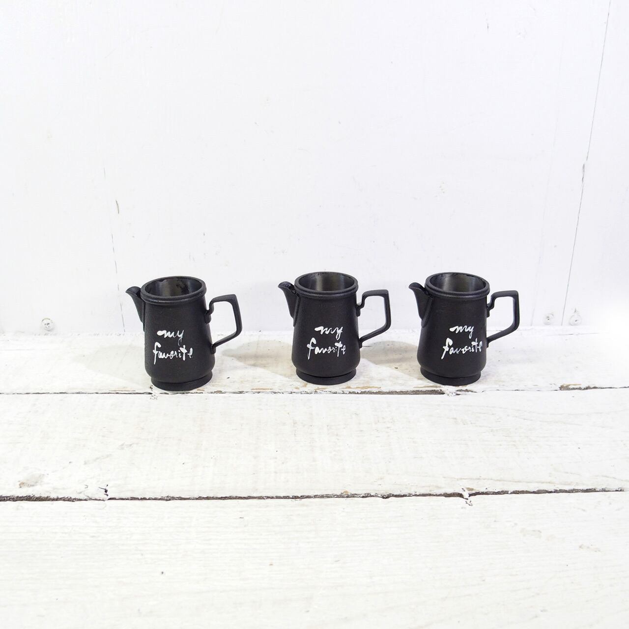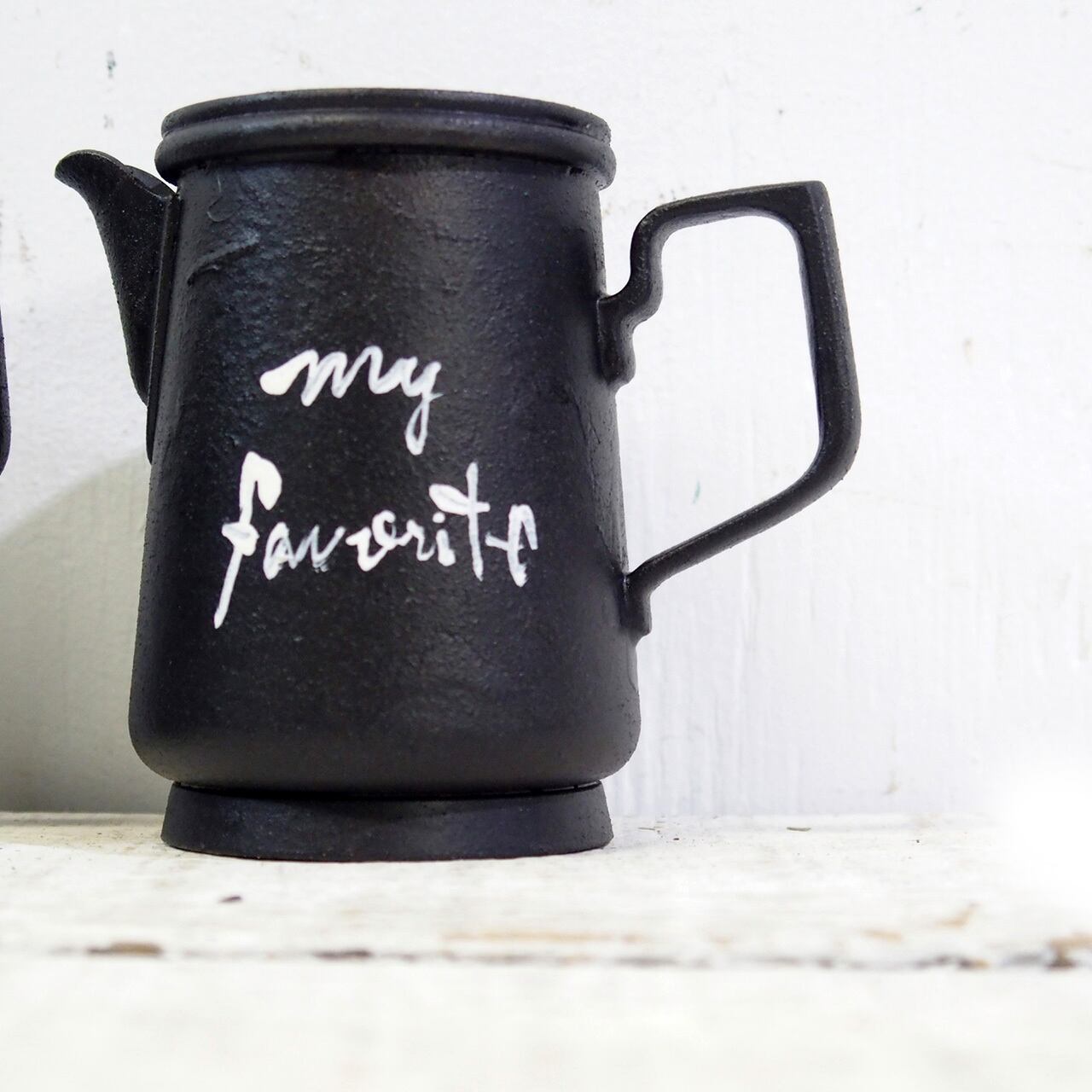 ステンレスの小さなミルクピッチャーをアイアンペイントし文字を入れてみました♪