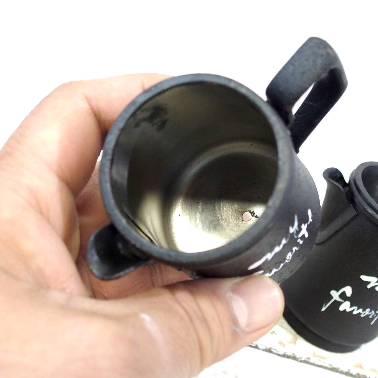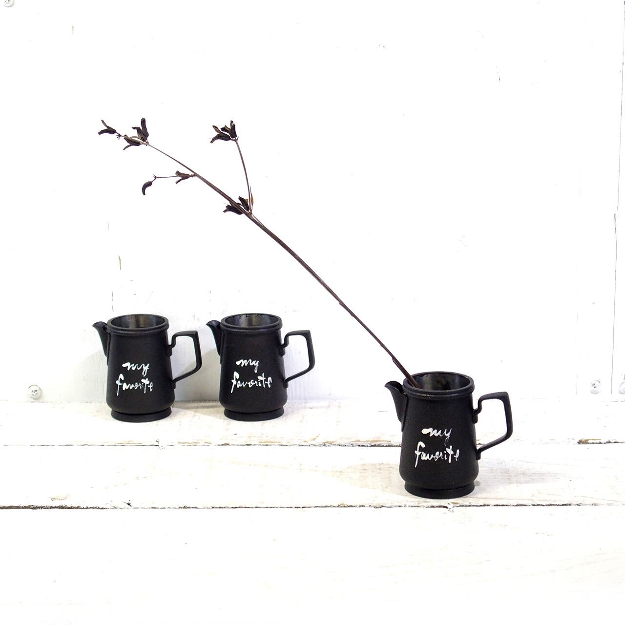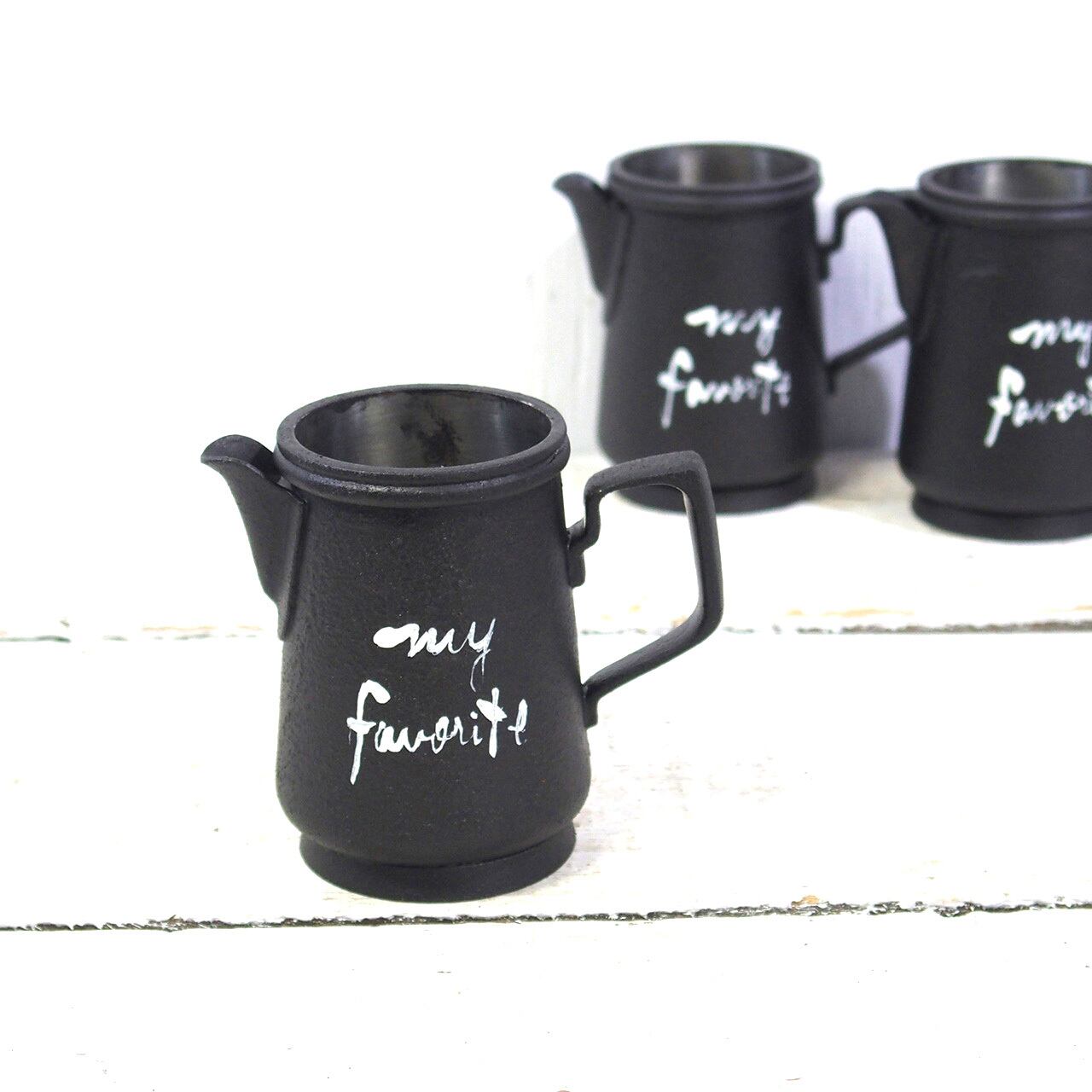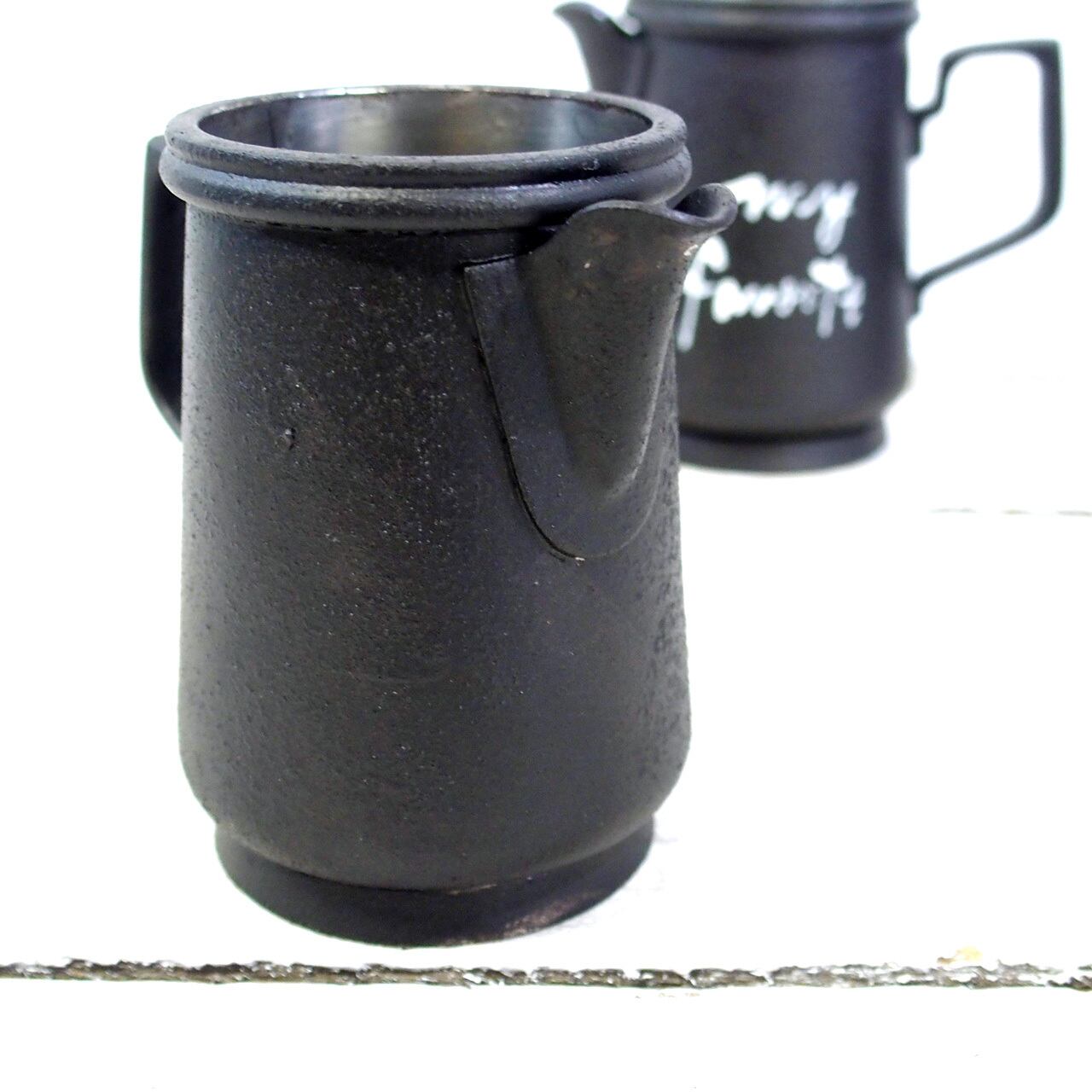 ステンレスの小さなミルクピッチャーをアイアンペイントし文字を入れてみました♪