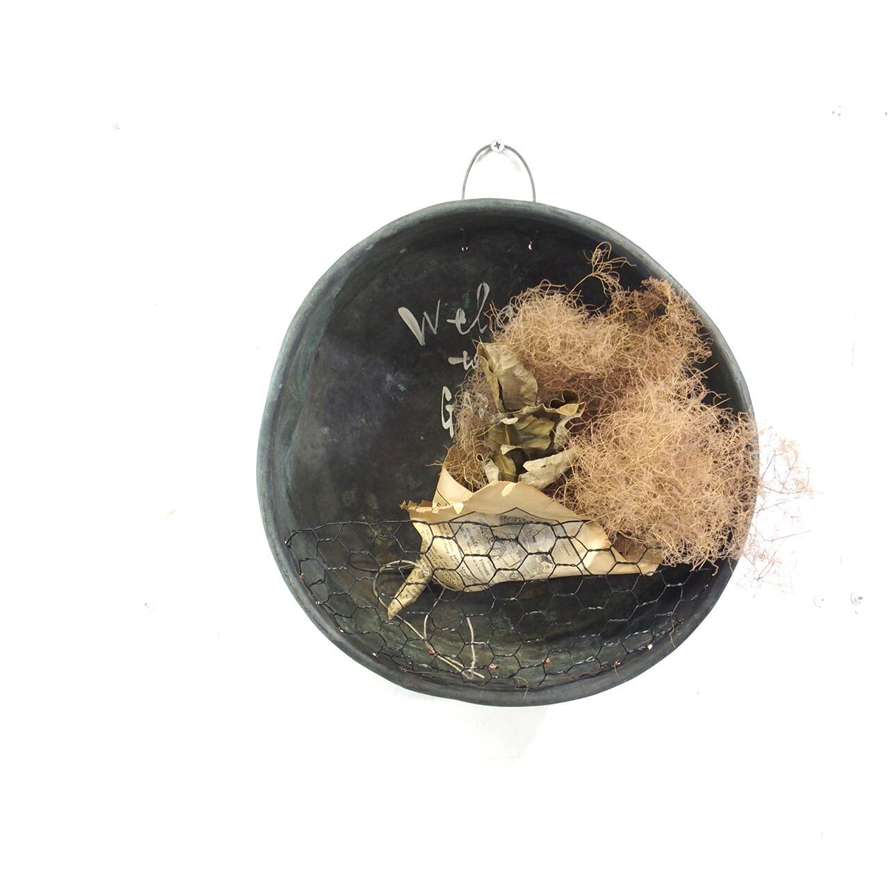 【リメイク古道具】ケーキ型ハンギングプランター ネット付き