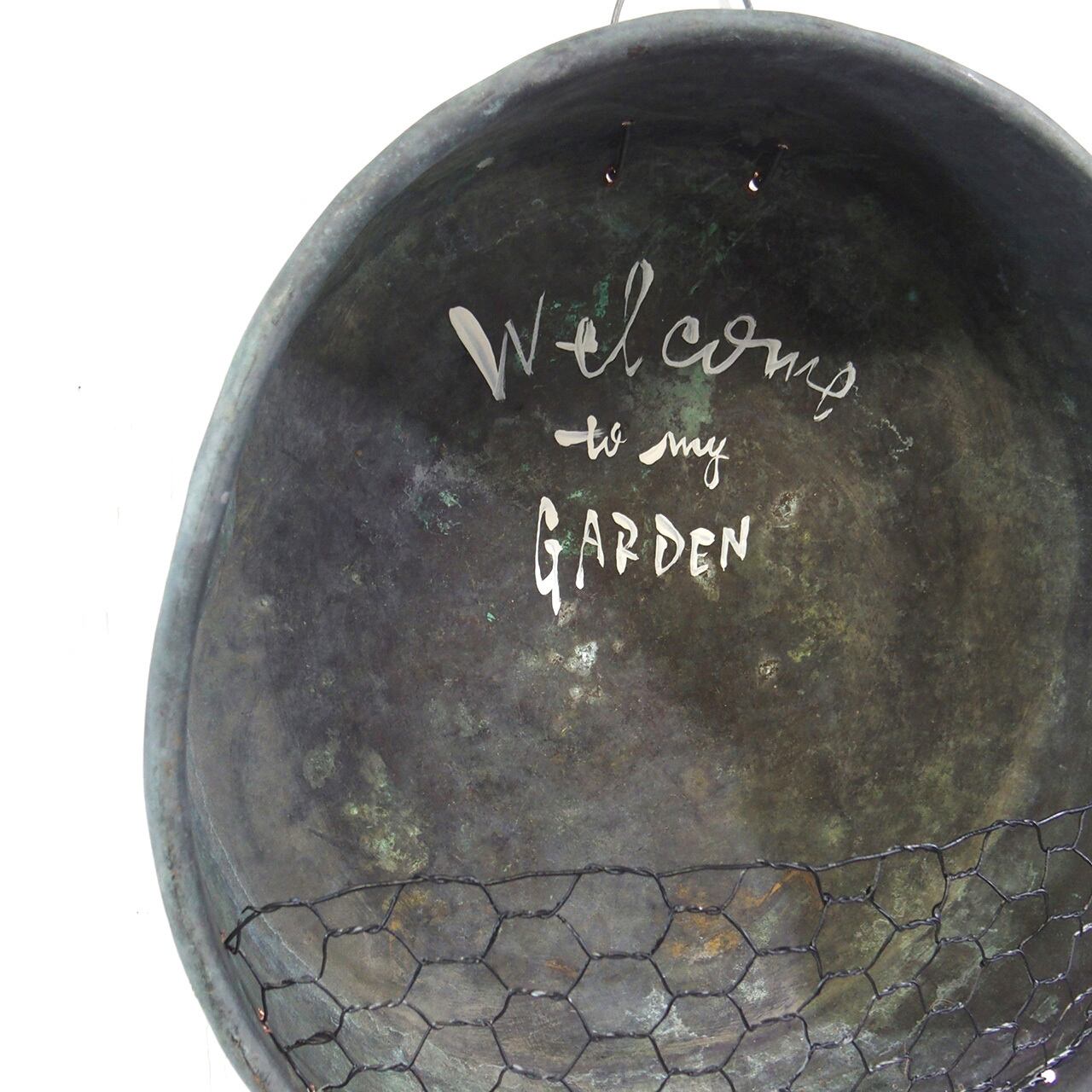 銅製のケーキの型にネットを取り付けたハンギングプランターです♪