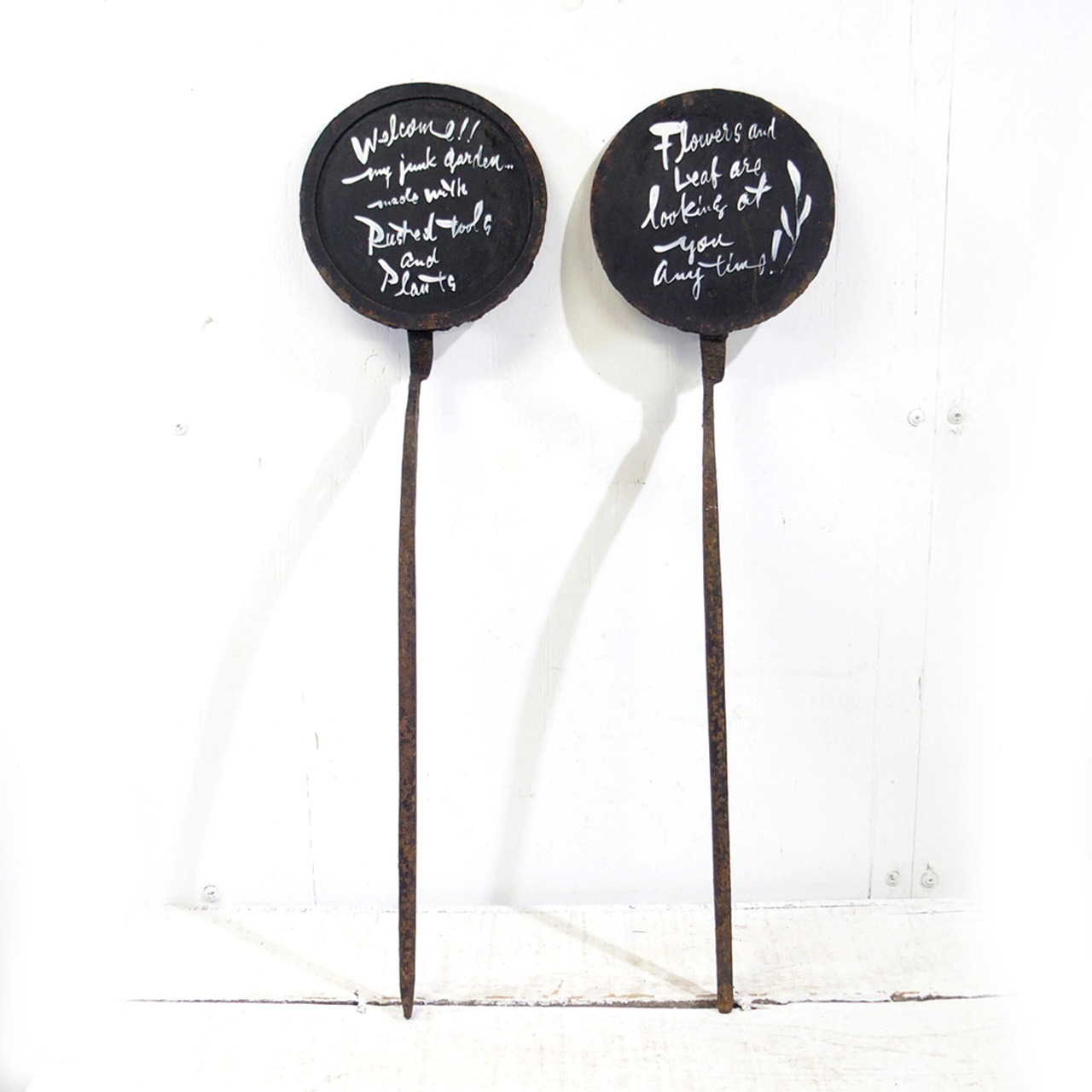 【リメイク古道具】せんべい焼き機のガーデンサイン
