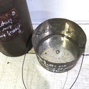 古いお茶缶に文字入れたアレンジ商品です♪