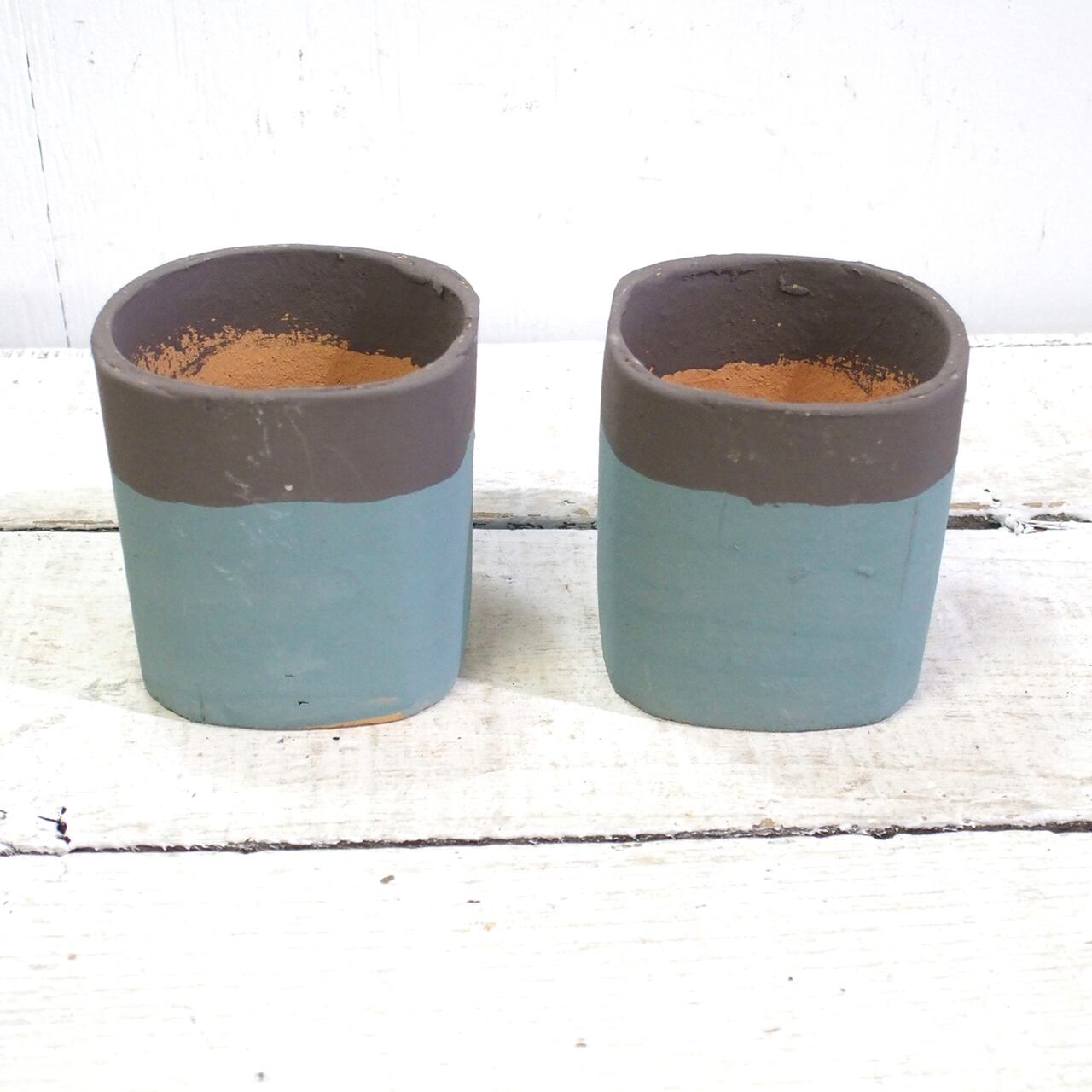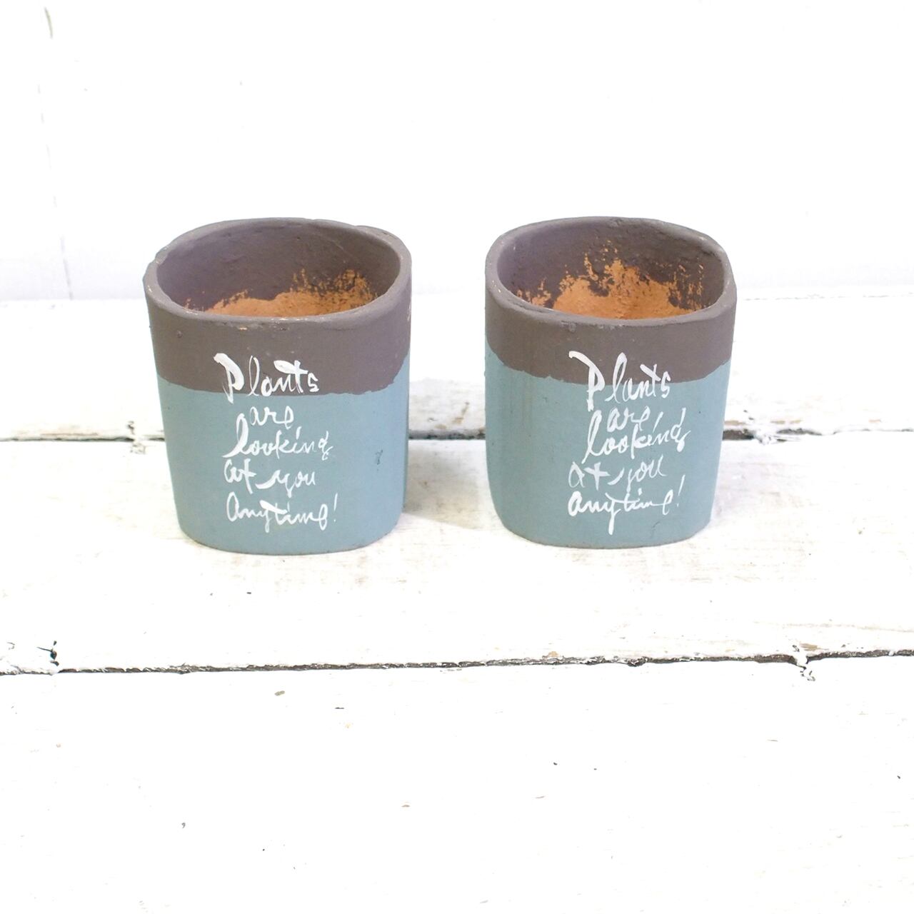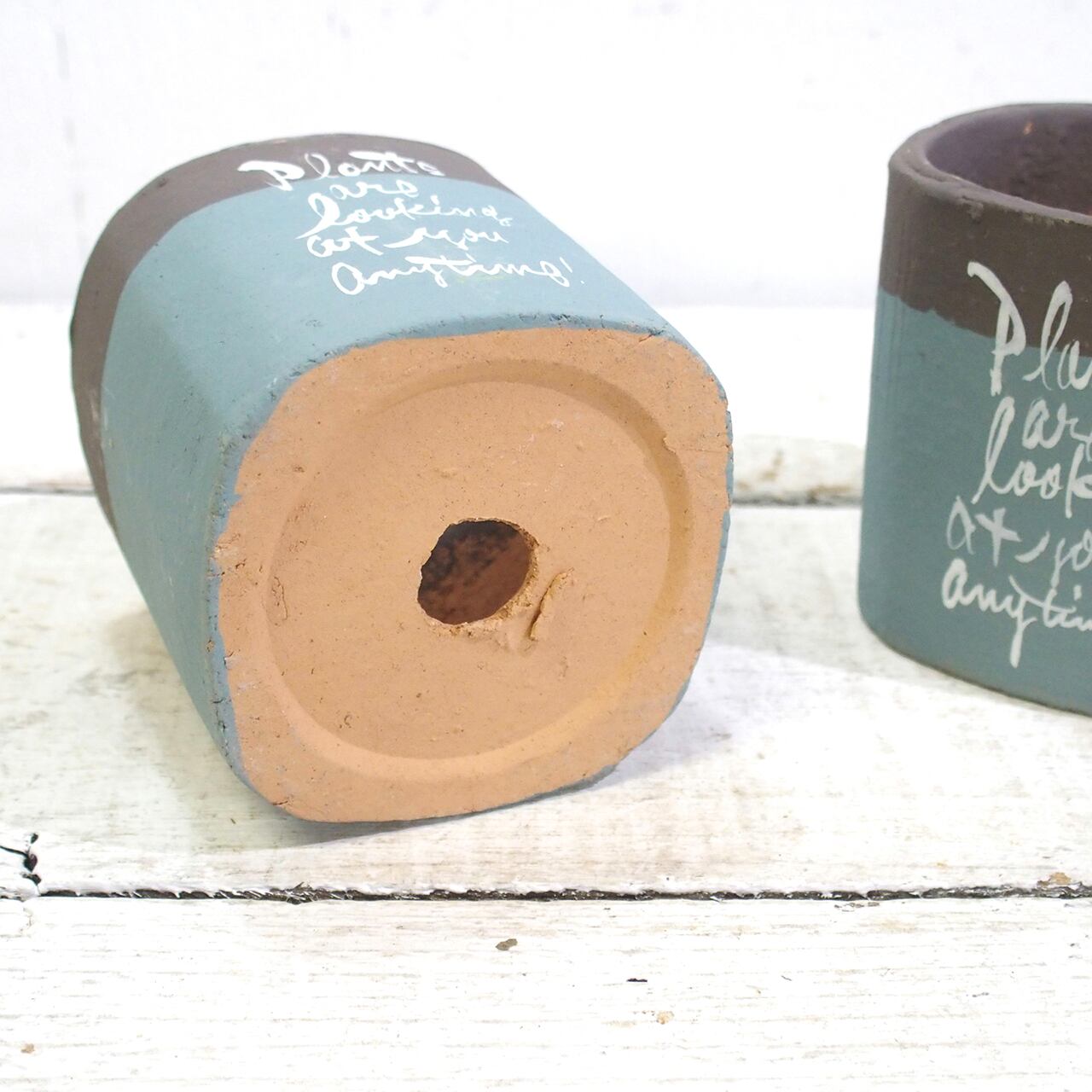【リメイク鉢】四角2.5号アレンジ鉢 ココア×ターコイズ