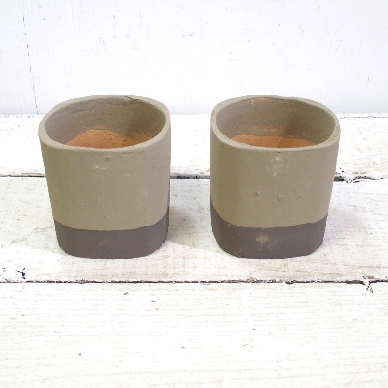 【リメイク鉢】四角2.5号アレンジ鉢 オーカー×ココア