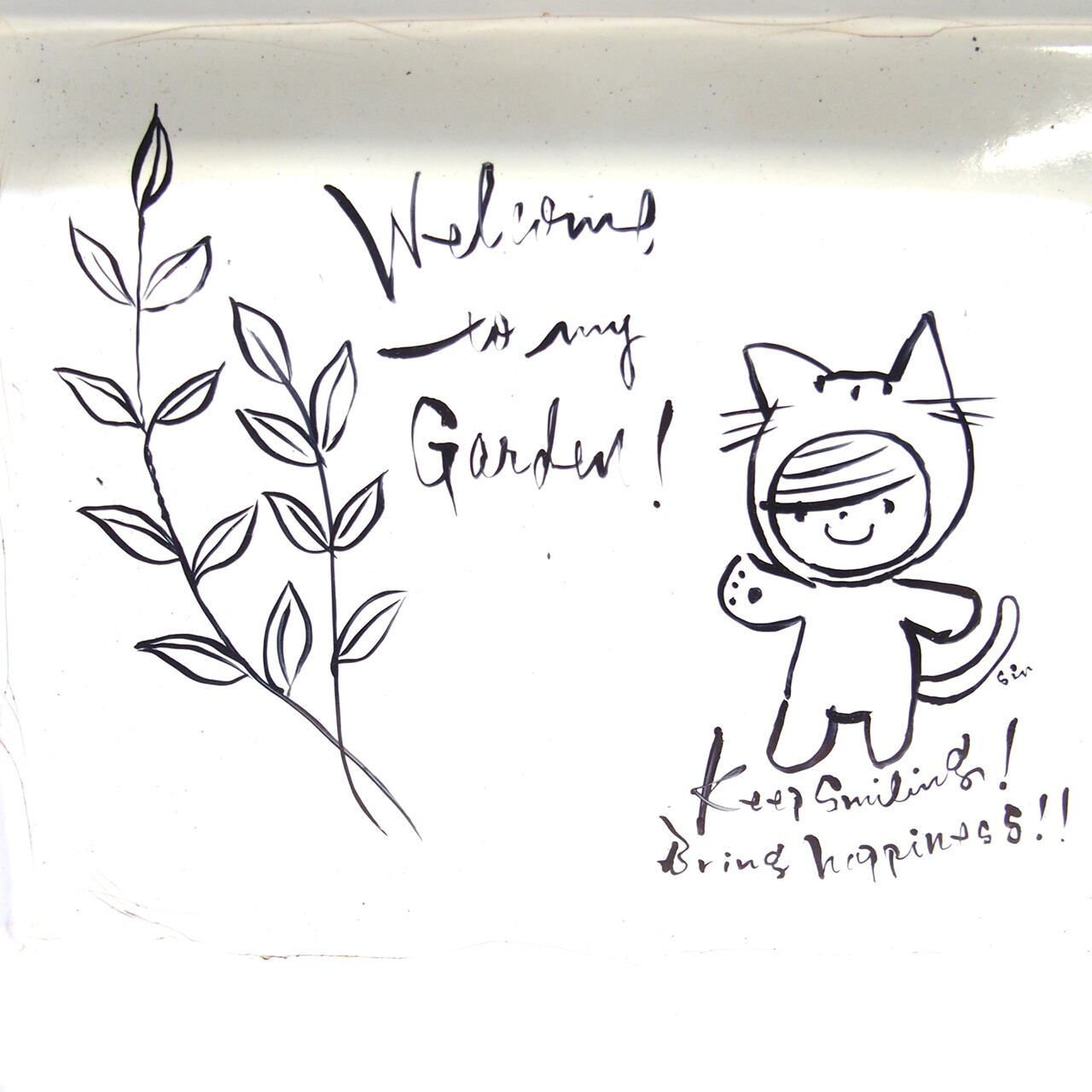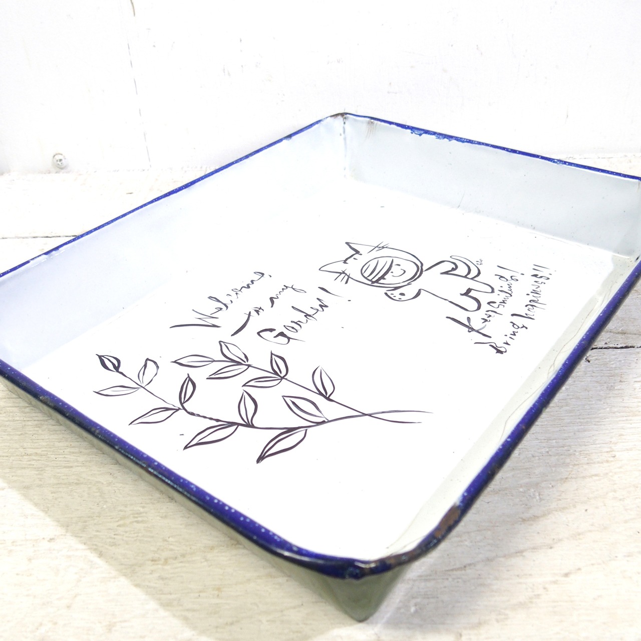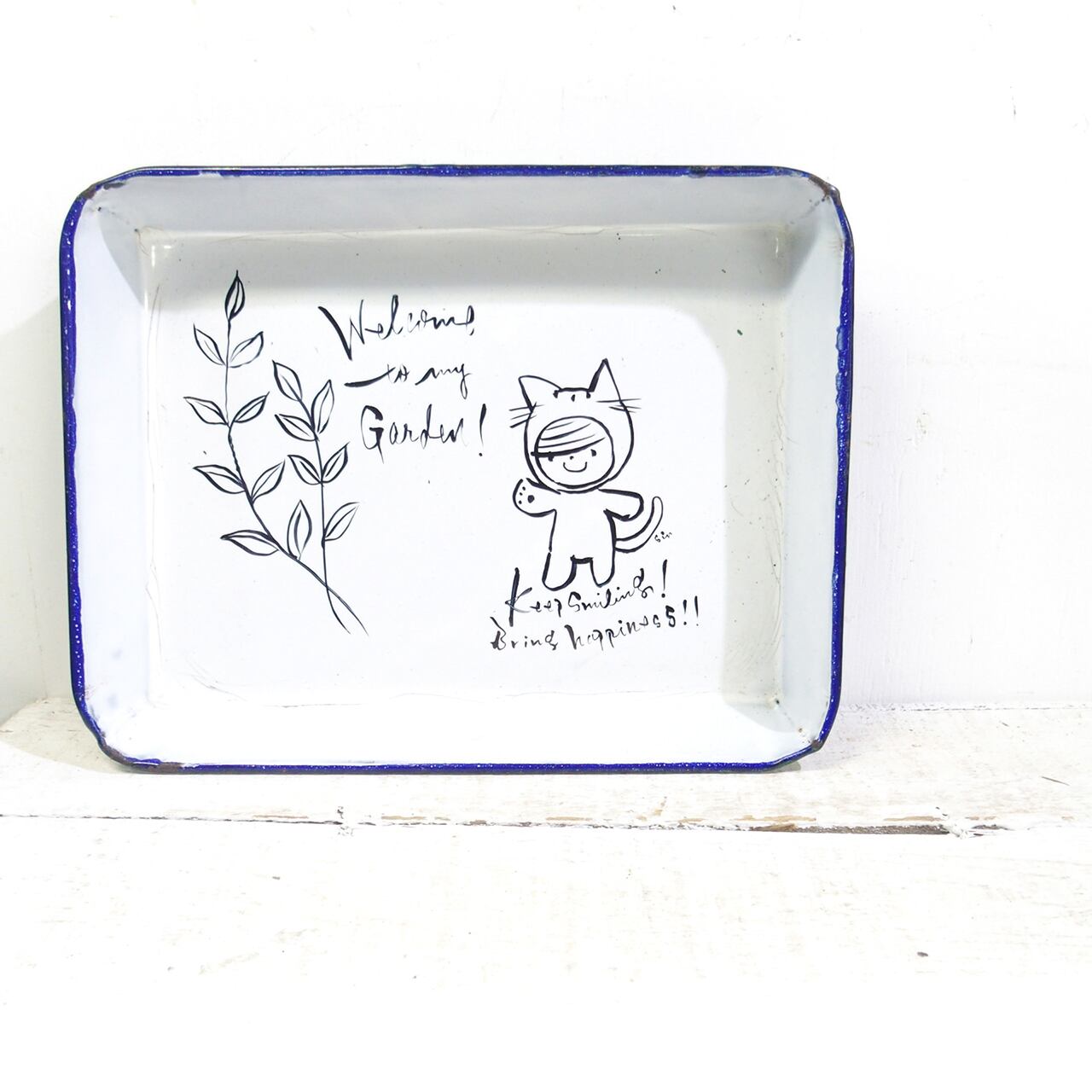 ホーローのバットに文字とイラストを入れたアレンジ作品です♪