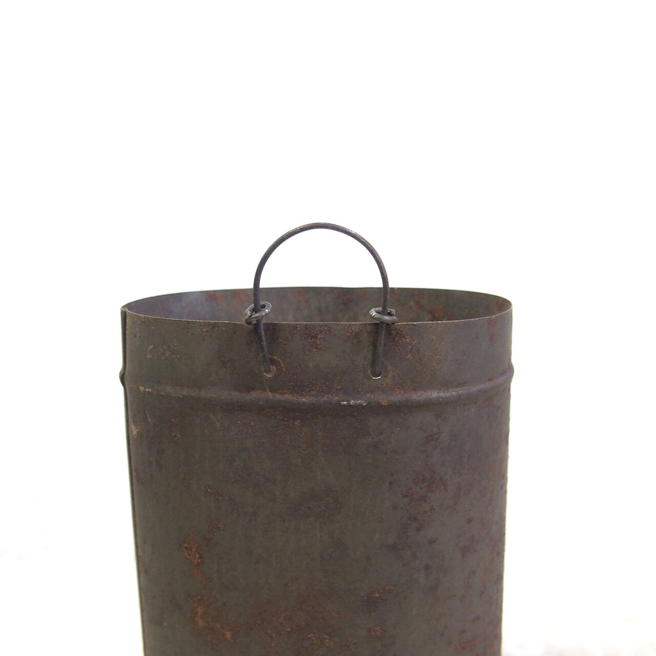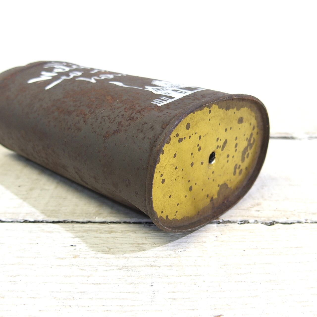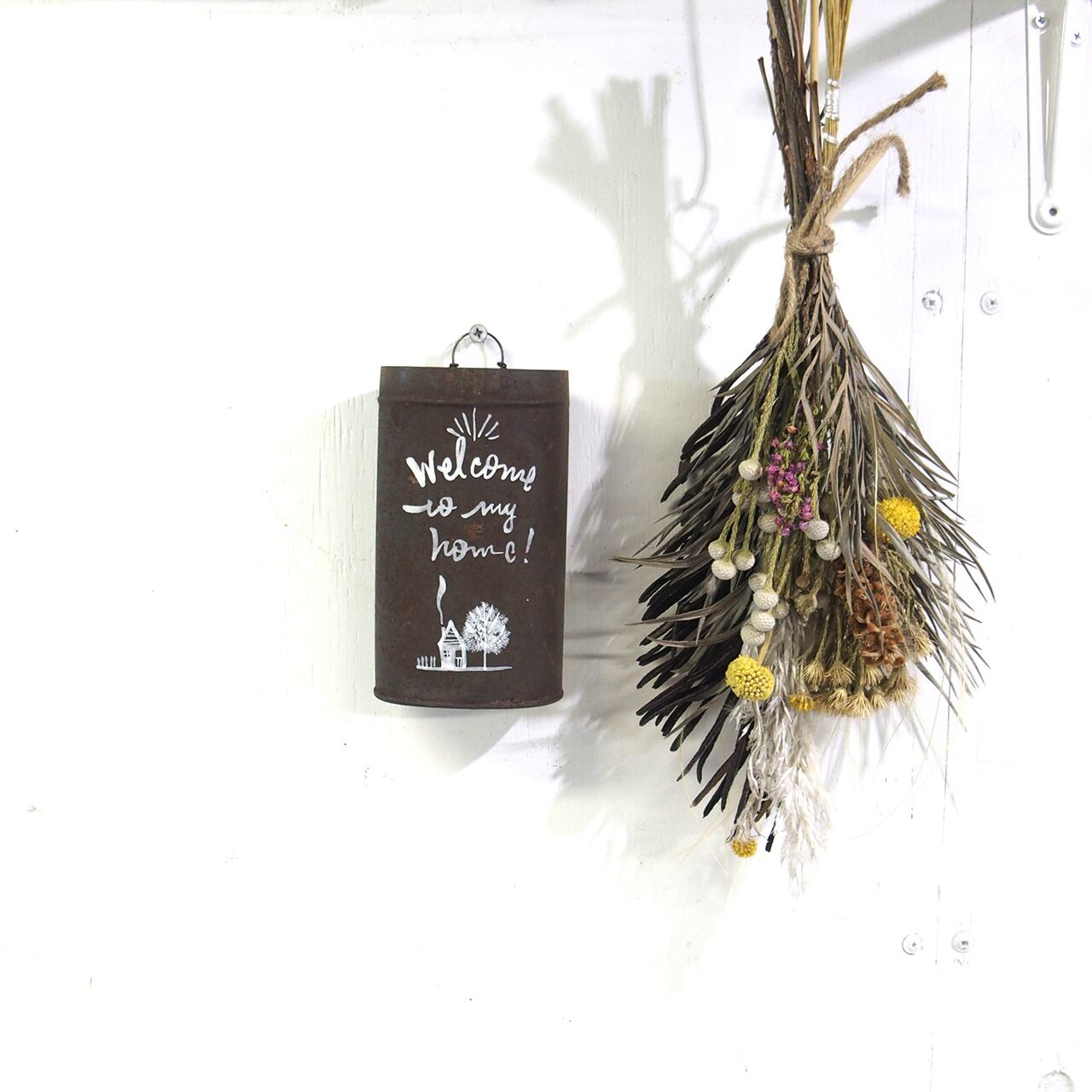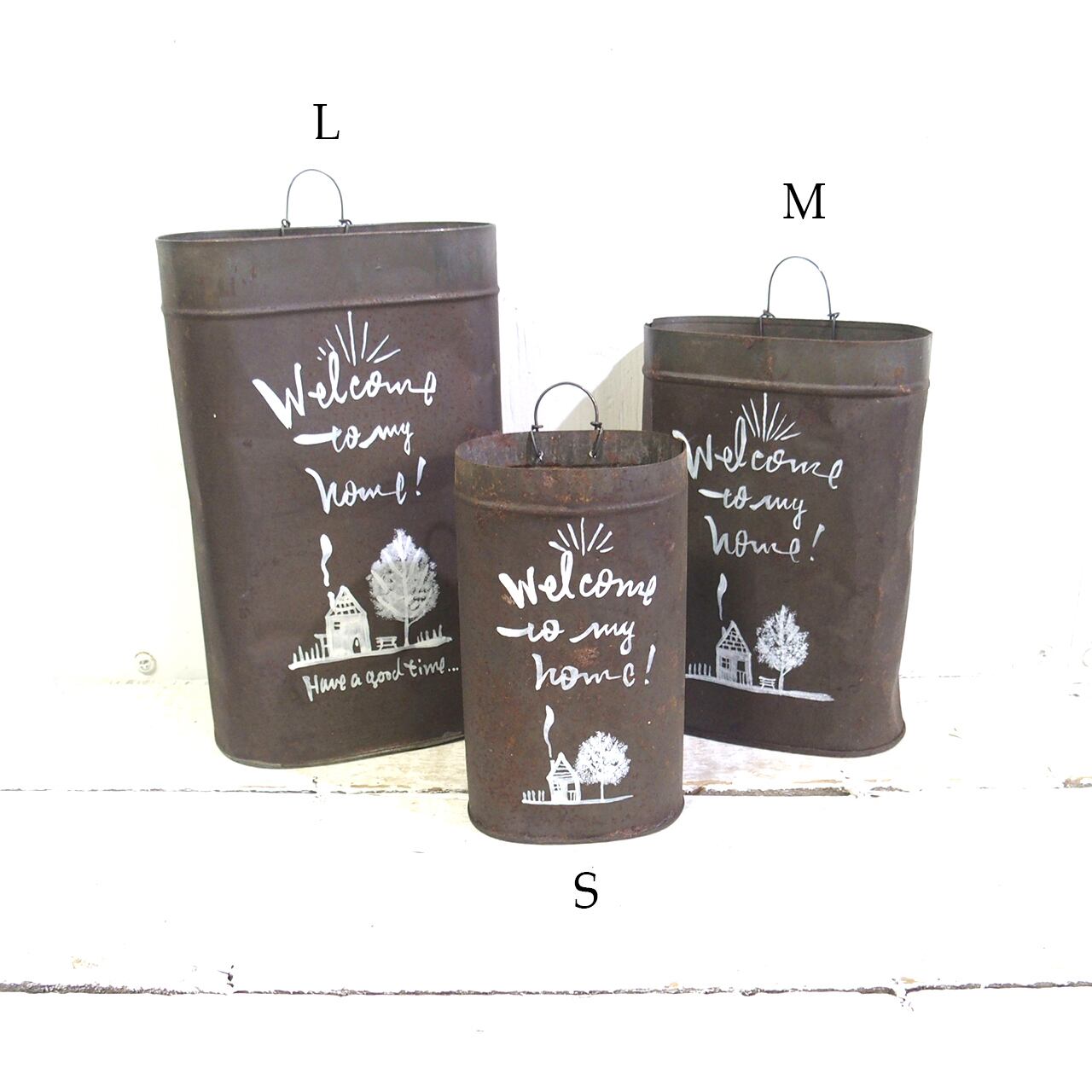 楕円形のサビサビの缶に絵と文字入れたプランターです♪