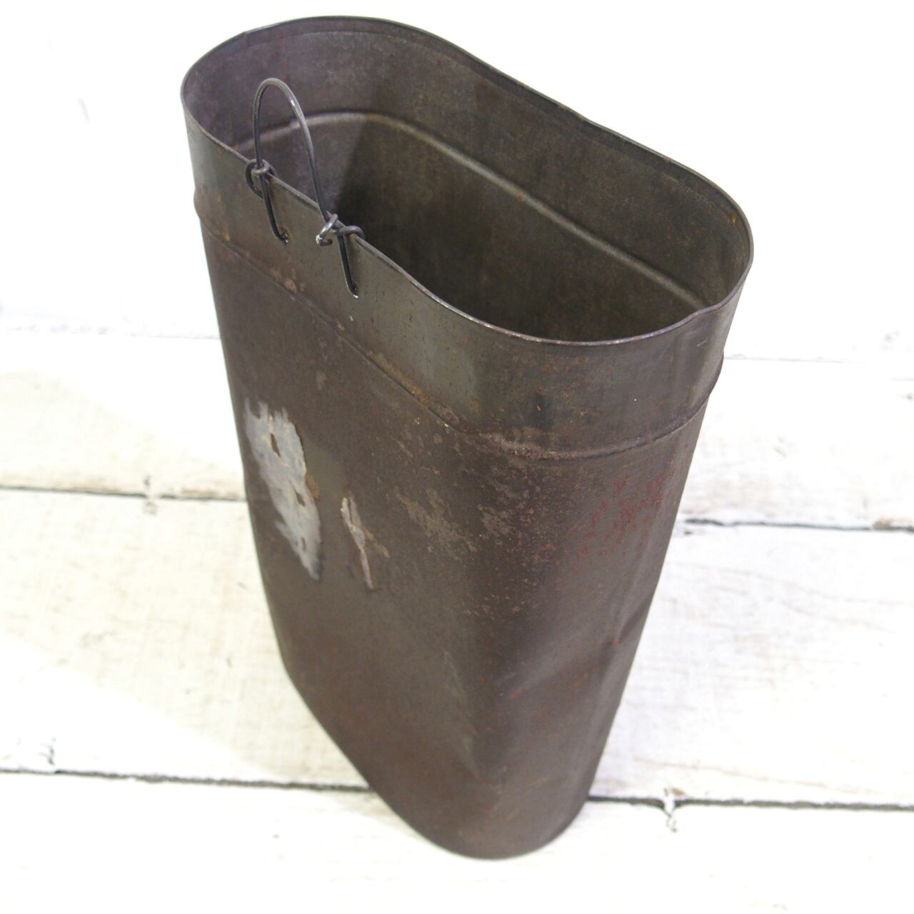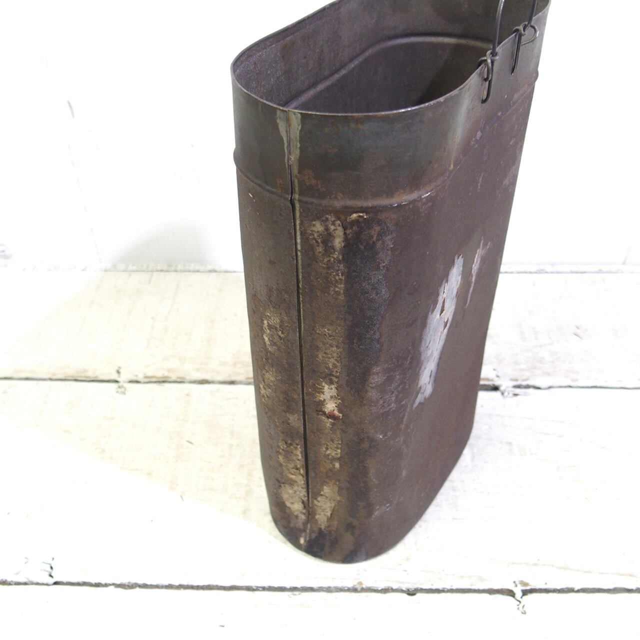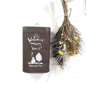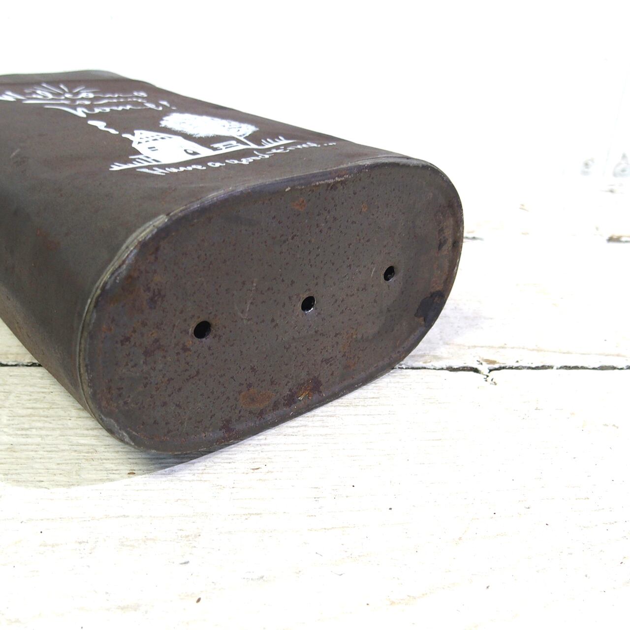 楕円形のサビサビの缶に絵と文字入れたプランターです♪
