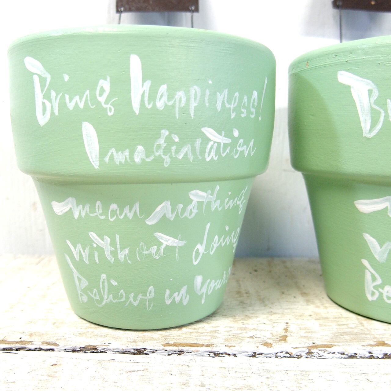 リムの太い可愛い鉢に文字を入れたアレンジ鉢です♪