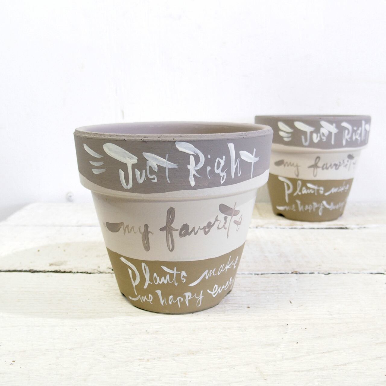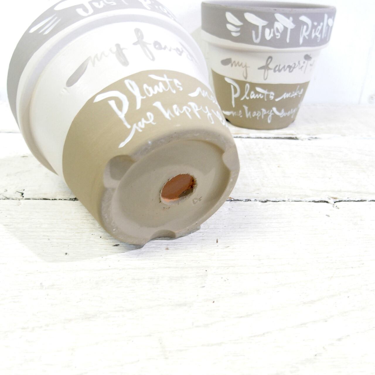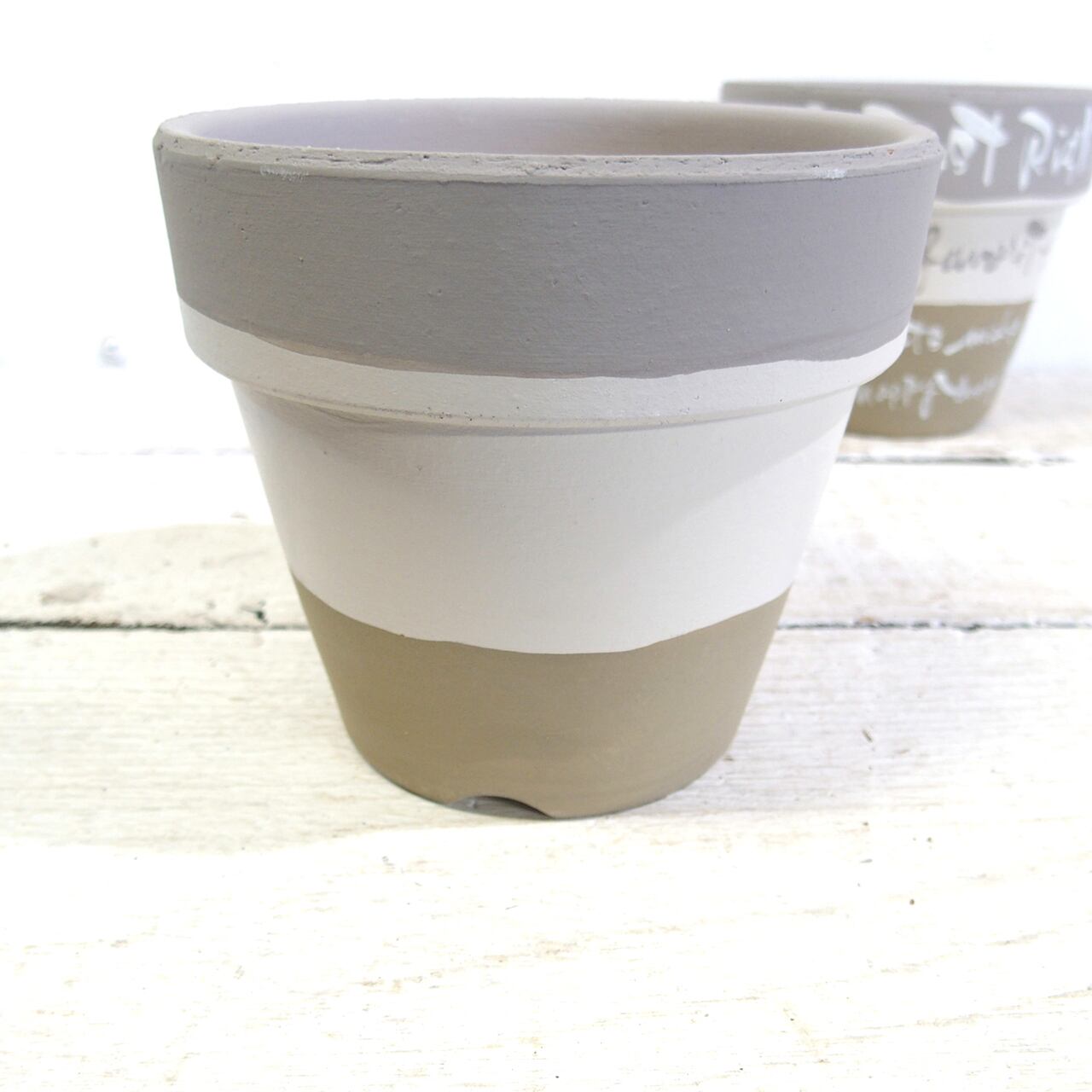 ナチュラルなボーダー柄にペイントした4号鉢です♪