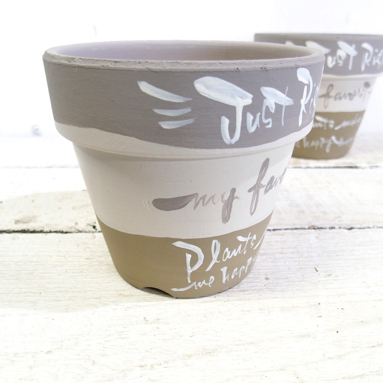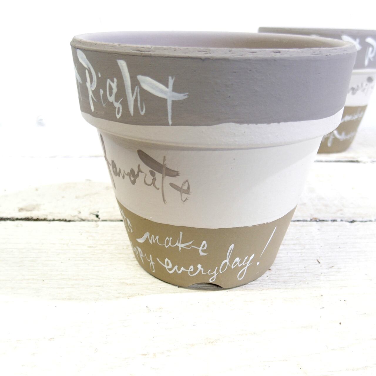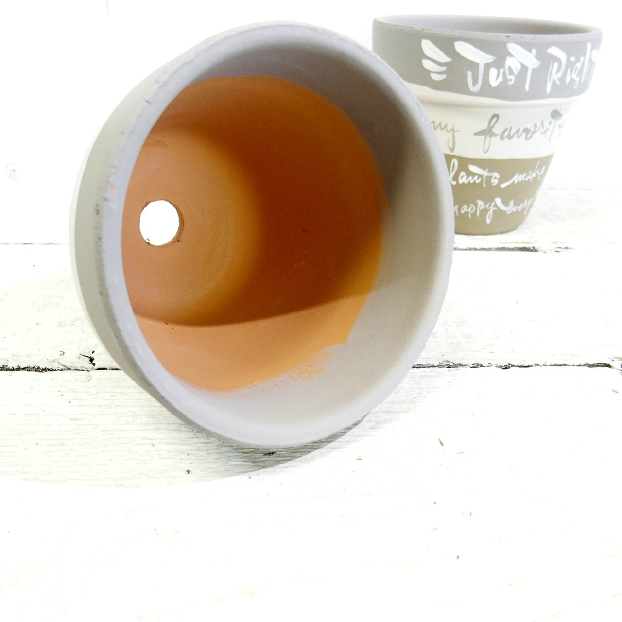 ナチュラルなボーダー柄にペイントした4号鉢です♪