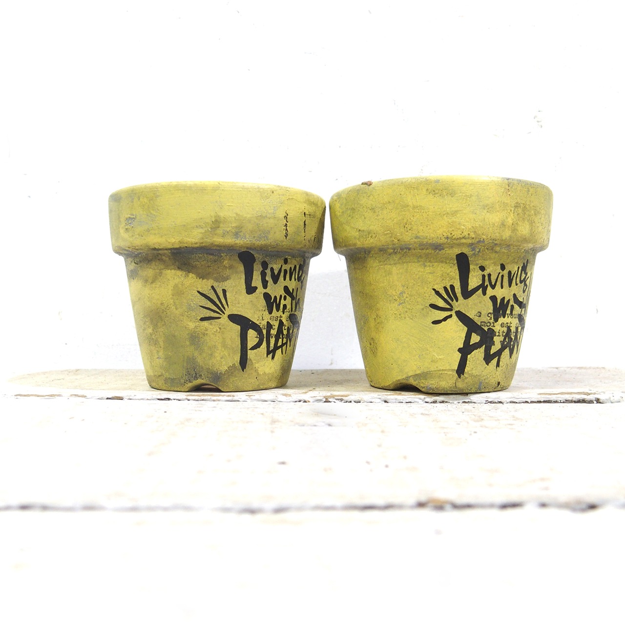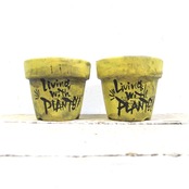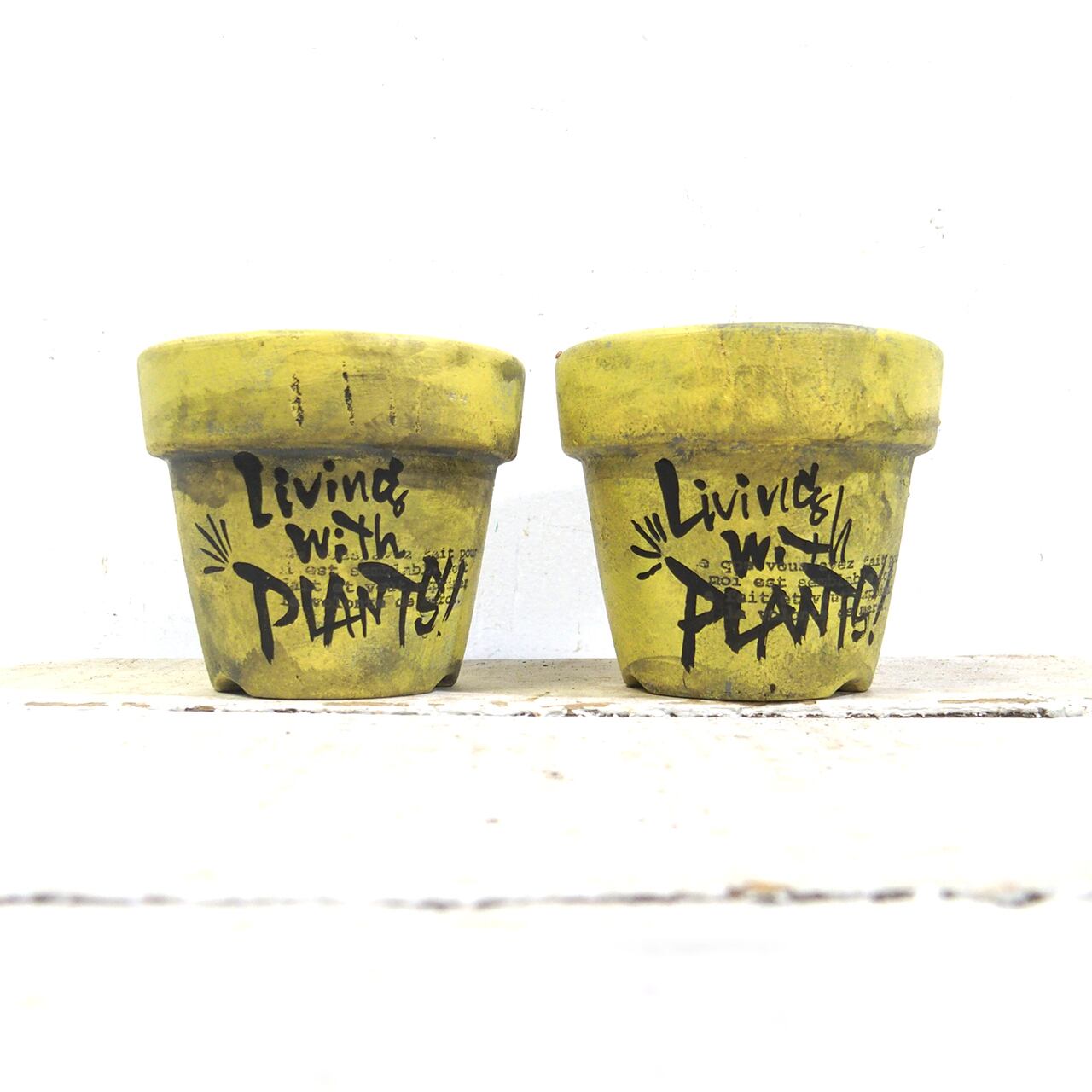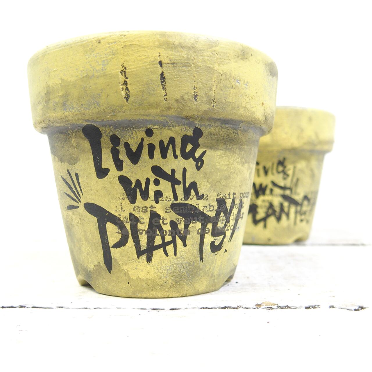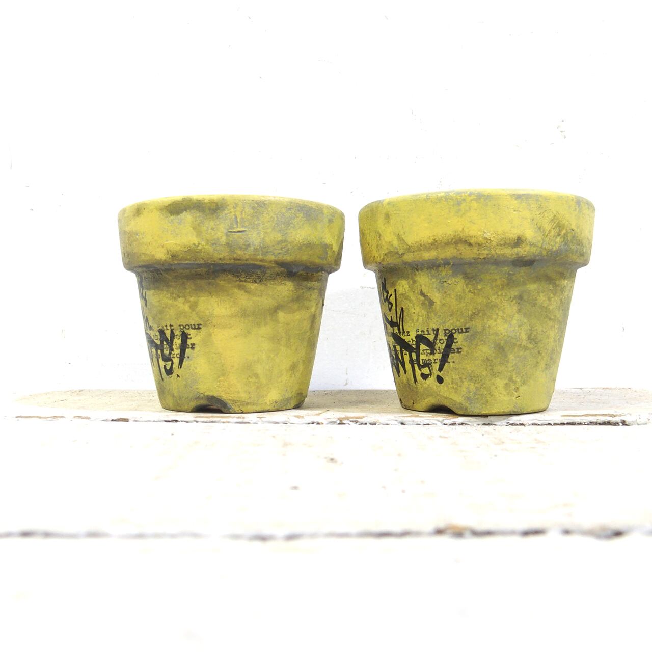 【リメイク鉢】2.5号丸鉢 路地裏風ペイント YE