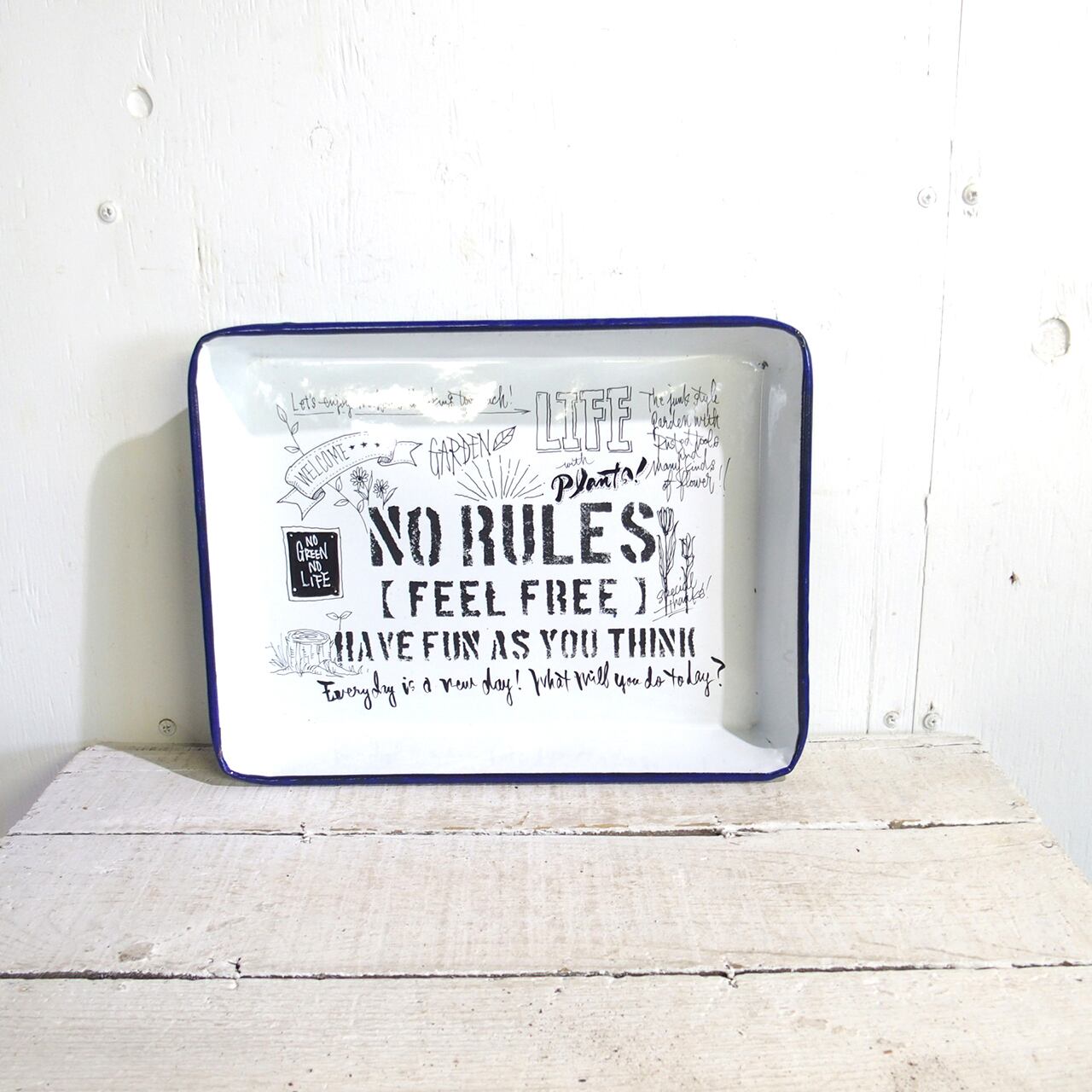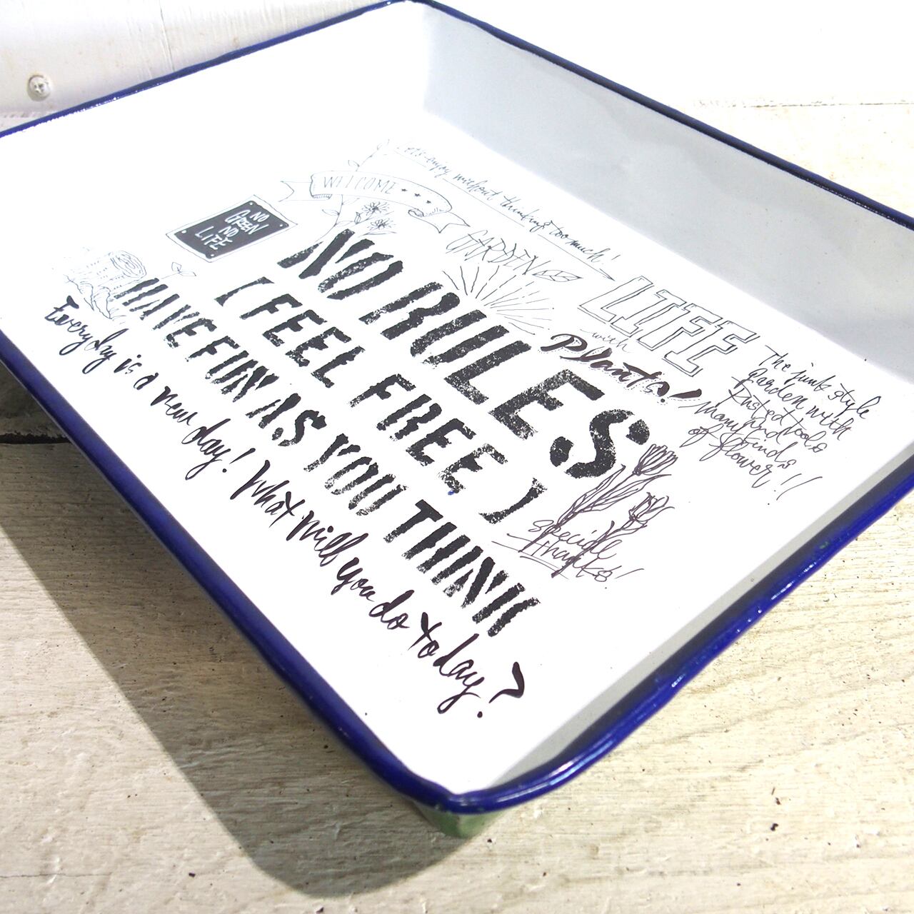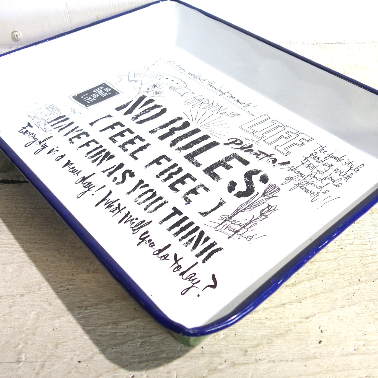 ホーローのバットに文字とイラストを入れたアレンジ作品です♪