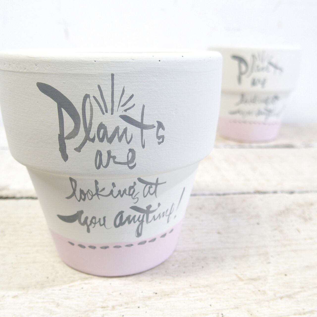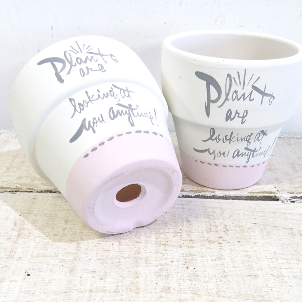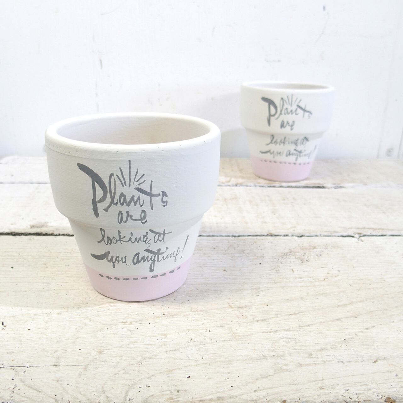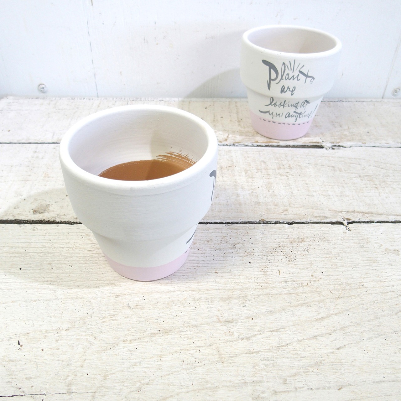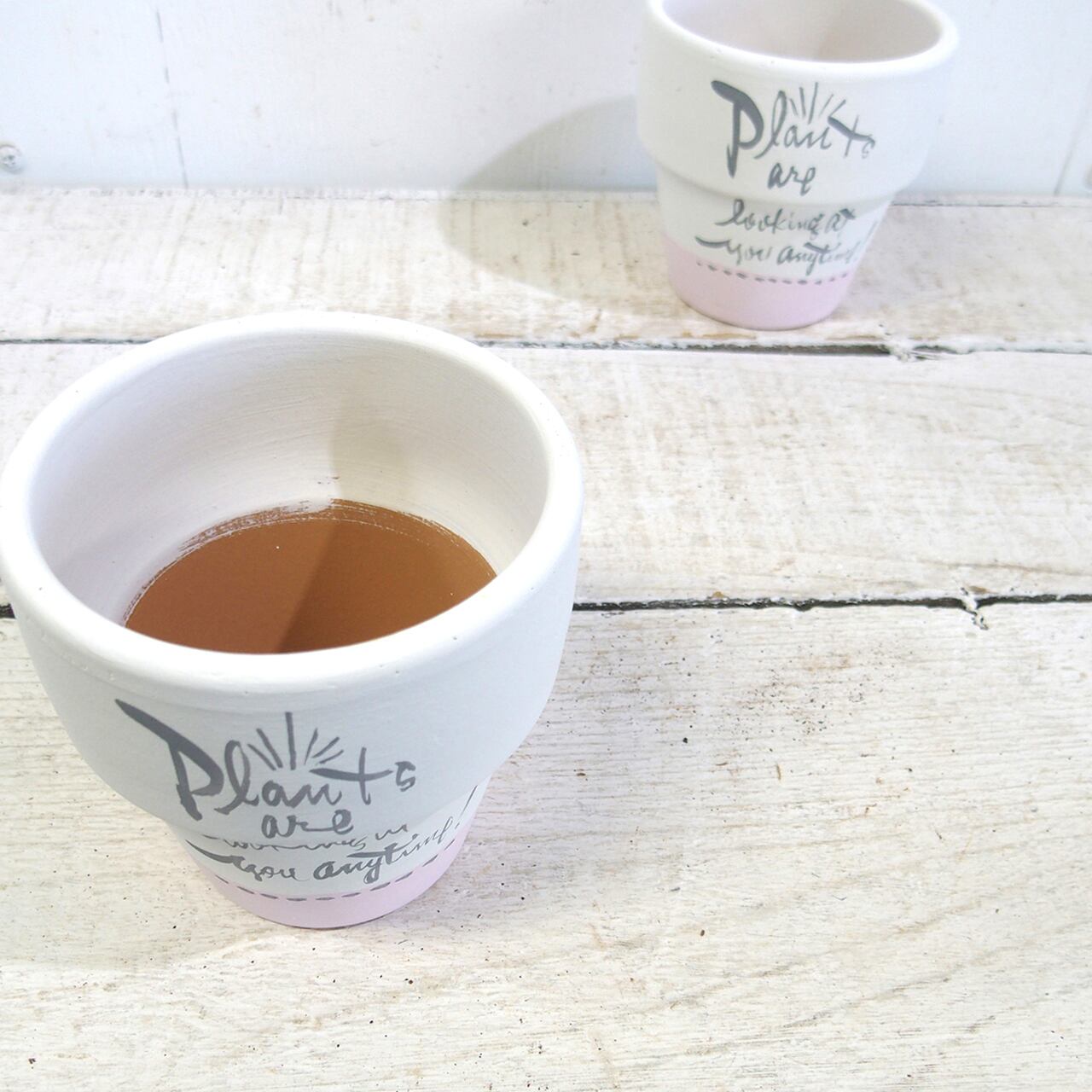 リムの太い可愛い鉢をペイントして文字を入れたアレンジ鉢です♪