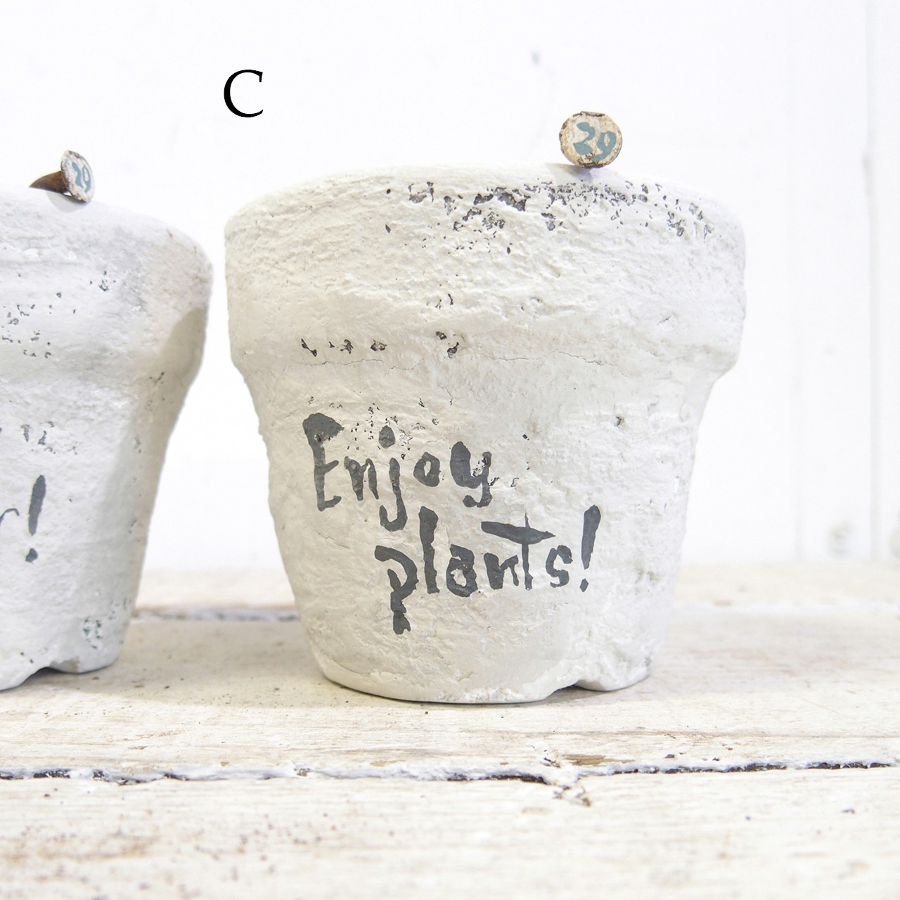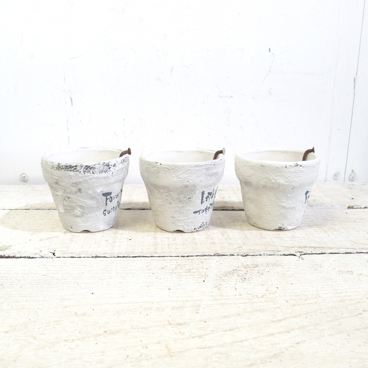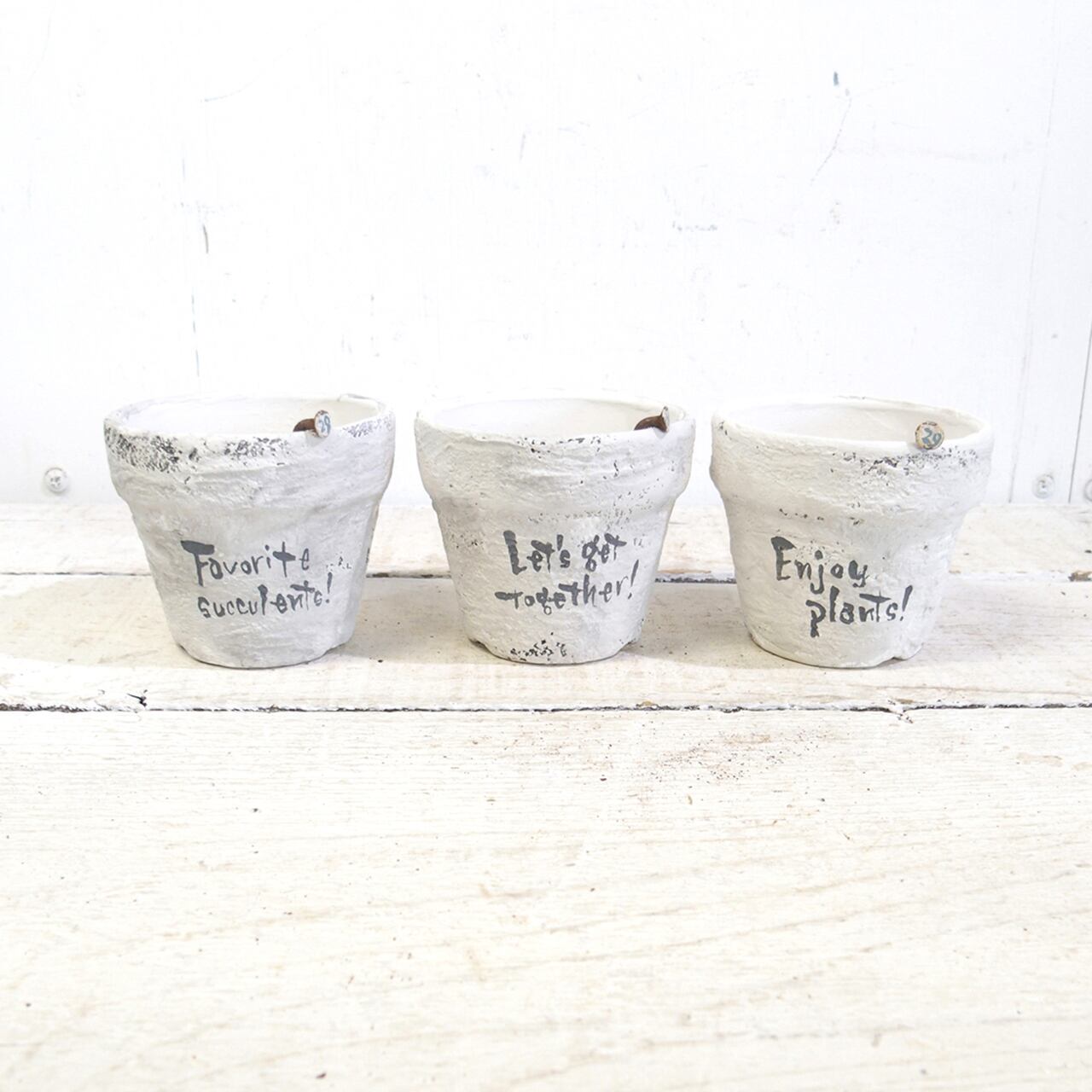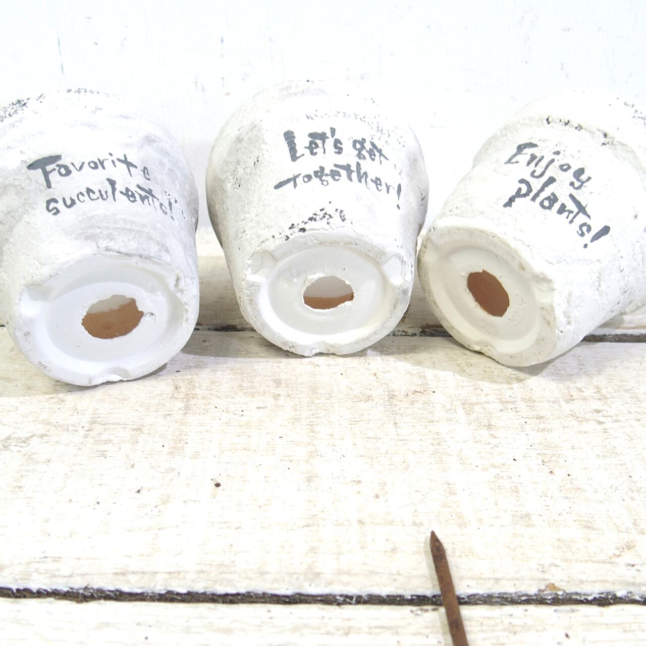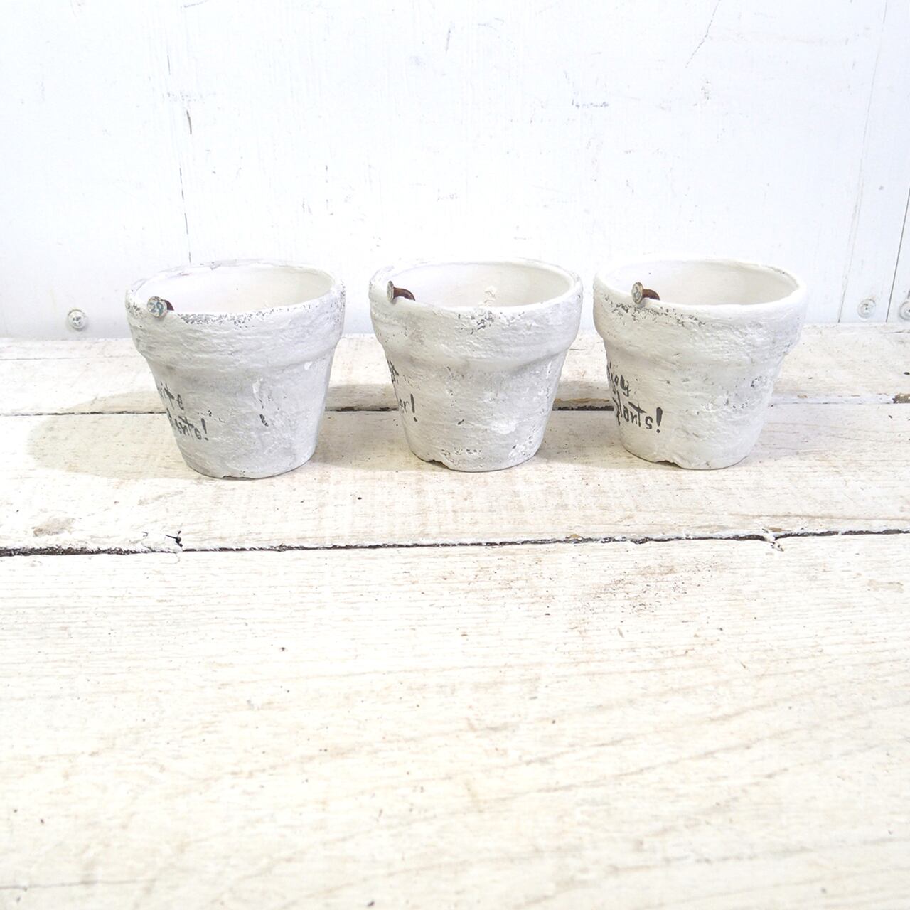 【リメイク鉢】2.5号丸鉢 漆喰壁風ペイント 肉ピック付き