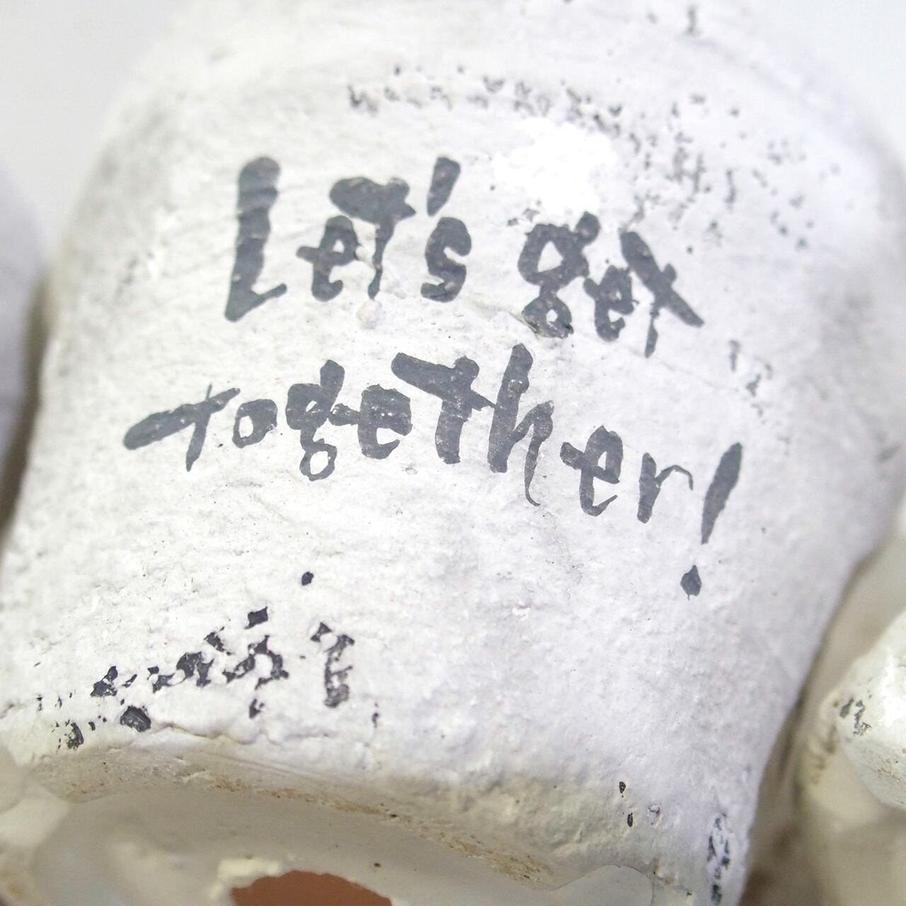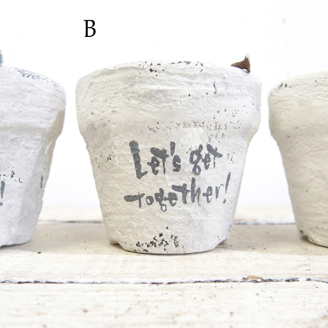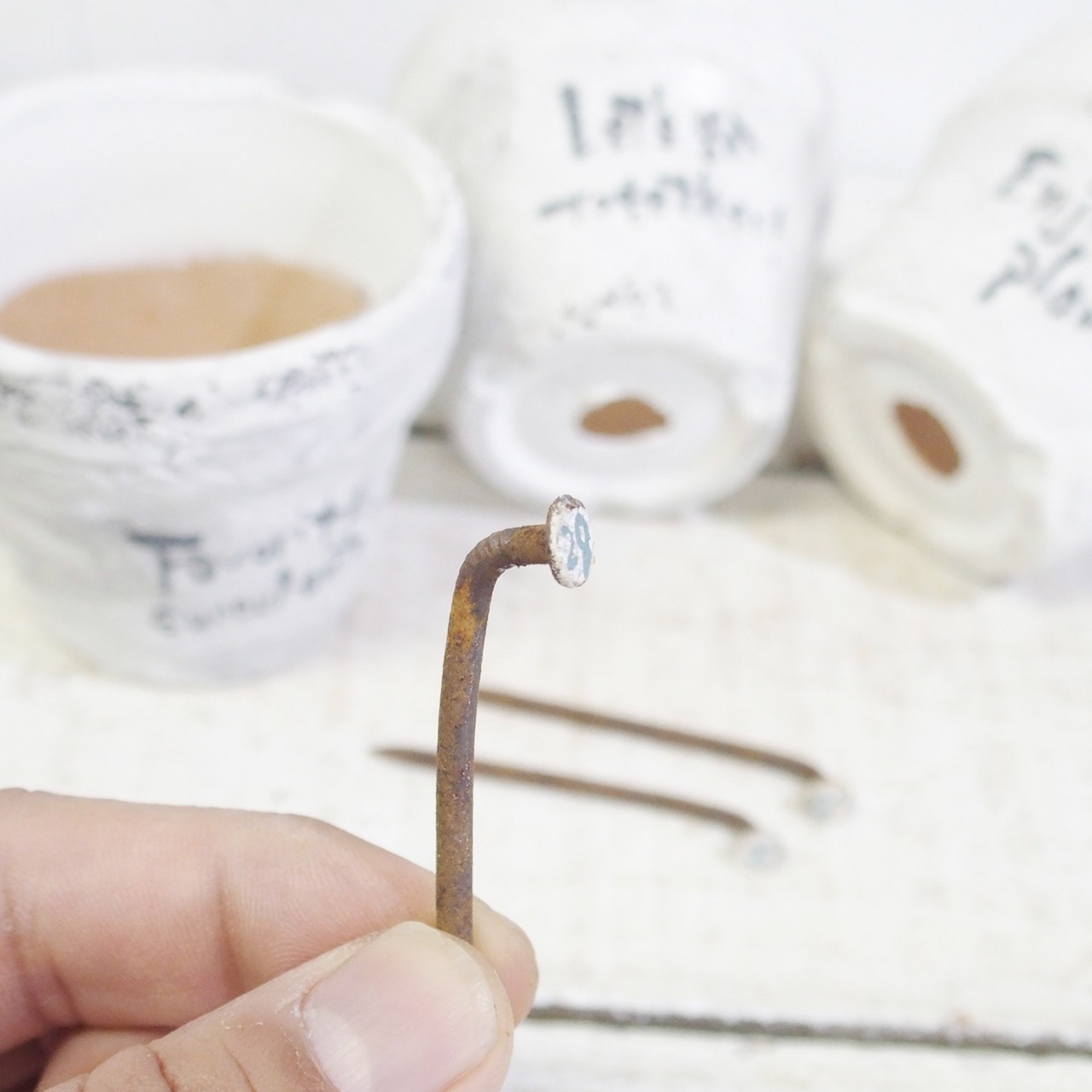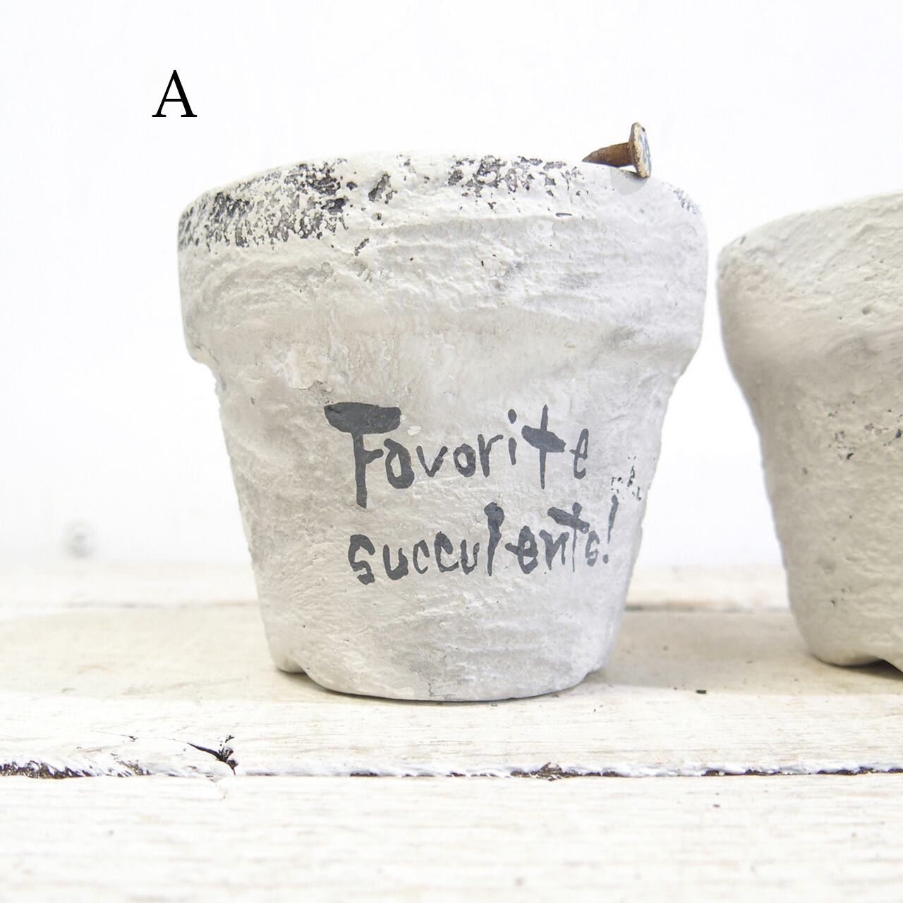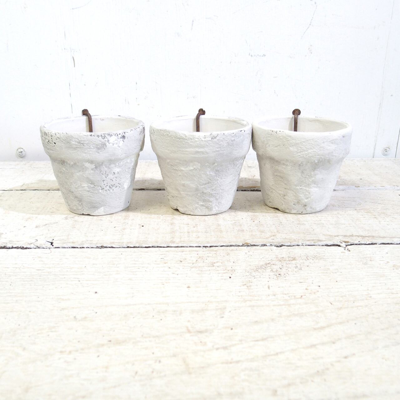 【リメイク鉢】2.5号丸鉢 漆喰壁風ペイント 肉ピック付き