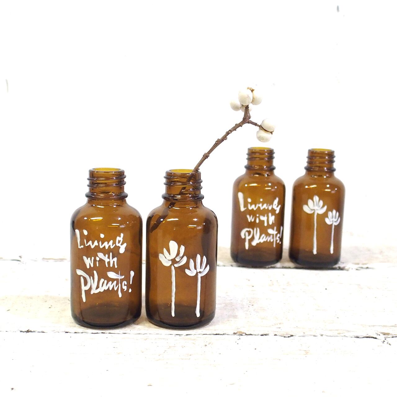 デッドストックの小瓶にイラストと文字を入れました♪