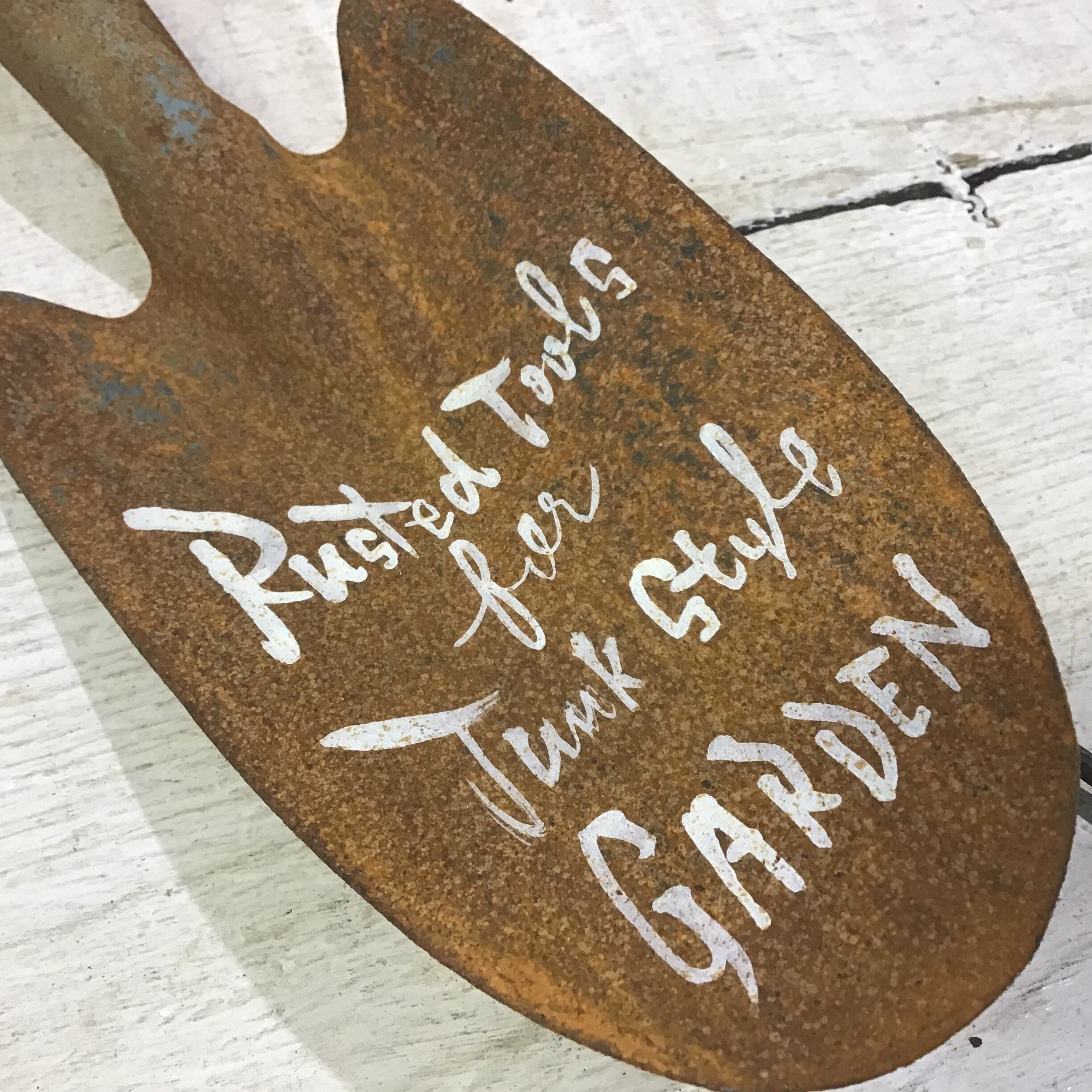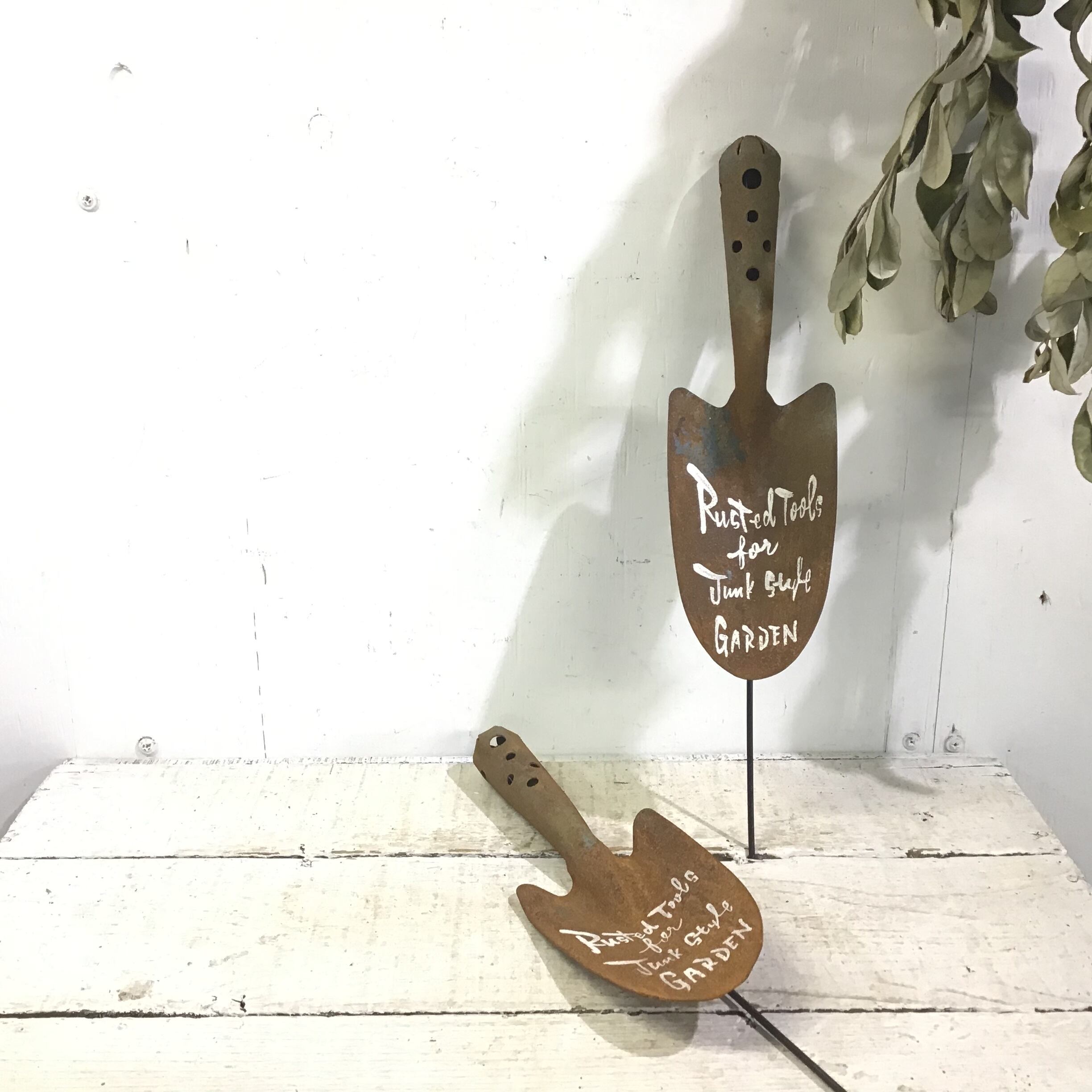 サビサビの移植ごて(小さなスコップ)に文字を入れたサインです♪
