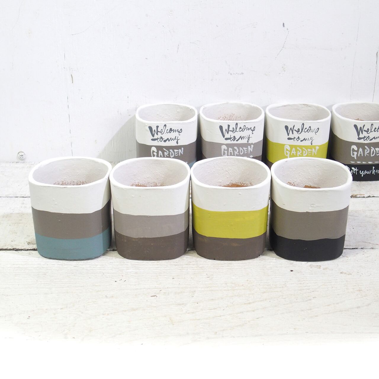 【リメイク鉢】四角2.5号アレンジ鉢 ボーダー
