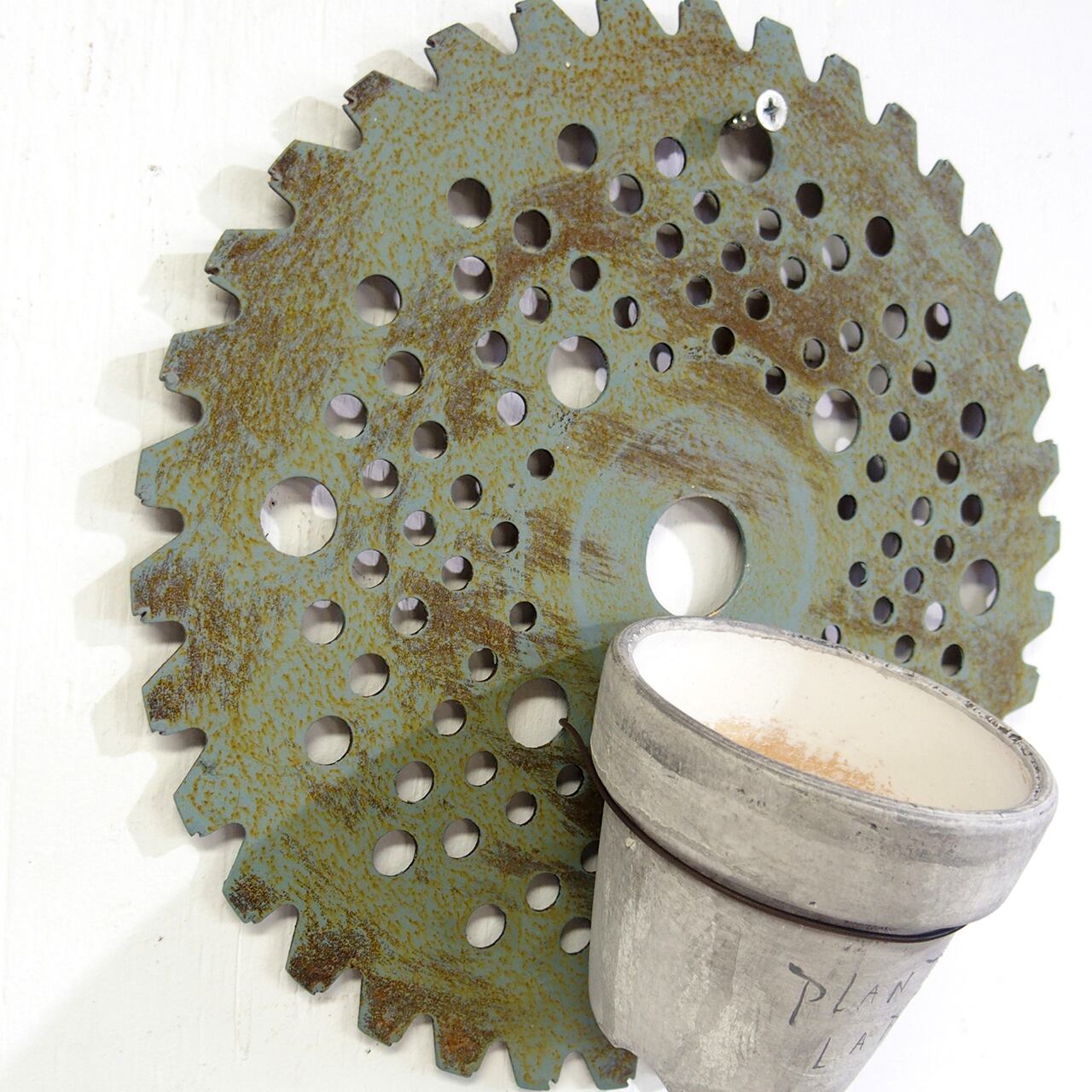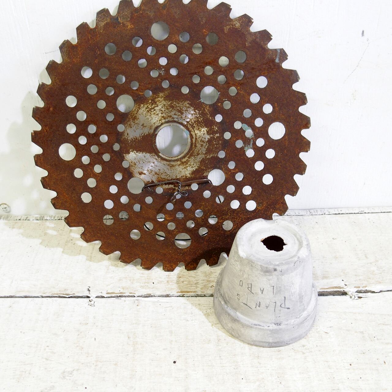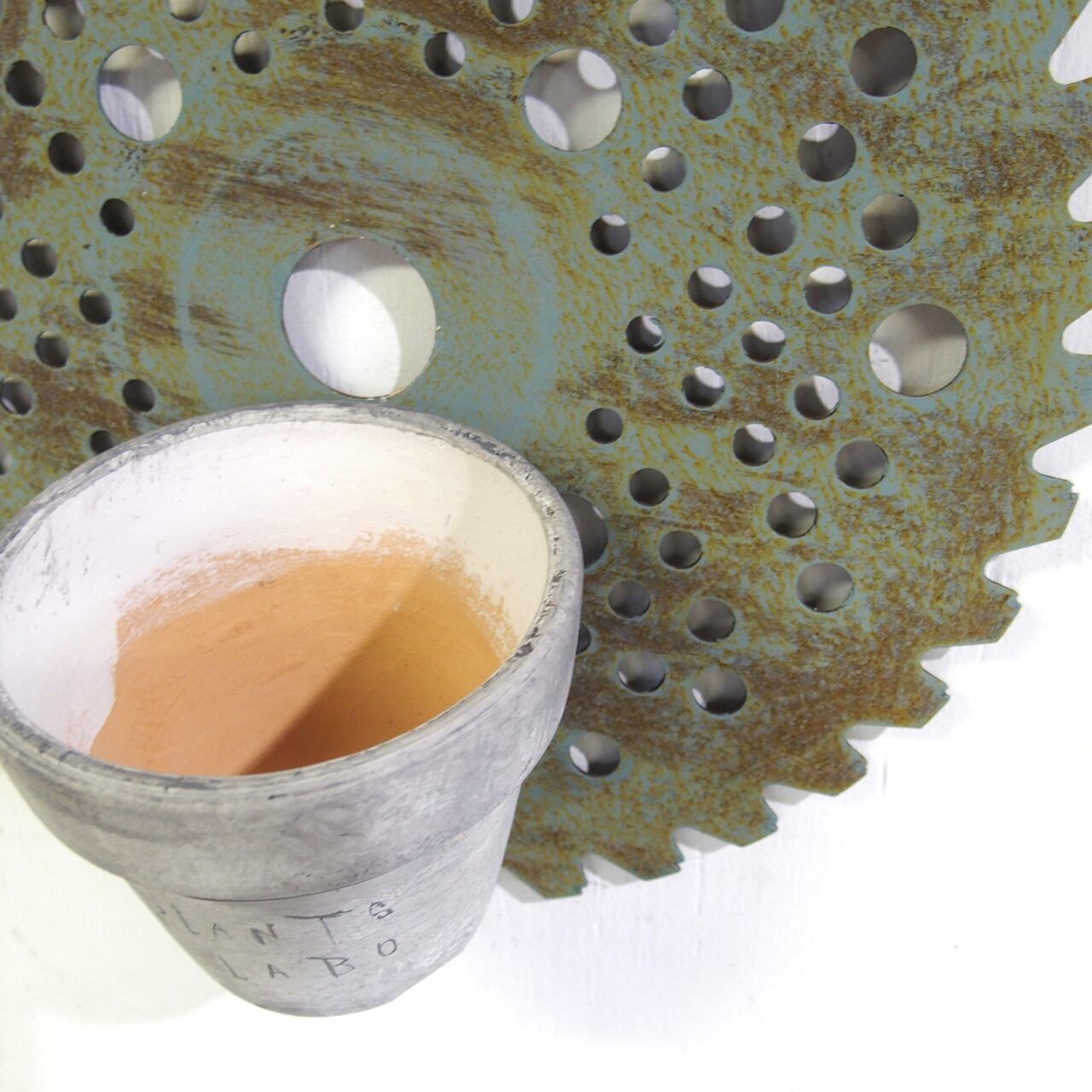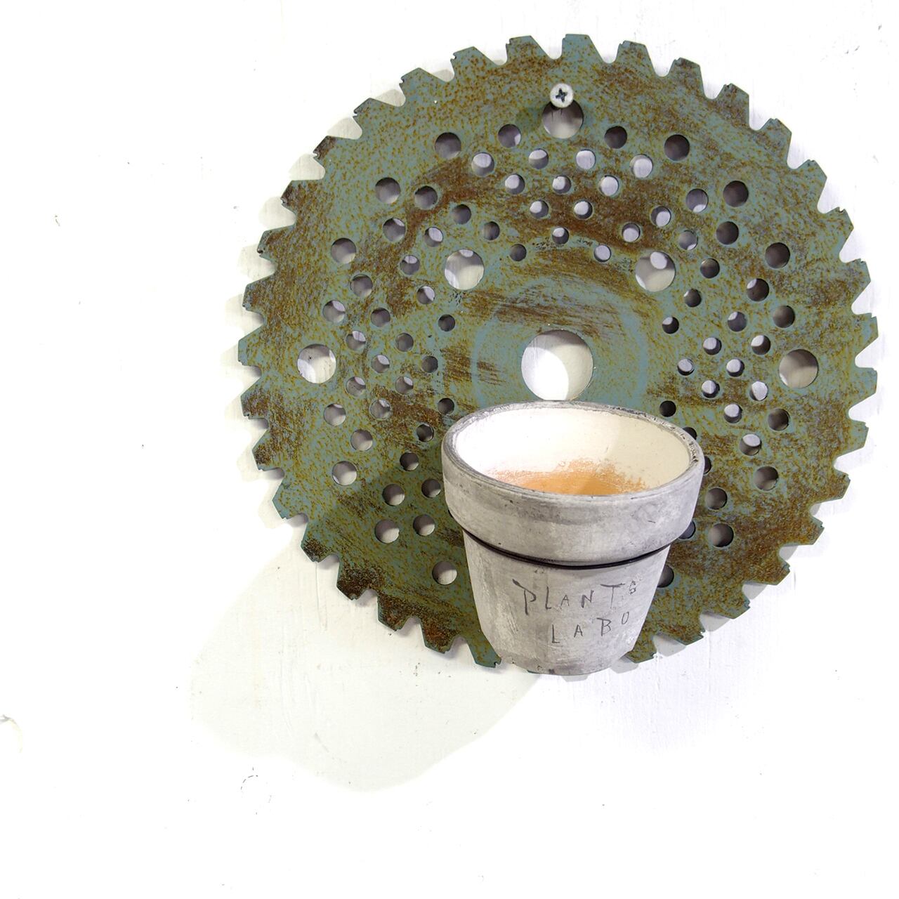 ブレードサインMASAOにワイヤーで2.5号リメ鉢をくっつけたハンギングプランターです♪