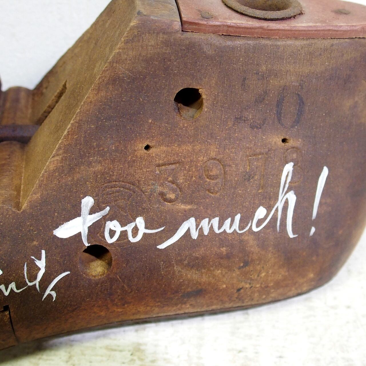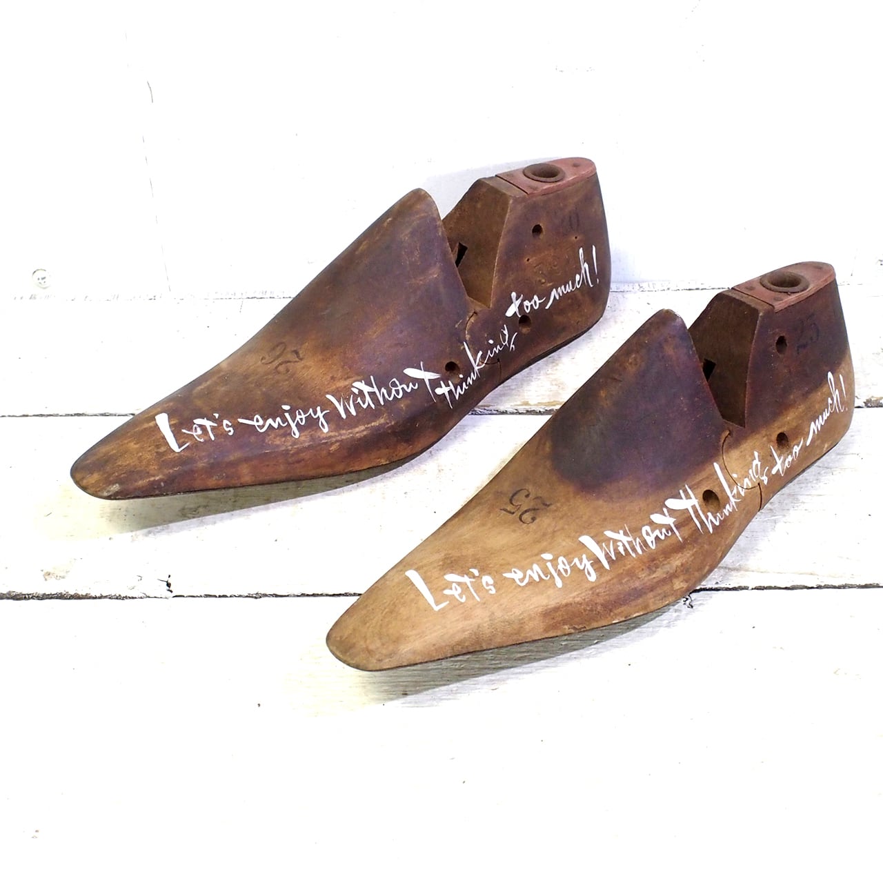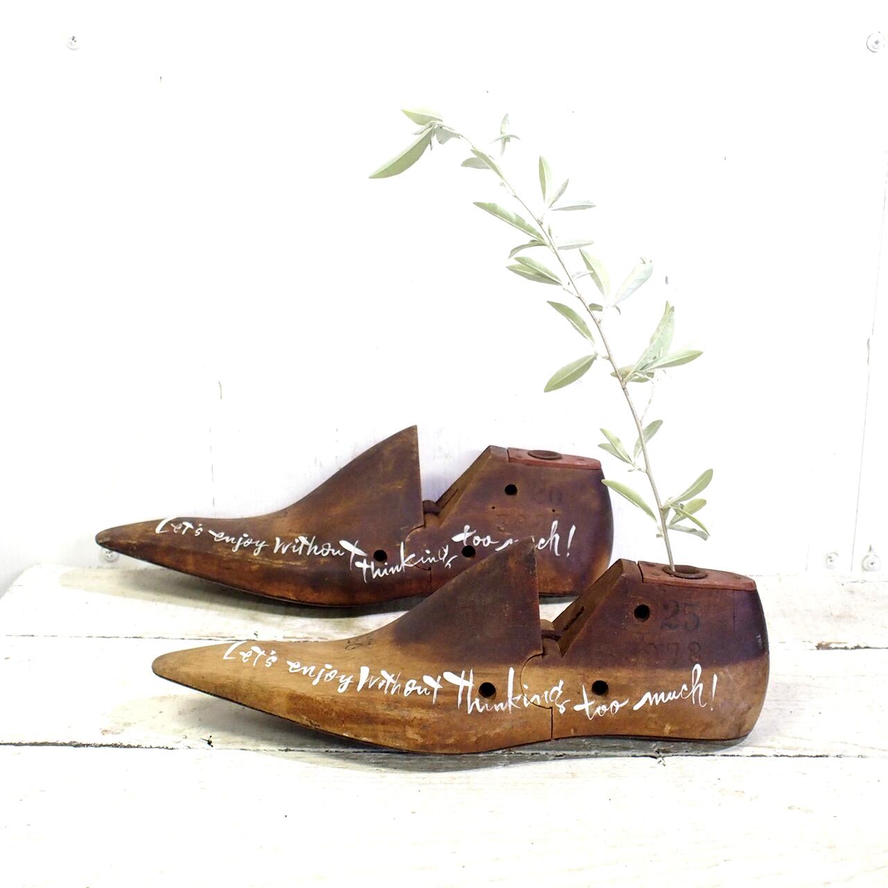古い木製のシューモールド(靴型)に少し文字を足してアレンジ♪
