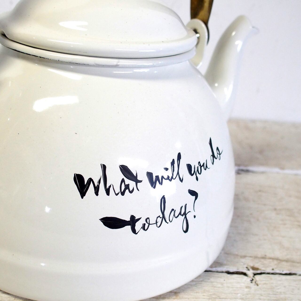 ホーローのケトルに文字を入れたアレンジ品です♪