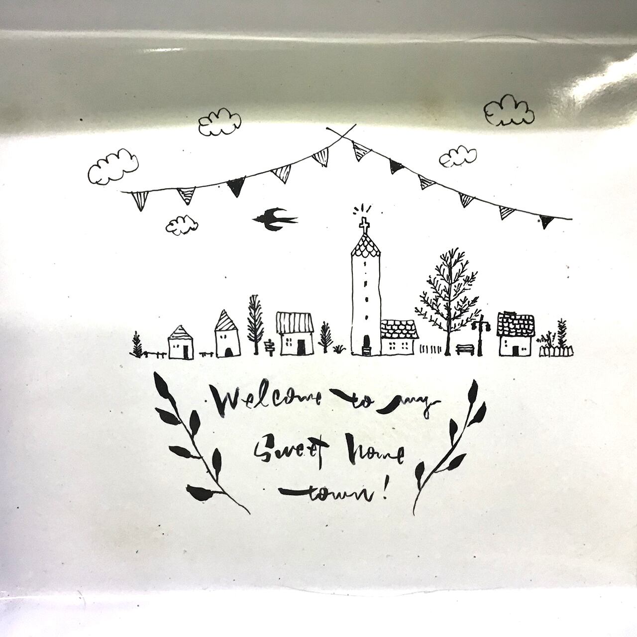 ホーローのバットに文字とイラストを入れたアレンジ作品です♪
