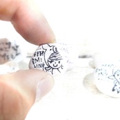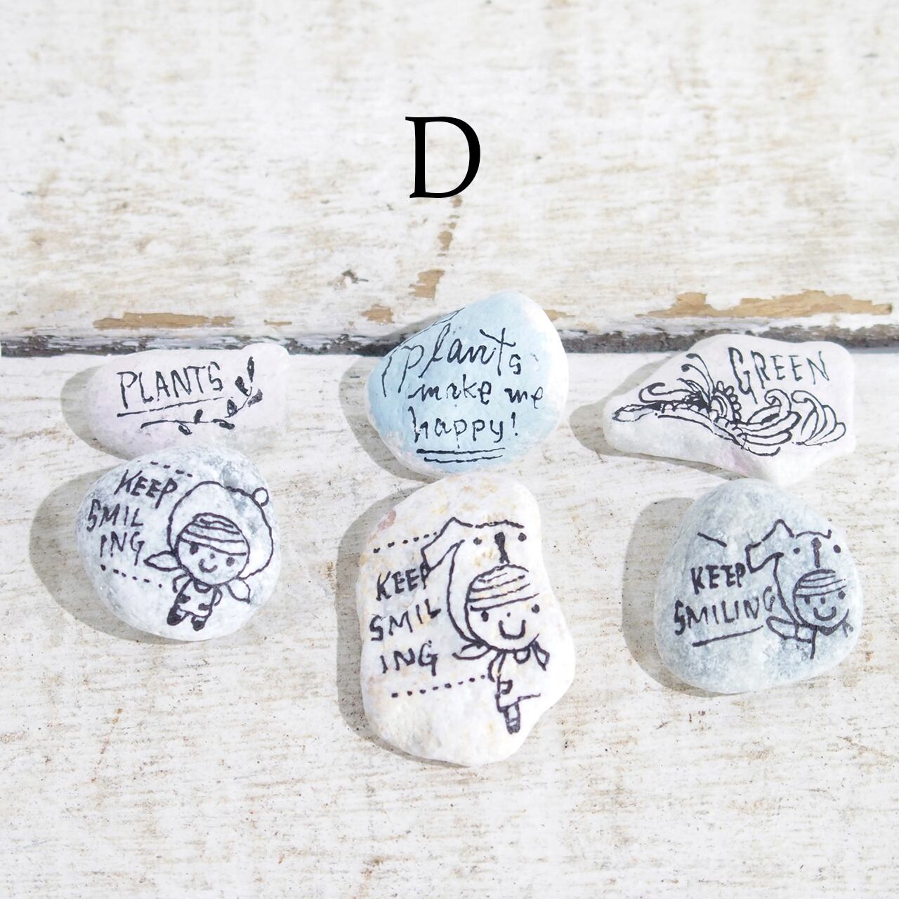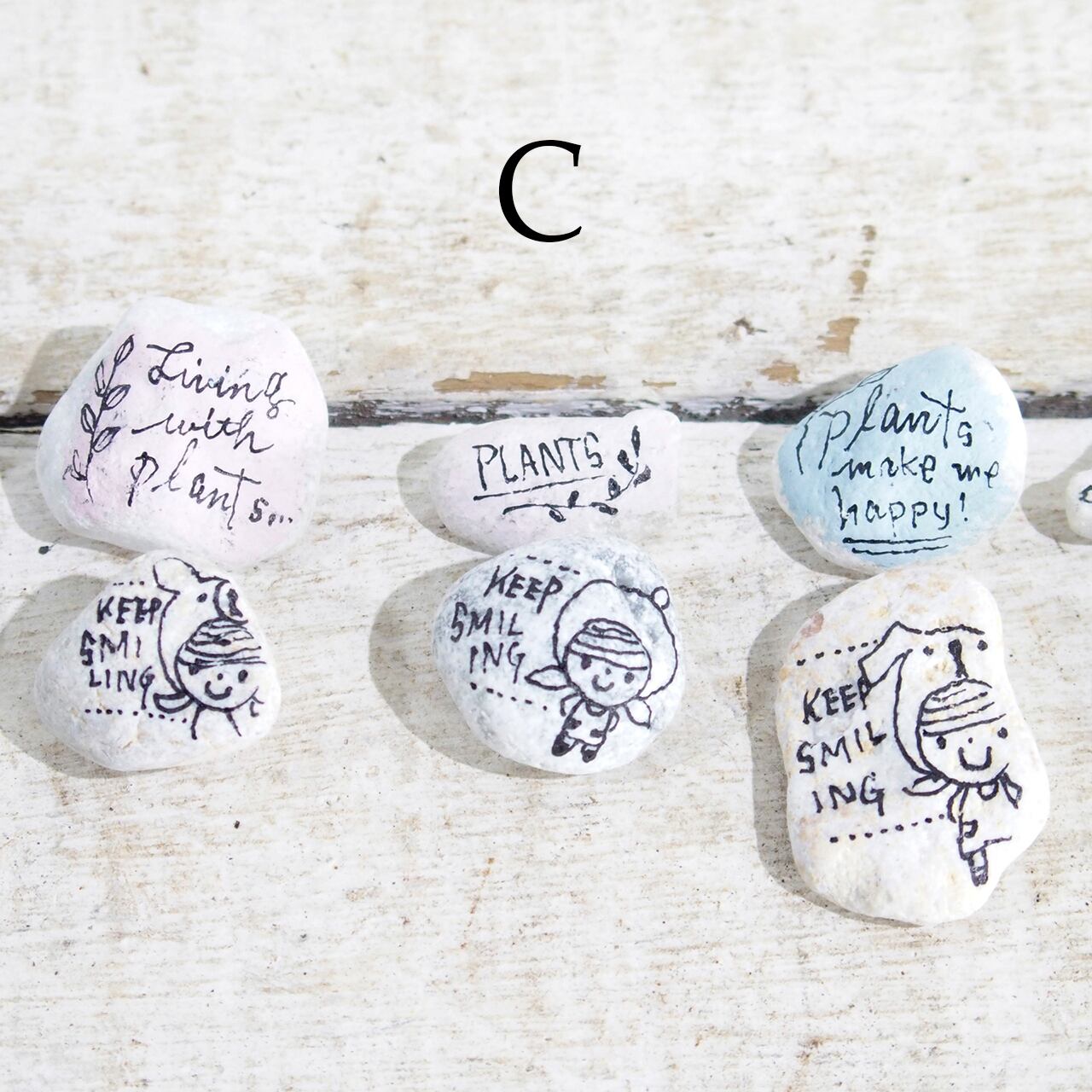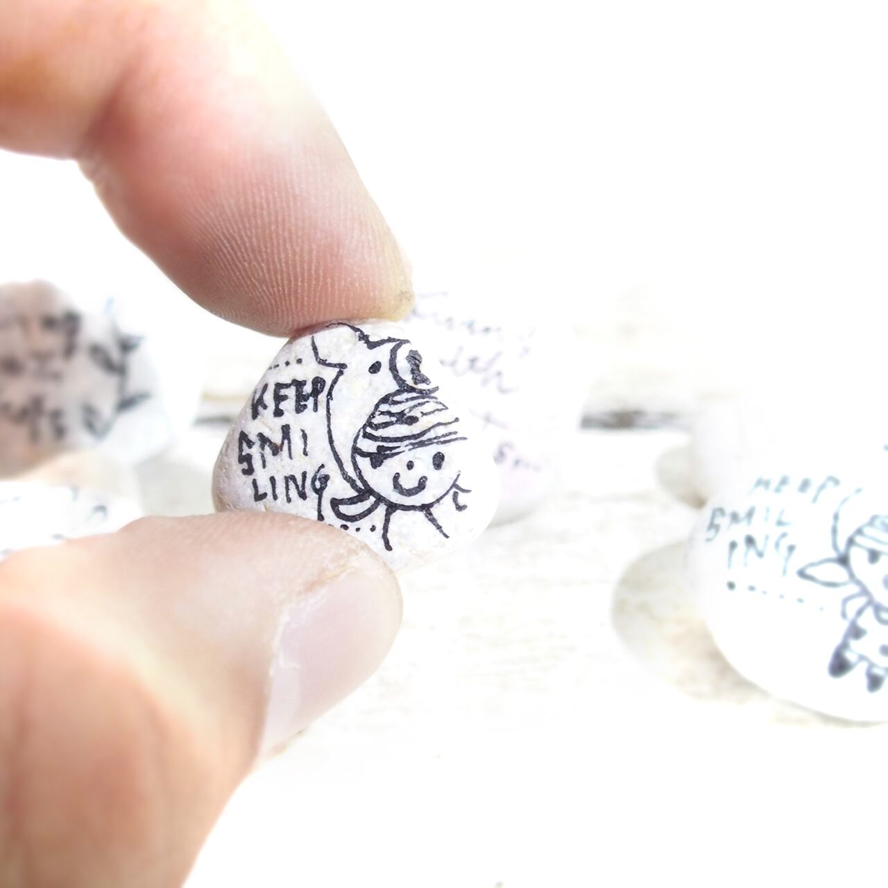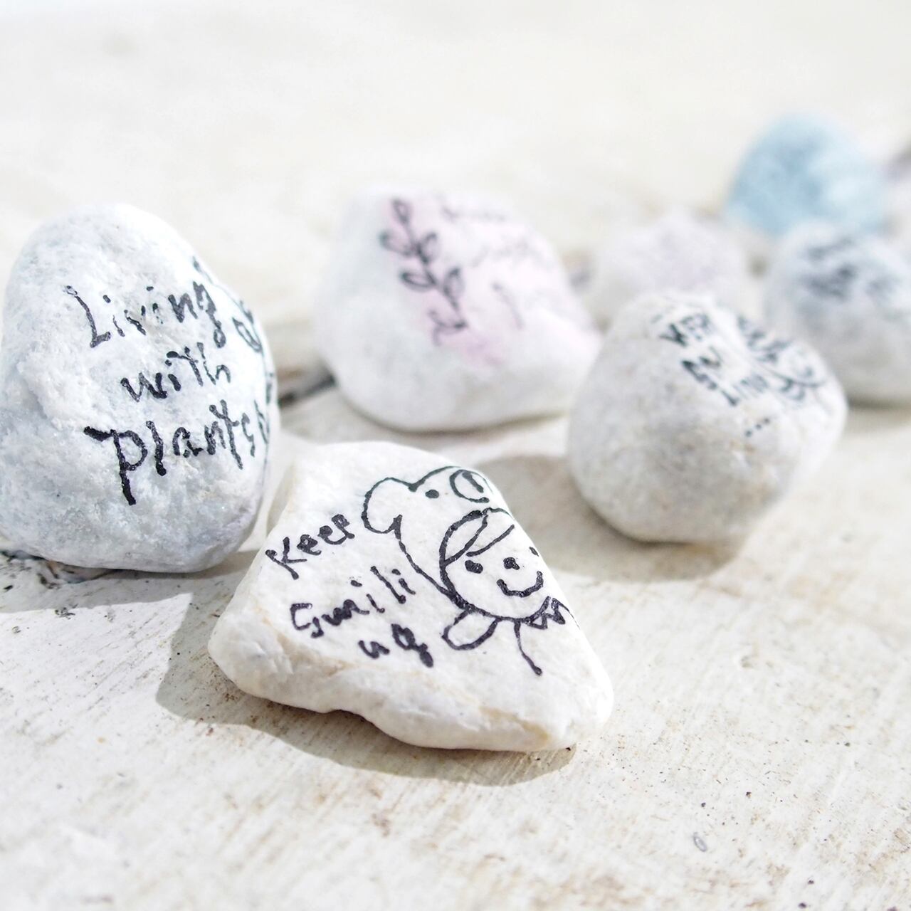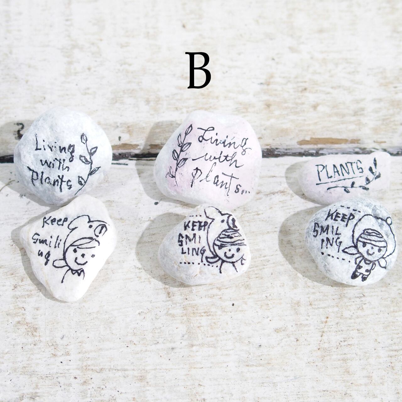 色も形も様々な「小石」に文字や顔を描いたもの、2個セットでの販売です♪