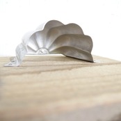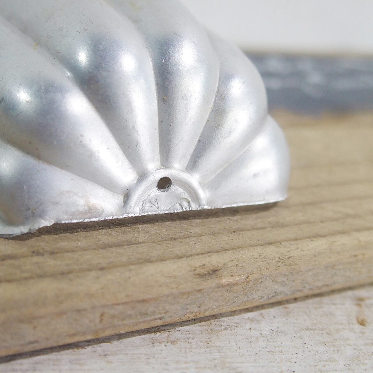 アルミのマドレーヌカップを二つに切り分けたハーフカップ付きのサインプレートです♪